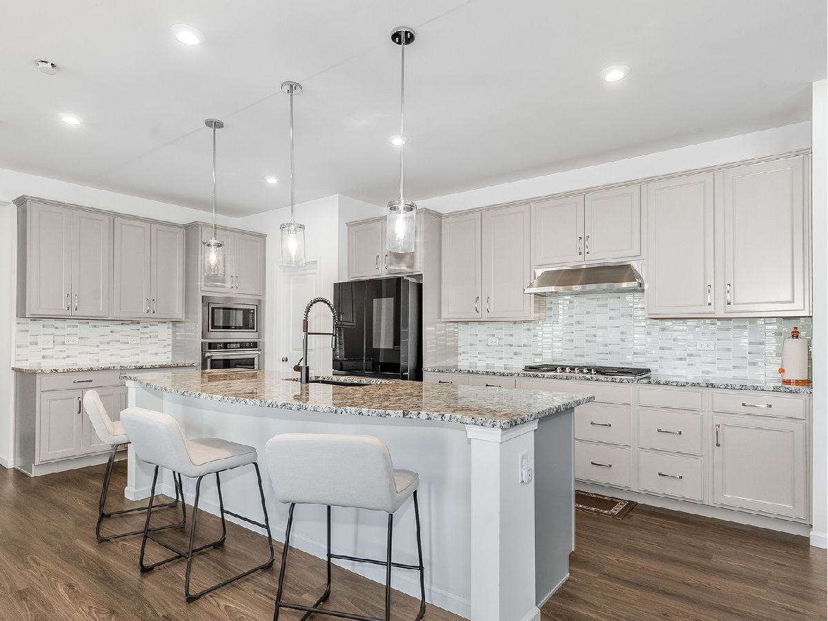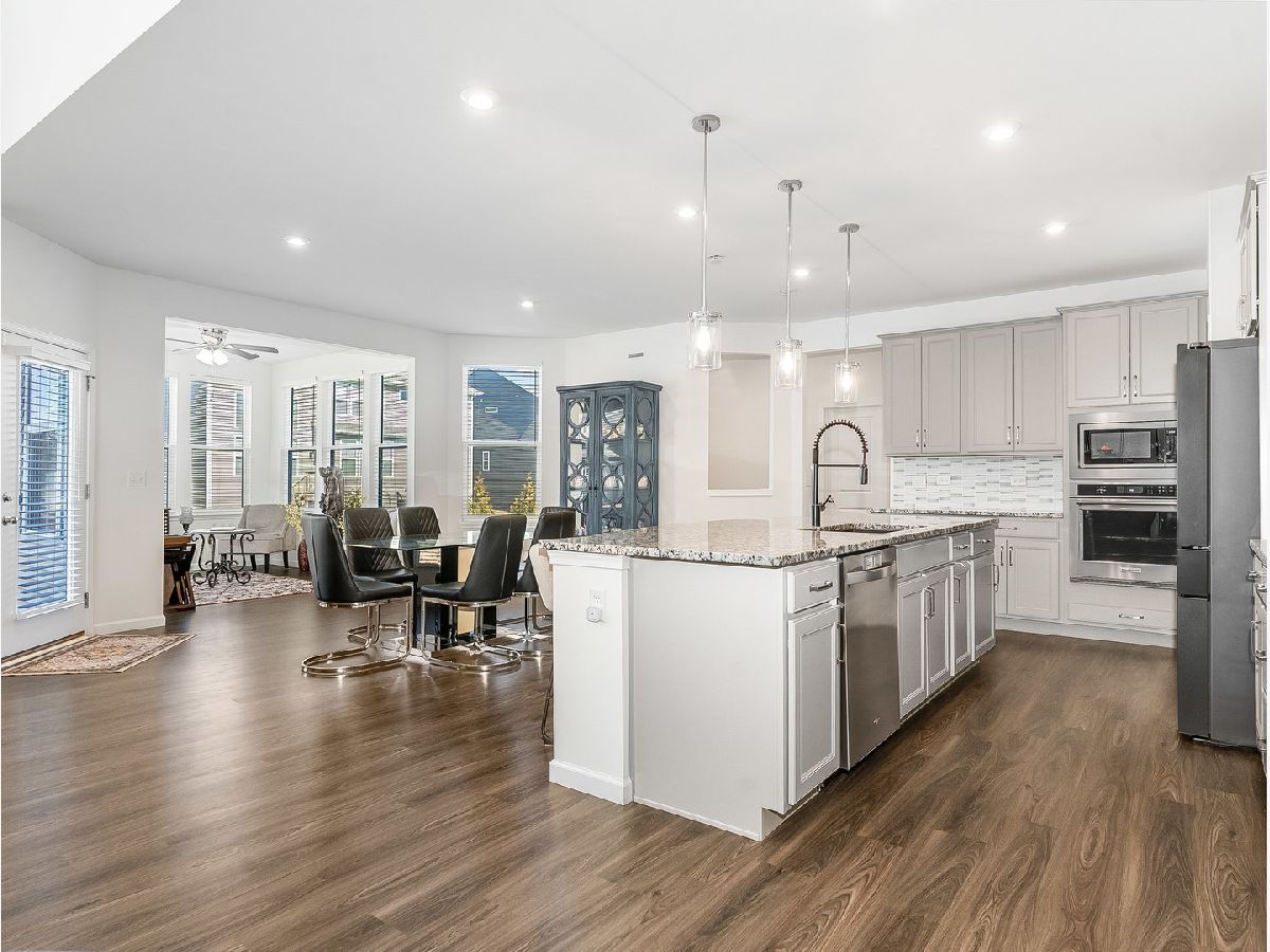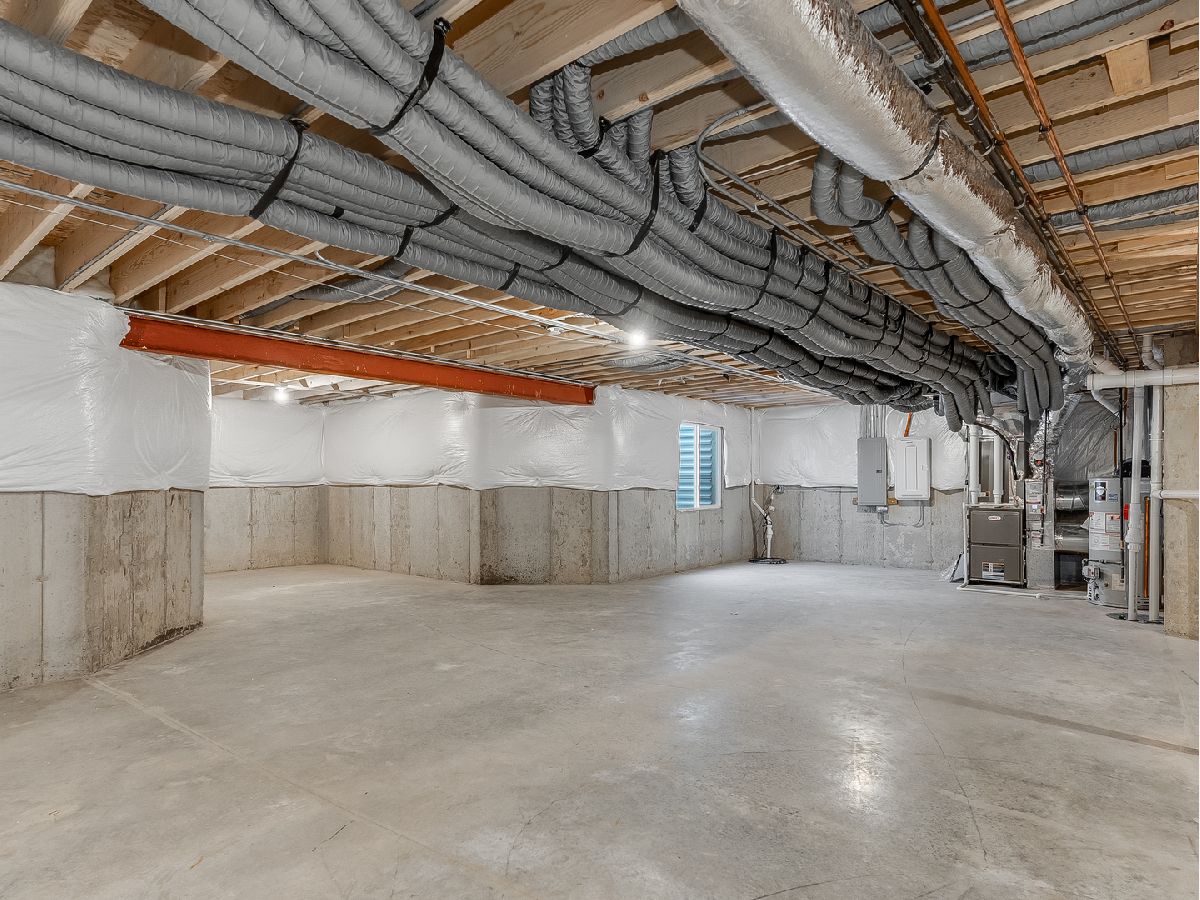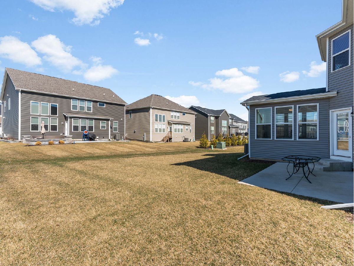 Welcome home! Built in 2023, this stunning residence offers approximately 3,600 square feet of beautifully designed living space, perfectly suited for modern living and entertaining. The open-concept layout seamlessly connects the living room, dining area, and kitchen, creating an inviting space ideal for gatherings both large and small. The updated kitchen is a true centerpiece, featuring stainless steel appliances, granite countertops, a glass tile backsplash. Just off the main living area, a bright sunroom fills the home with natural light year-round and provides the perfect spot to enjoy your morning coffee or unwind with a good book. A first-floor en-suite bedroom with a full bath offers flexibility for guests, multi-generational living, or a private home office. An additional flex space off the kitchen is ideal for a second office, homework area, or creative workspace. Durable and stylish luxury vinyl plank flooring runs throughout the main level, while plush carpeting and custom closet built ins adds comfort and organization to the bedrooms and second floor. Upstairs, you'll find four additional generously sized bedrooms and three full bathrooms. One bedroom features its own private balcony-an ideal place to relax and enjoy sunset views. The spacious primary suite is a true retreat, highlighted by a wall of windows that fills the room with natural light, dual vanities, a soaking tub, separate shower, and an expansive walk-in closet. A conveniently located second-floor laundry room adds everyday ease. The unfinished full basement includes a bathroom rough-in and is ready for your future finishing ideas. Outside, the corner lot and concrete patio create a wonderful outdoor space for entertaining and enjoying time with family and friends. Blending elegance, comfort, and modern amenities, this exceptional home is ready to welcome its next owners. Don't miss the opportunity to make it yours.
