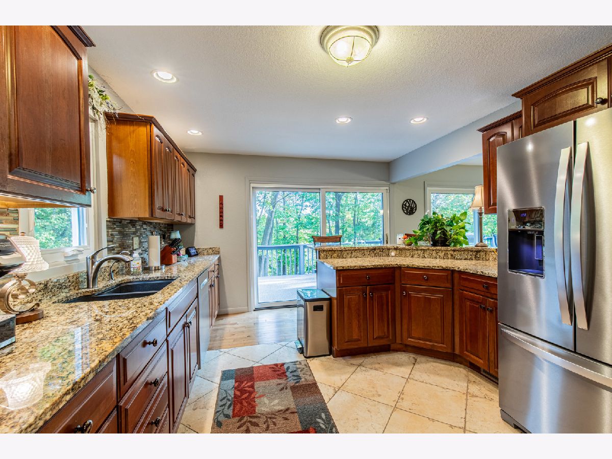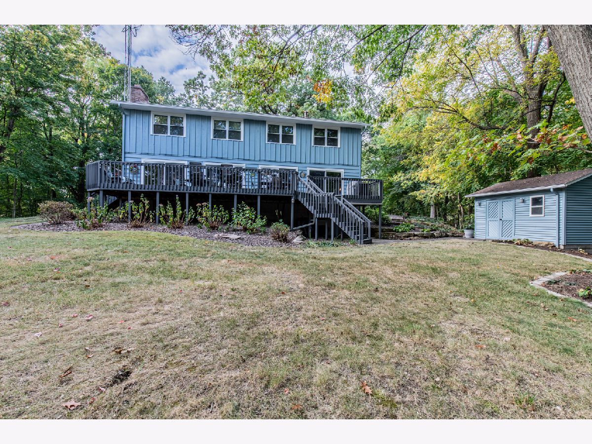 Get out your wish list and check, check, check! Beautiful home located on 2.3 acres in Deer Run North. Enjoy the peaceful surroundings of nature in this 4 bedroom, 3 1/2 bath home. Walk up the stamped concrete sidewalk and enter the welcoming foyer. The living room is flooded with natural light by four patio doors that open to the huge deck overlooking the wooded back yard. Kitchen has cherry cabinets with a rotating pantry, slide out shelving and granite counter tops. Stainless appliances included. Upstairs the master suite has a walk in closet and tiled shower. Three more bedrooms, a bonus room and a hall bath complete the upstairs. The bonus room could be a great place to have a reading space, computer room, or to relocate the laundry. Walk out basement has a finished 17x30 family room, fireplace and a full bath. The oversized 2-car garage is insulated and has plenty of room for a work bench or storage. A utility shed is located in the back yard for mowers and garden tools. This home is a quiet sanctuary with ravines on either side. Exterior of home was painted summer of 2025. The landscaping has been professionally designed with several perennials. Recent upgrades include new master bath window, new frig (18 mos.), garage roof (6 years), stamped concrete sidewalk (2 years), reinforced driveway (6 years), upstairs baths (6 years), painting, deck carpet, radon mitigation system (Oct. 2025) and deck carpet. Community well was new this summer. Bring your wish list and take a look!