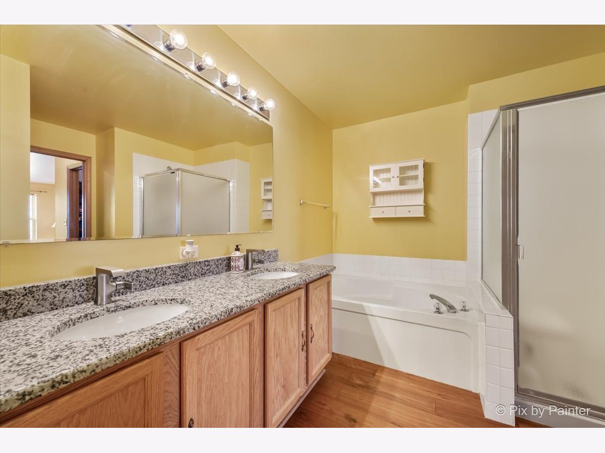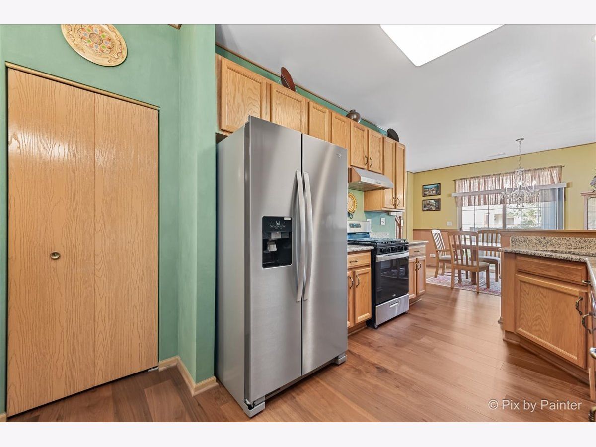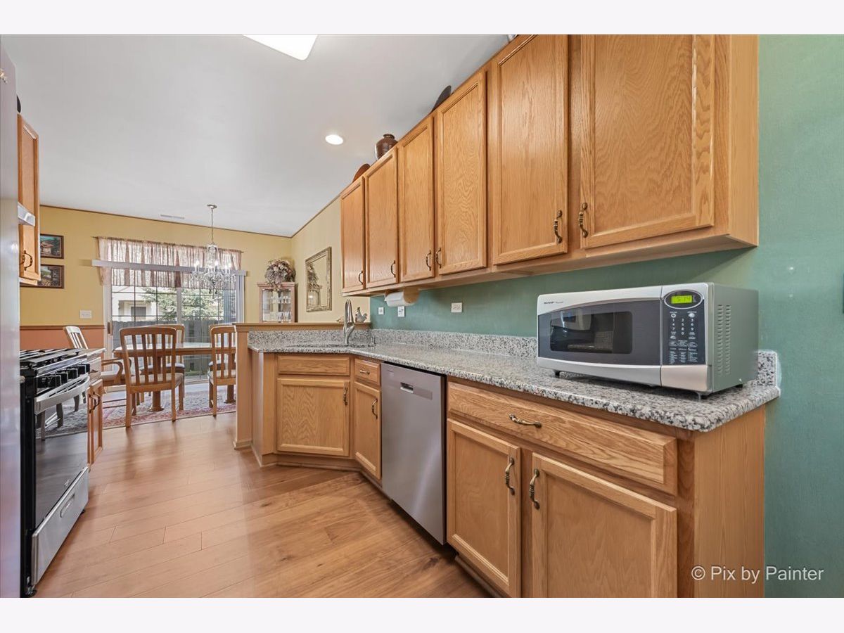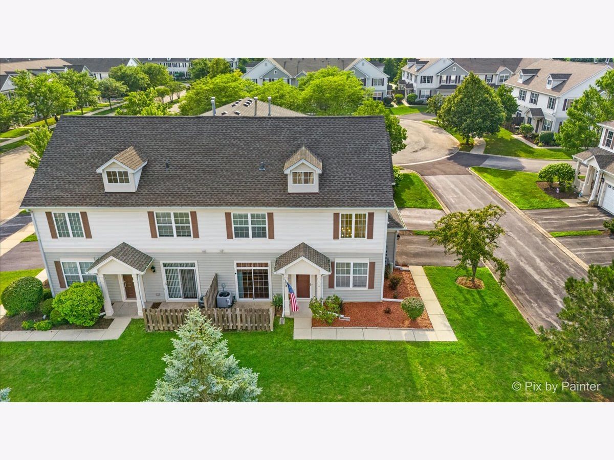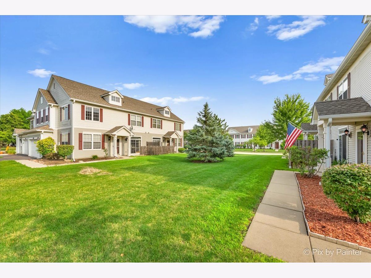 If you are looking for something with a private patio and a yard for kids or a dog, this is the one! Excellent location, quiet, not facing or backing up to a busy road, with a beautiful open floor plan. Step into the large 2-story family room with soaring windows and take note of the newer high-end solid hardwood flooring that was newly installed in 2023. It runs throughout the home, 1st and 2nd floor and is gorgeous! There is a formal dining room with a large window for natural sunlight and a wonderful upgraded kitchen, which was also done in 2023, with granite countertops, solid, natural cabinets, a BRAND NEW dishwasher, oven and refrigerator and new light fixtures. There is space in the kitchen for an additional table & chairs and a 1st floor powder room. Upstairs you will find a huge loft, the perfect space for a home office, 2 generous bedrooms with a shared updated bath (2023). Plus, the 2nd floor laundry room that includes the washer and dryer, is very convenient and provides additional storage. The sellers have painted soft colors that give this home such a warm, amazing feeling. Additionally, the central air was replaced in 2022. Outside there is a private patio, open grassy area to play and a 2-car attached garage. Note the association dues include water, grass cutting and snow removal. Hurry, this beautiful home is ready for it's new owners!