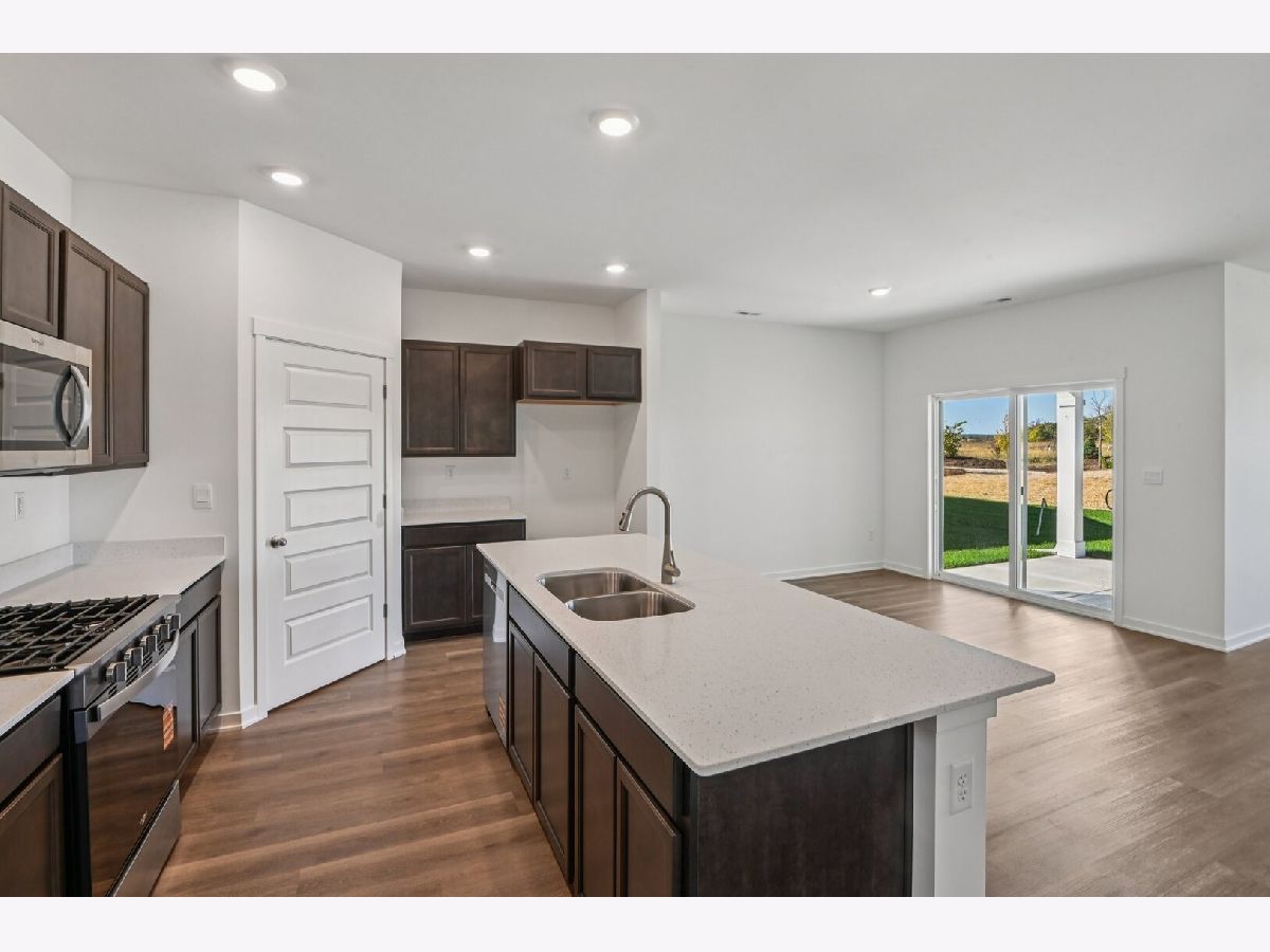 Welcome to your new home at 2562 Skye Drive in Pingree Grove, Illinois, a beautiful new home in the Cambridge Lakes North community. This ranch home will be ready for a summer move-in! Homesite includes a fully sodded yard that is maintained throughout the year. As well as access to miles of walking trails that are maintained year-round, snow removed, and well lit. Homeowners also have access to the exciting Aquatic Center that is the perfect place for rest, relaxation, and fun with all of your family and guests! This Arlington plan offers 1,660 square feet of living space with a flex room, 2 bedrooms, 2 baths, and 9-foot ceilings. When you first enter the home, there is a secondary bedroom, full bath, linen closet, and coat closet. Down the hall, you will have your flex room and laundry room as well as an additional closet. This area then opens to the spaciously joined kitchen and dining area that are perfect for entertaining and a dedicated living room! The kitchen layout includes a large island with an overhang for stools, and 36-inch designer white cabinetry. Additionally, the kitchen features a large pantry, modern stainless-steel appliances, quartz countertops, and easy-to-maintain luxury vinyl plank flooring. This plan also includes a covered rear patio. Enjoy your private get away with your large primary bedroom and en suite bathroom with a raised height dual sink, quartz top vanity, separate water closet, additional linen closet, luxurious walk-in closet, and walk-in shower. All Chicago homes include our America's Smart Home Technology. Photos are of similar home and model home. Actual home built may vary.