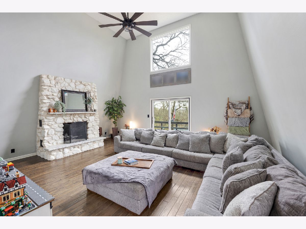 Charming, fully renovated A-frame set on a private 1-acre wooded lot. This 3-bedroom, 2.5-bath home offers over 2,100 sq ft with soaring cathedral ceilings, a stunning stone fireplace, and expansive windows bringing in natural light and scenic views. Updated kitchen features quartz countertops, white soft-close cabinetry, and GE slate appliances. Spacious primary suite includes multiple closets, loft overlook, and a spa-like bath with heated floors, soaking tub, and separate shower. Finished walkout lower level with additional fireplace and cozy living space. Wraparound deck, peaceful setting, and high-speed internet complete this one-of-a-kind retreat.