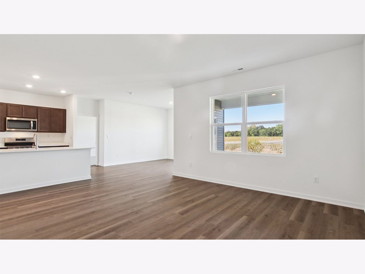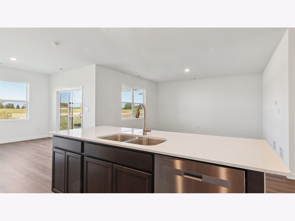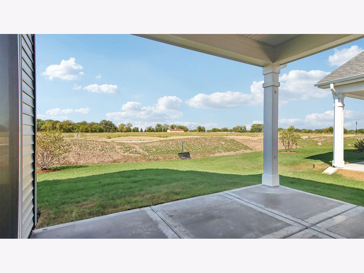 Picture yourself at 2572 Skye Drive in Pingree Grove, Illinois, a beautiful new home in Cambridge Lakes North community. This ranch home will be ready for a summer move-in! Homesite includes a fully sodded yard that is maintained throughout the year. As well as access to miles of walking trails that are maintained year-round, snow removed, and well lit. Homeowners also have access to the exciting Aquatic Center that is the perfect place for rest, relaxation, and fun with all of your family and guests! This Bristol plan offers 1,744 square feet of living space with a flex room, 2 bedrooms, 2 baths, and 9-foot ceilings. When you first enter the home, there is a secondary bedroom, full bath, and flex room. Down the hall, you will walk into the ample living room, dedicated dining space, and kitchen area. The kitchen layout includes a large island with an overhang for stools, 36-inch designer white cabinetry. Additionally, the kitchen features a spacious pantry, modern stainless-steel appliances, quartz countertops, and easy-to-maintain luxury vinyl plank flooring. This plan also includes a covered rear patio. Enjoy your private get away with your large primary bedroom and en suite bathroom with a raised height dual sink, quartz top vanity, separate water closet, additional linen closet, luxurious walk-in closet, and walk-in shower. All Chicago homes include our America's Smart Home Technology. Photos are of similar home and model home. Actual home built may vary.