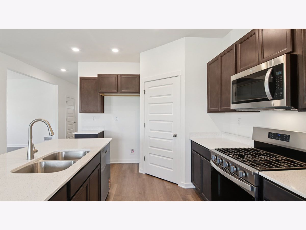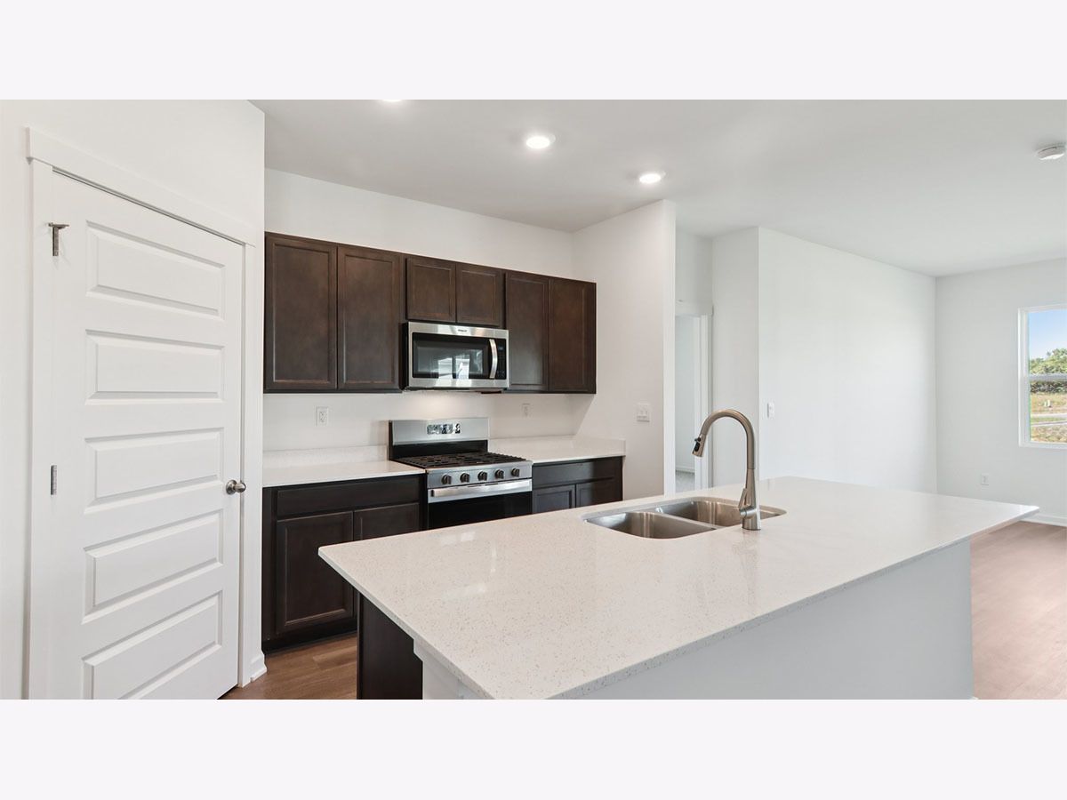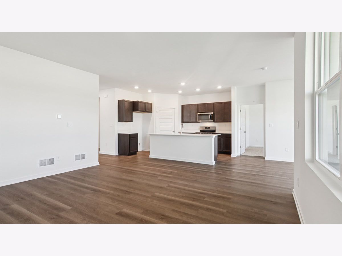Picture yourself at 2572 Skye Drive in Pingree Grove, Illinois, a beautiful new home in Cambridge Lakes North community. This ranch home will be ready for a summer move-in! Homesite includes a fully sodded yard that is maintained throughout the year. As well as access to miles of walking trails that are maintained year-round, snow removed, and well lit. Homeowners also have access to the exciting Aquatic Center that is the perfect place for rest, relaxation, and fun with all of your family and guests! This Bristol plan offers 1,744 square feet of living space with a flex room, 2 bedrooms, 2 baths, and 9-foot ceilings. When you first enter the home, there is a secondary bedroom, full bath, and flex room. Down the hall, you will walk into the ample living room, dedicated dining space, and kitchen area. The kitchen layout includes a large island with an overhang for stools, 36-inch designer white cabinetry. Additionally, the kitchen features a spacious pantry, modern stainless-steel appliances, quartz countertops, and easy-to-maintain luxury vinyl plank flooring. This plan also includes a covered rear patio. Enjoy your private get away with your large primary bedroom and en suite bathroom with a raised height dual sink, quartz top vanity, separate water closet, additional linen closet, luxurious walk-in closet, and walk-in shower. All Chicago homes include our America's Smart Home Technology. Photos are of similar home and model home. Actual home built may vary.