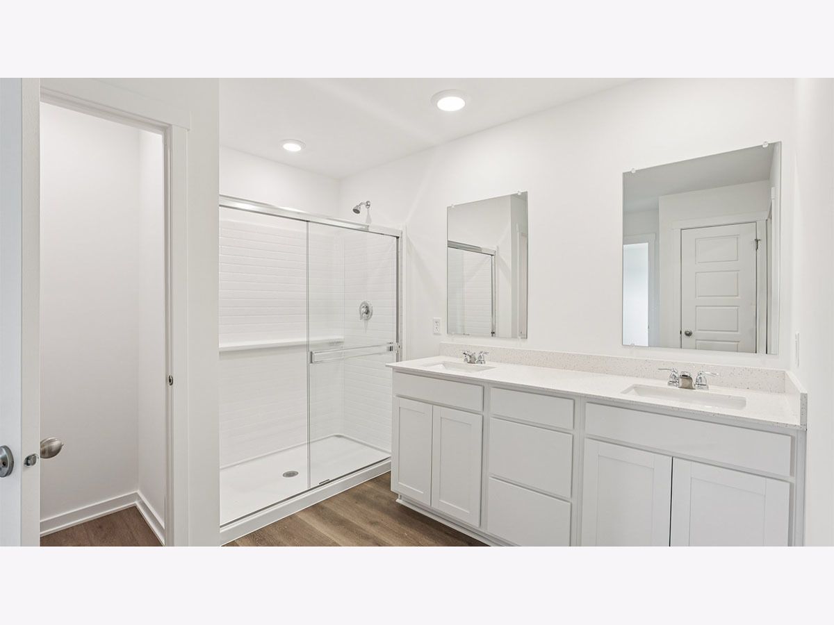 Discover yourself at 25910 S Manchester Ln. in Manhattan, IL, a beautiful new home in our Ivanhoe community. This home is MOVE-IN READY! This large, scenic homesite includes a concrete driveway and fully sodded yard. This Henley plan offers 2,600 square feet of living space with a flex room, 4 bedrooms, 2.5 baths, 9-foot ceilings on first floor, and lookout basement. Entertaining will be easy in this open-concept kitchen and family room layout with a large island with an overhang for stools, 36-inch designer cabinetry with all the storage space you will need. Additionally, the kitchen features a walk-in pantry, modern stainless-steel appliances, quartz countertops, and easy-to-maintain luxury vinyl plank flooring. More flexible space is waiting upstairs in the 2nd-floor loft, offering unlimited potential to suit your needs. Enjoy your private getaway with your large primary bedroom and en suite bathroom with quartz top vanity featuring 2 sinks, and low maintenance walk-in shower with clear glass shower doors. Convenient second floor walk-in laundry room, 3 additional bedrooms with a full second bath and a linen closet complete the second floor. All Chicago homes include our America's Smart Home Technology. Photos are of similar home and model home. Actual home built may vary.