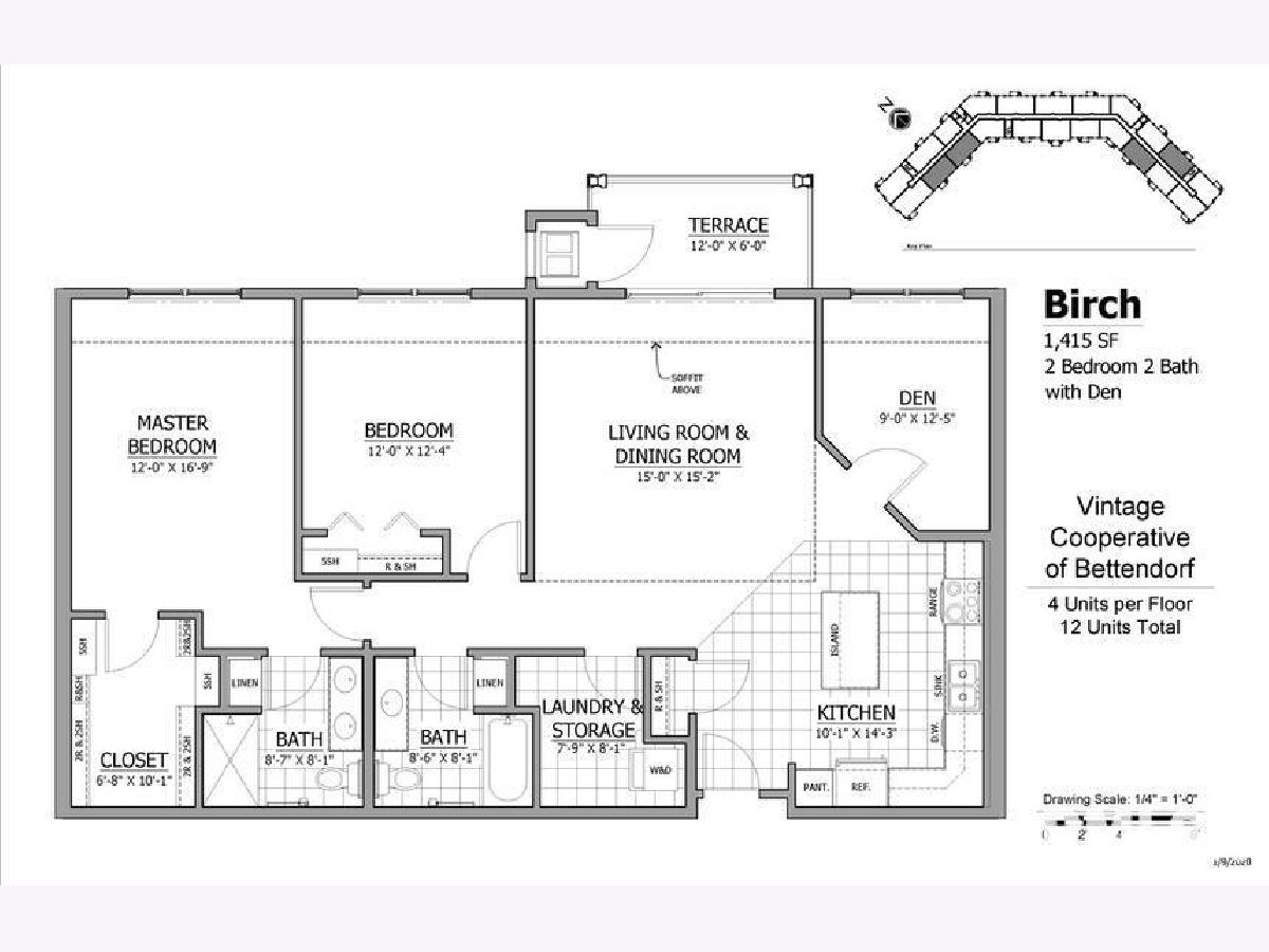 The Suites of Bettendorf Cooperative offers a secure alternative to home ownership that is uniquely designed for those seeking a TOTALLY maintenance-free lifestyle in a social 55+ community. The "Birch" Unit features a beautiful corner kitchen with island opening toa spacious living room and dining room combo, primary bedroom with walk-in closet and ensuite bathroom with double sinks. Also included are a large laundry/storage room with stacked washer/dryer and an outdoor terrace. Members of this secure cooperative will enjoy a community great room with fireplace and kitchen, clubroom with pool table, fitness center, workshop, garden plots, guest suites, conversation lounge, library, heated underground parking, car wash bay and all utilities, repairs, and property taxes included in monthly payment except electric. This is a 2nd floor front facing suite, #206, with stained maple cabinetry and white appliances. This unit is a resale unit but was never occupied.