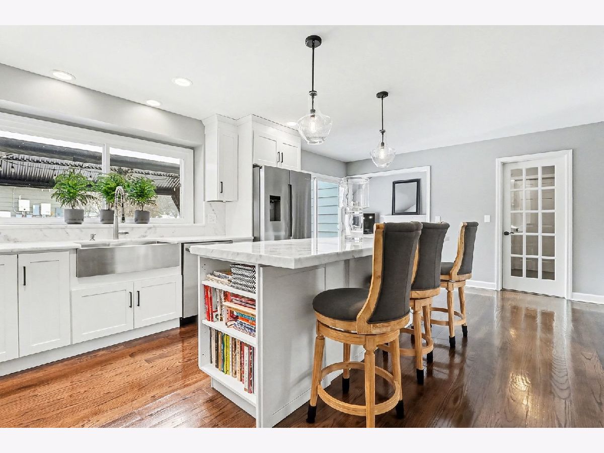 Exquisite north facing multi-generational luxury home in Naperville. Welcome to 25W313 Mayflower Avenue in Naperville, Illinois, a stunning north-facing home located in the highly desirable Naperville School District 203, serving Prairie Elementary, Washington Junior High, and Naperville North High School. This exceptional property offers six bedrooms, three and a half baths, and over 4,600 square feet of finished living space including a fully finished basement, all situated on a beautifully landscaped .35-acre lot close to downtown Naperville. The main level accommodates multi-generational living and includes an expansive suite with a large bedroom and full bathroom, adjoining living room, a sunroom with a double-sided gas fireplace, and a screened porch. The open-concept luxury kitchen features top-end Bosch appliances, a large five-seat island, and quartzite counters and backsplash that flow seamlessly into the dining room and a vaulted family room with expansive windows. Additional highlights on this level include newer tiger grain oak hardwood floors, twelve newer windows with upgraded triple-pane glass in the sunroom, newer wood shades throughout, and plantation shutters in the main-level bedroom. A mudroom and laundry room with newer Samsung washer and dryer add convenience, while the powder room boasts new granite counter, fixtures, and mirror. Upstairs, you'll find four bedrooms with newer carpet and all new updated baths. The primary suite offers a spa-inspired wet room bath with new tile, fixtures, vanities, tub, glass, lighting, and mirrors, along with a laundry nook. The hall bath has also been updated with new vanities, tile, lighting, and mirrors. The lower level features a fully finished basement with luxury vinyl plank flooring, drop ceiling, and an additional bedroom. There is ample storage space, including a dedicated storage room (or future wine cellar) and an extra-large utility room with a new furnace. Outside, enjoy a large deck with a covered pergola and a seven-person jetted hot tub, perfect for entertaining or relaxing. The exterior also includes a newer asphalt driveway with space for a third and fourth car and professionally landscaped grounds. Additional features throughout the home include two fireplaces-one double-sided gas and one wood-burning, two laundry rooms, and extensive updates throughout the entire residence. This home combines luxury, functionality, and comfort, making it ideal for those seeking space and elegance in one of Naperville's most desirable neighborhoods. Schedule your showing today and experience everything this exceptional property has to offer before it's too late.