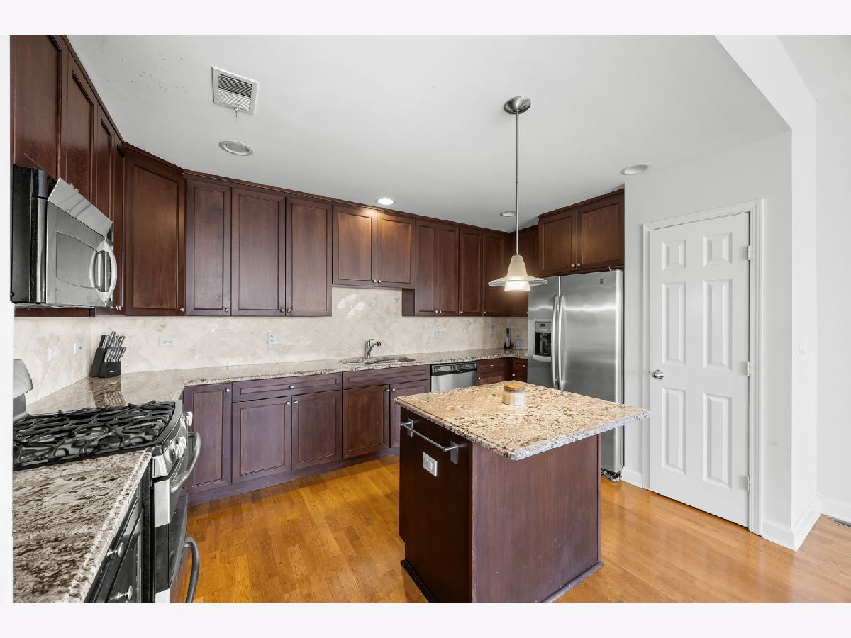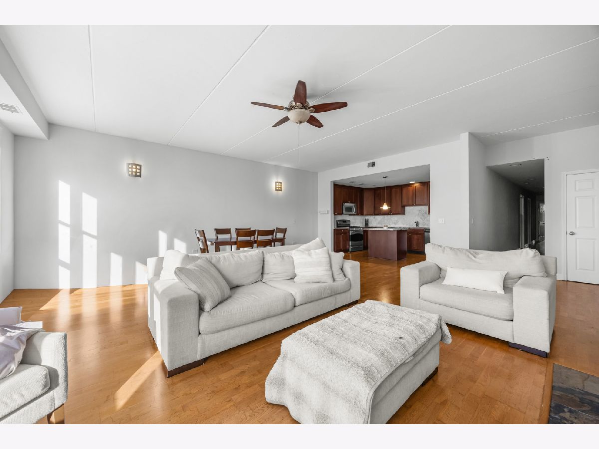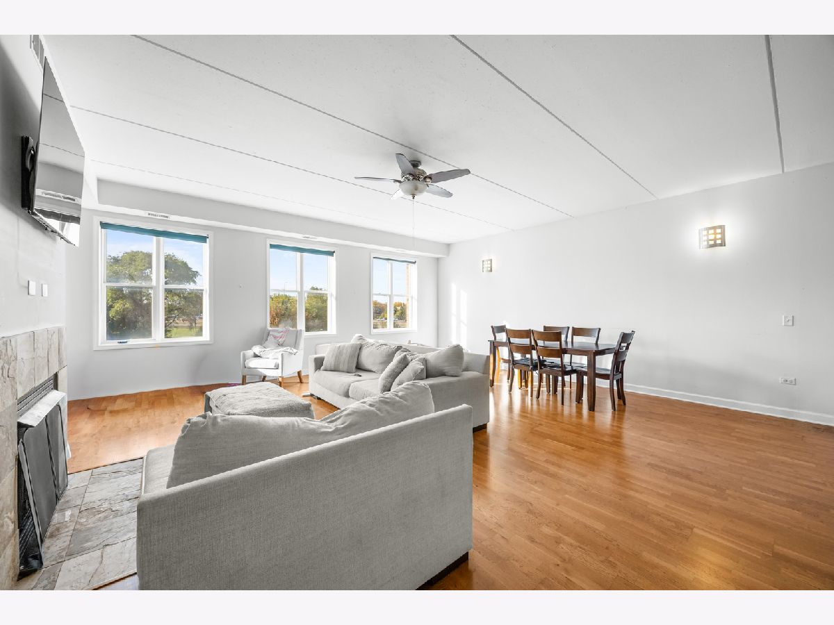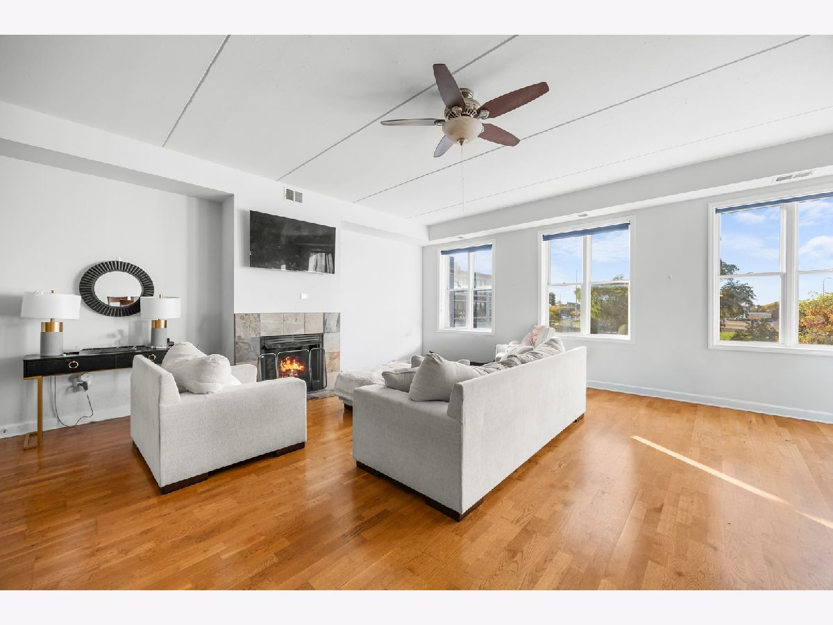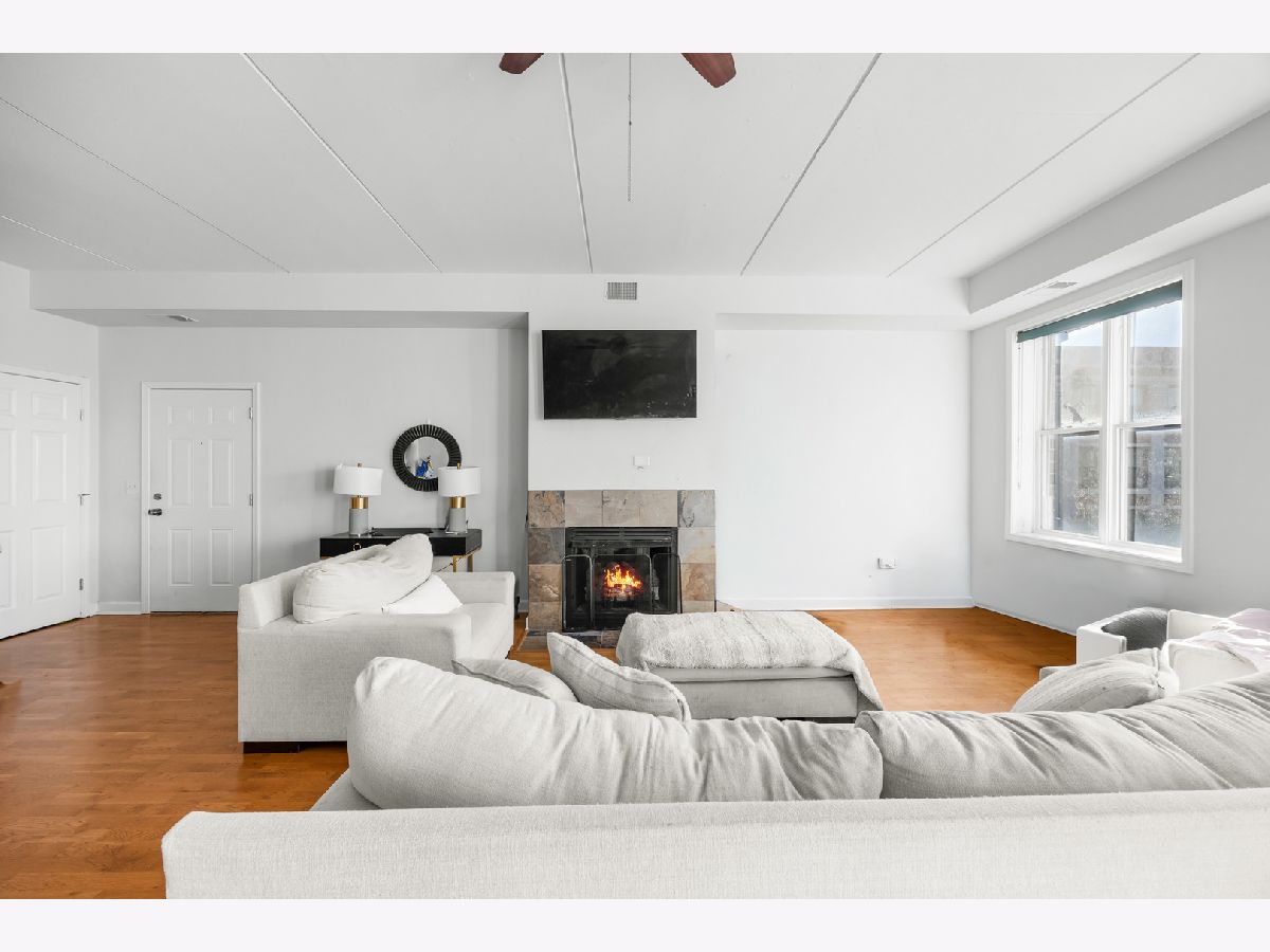 This impressive EST. 1,900 sq. ft. corner residence offers an abundance of natural light from its floor-to-ceiling windows with sought-after south and east exposures. Step into the grand foyer and be welcomed by a bright, airy living space featuring soaring ceilings, hardwood floors, and a cozy fireplace. The expansive layout easily accommodates even the largest dining table, making it ideal for entertaining. The chef's kitchen boasts cherry cabinetry, granite countertops, stainless steel appliances, and a generous pantry. All three bedrooms are generously sized with excellent closet space, while the primary suite is truly luxurious with a large walk-in closet, private balcony, and spa-like bath with a soaking tub and separate shower. Additional highlights include a second full bath with slate tile shower, side-by-side in-unit laundry, and one garage parking space. The elevator building offers solid concrete and steel construction. Perfectly situated near the border of Logan Square and Avondale, this home combines space, style, and an unbeatable location. Easy bike ride to the Lake-Walking distance to Starbucks, Target, Restaurants, Costco, Ross, Burlington & lots more shopping, 90/94, and more!