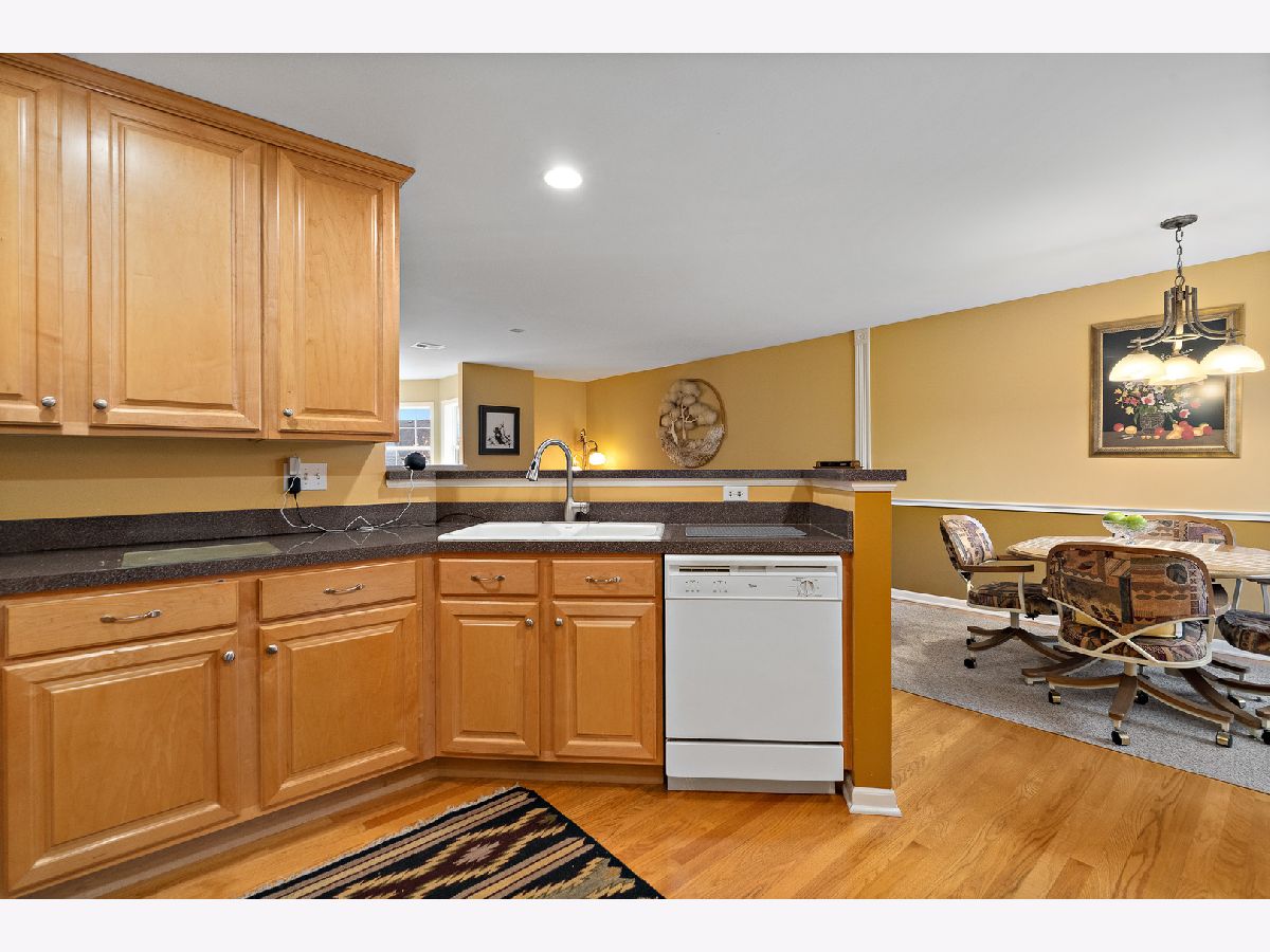 Experience refined luxury and effortless one-level living in this stunning, highly-upgraded end unit ranch-style townhome, perfectly designed for those who appreciate quality craftsmanship and graceful living. From the moment you enter, you're welcomed by an expansive open floor plan enriched with gleaming hardwood flooring, timeless architectural details, and an ambiance of sophistication. The gourmet kitchen is a culinary dream, boasting 42" custom maple cabinetry with crown molding, double oven, abundant storage, and a delightful breakfast area accented with decorative chair rail-a perfect space for morning coffee or casual meals. The flow continues to the elegant living room featuring hardwood floors and an air of warm sophistication. Entertain in style in the dramatic formal dining room, highlighted by a Double-tray ceiling, architectural detailing, and direct access to a serene covered balcony-ideal for indoor/outdoor living. A butler's pantry seamlessly connects the dining space to the kitchen, offering additional storage and serving convenience. Unwind in the breathtaking sun-filled family room, showcasing a handsome fireplace with gas logs, custom built-in bookcases, and decorative columns that frame the space with timeless elegance. Every room is enhanced with luxury Hunter Douglas custom blinds, ensuring privacy and style in perfect harmony. Retreat to the vaulted master suite, a sanctuary of comfort and indulgence, featuring a private spa-inspired bath with soaker tub, separate shower, water closet, double vanity, and a generous sized walk-in closet. A double-door den/home office with chair rail provides the perfect quiet workspace or cozy reading room. With two spacious bedrooms, two pristine baths, and a two-car attached garage, this extraordinary residence blends upscale design with everyday convenience. Every corner reflects thoughtful selections, refined upgrades, and pride of ownership. Live beautifully. Live comfortably. This is luxury townhome living at its finest.