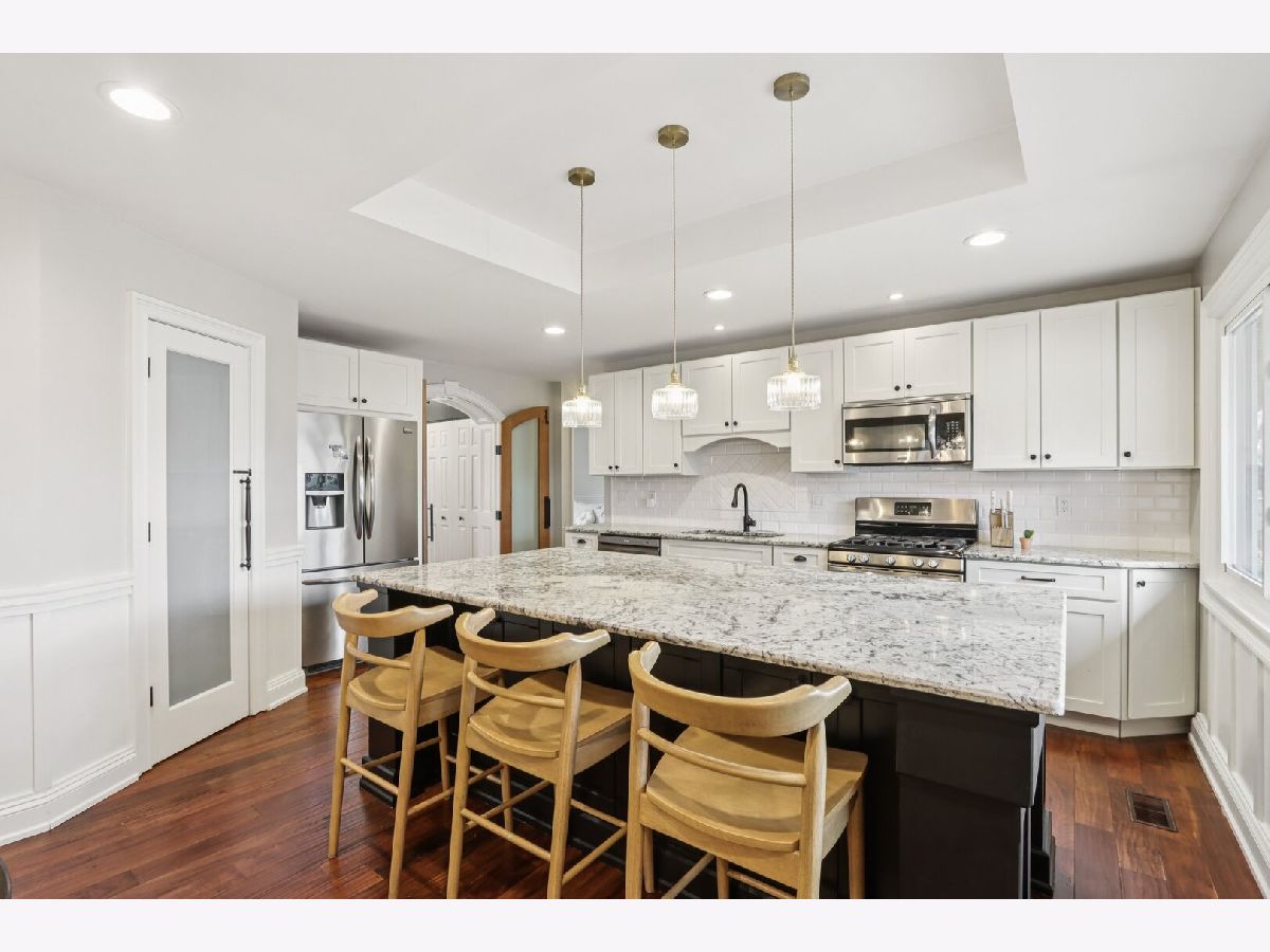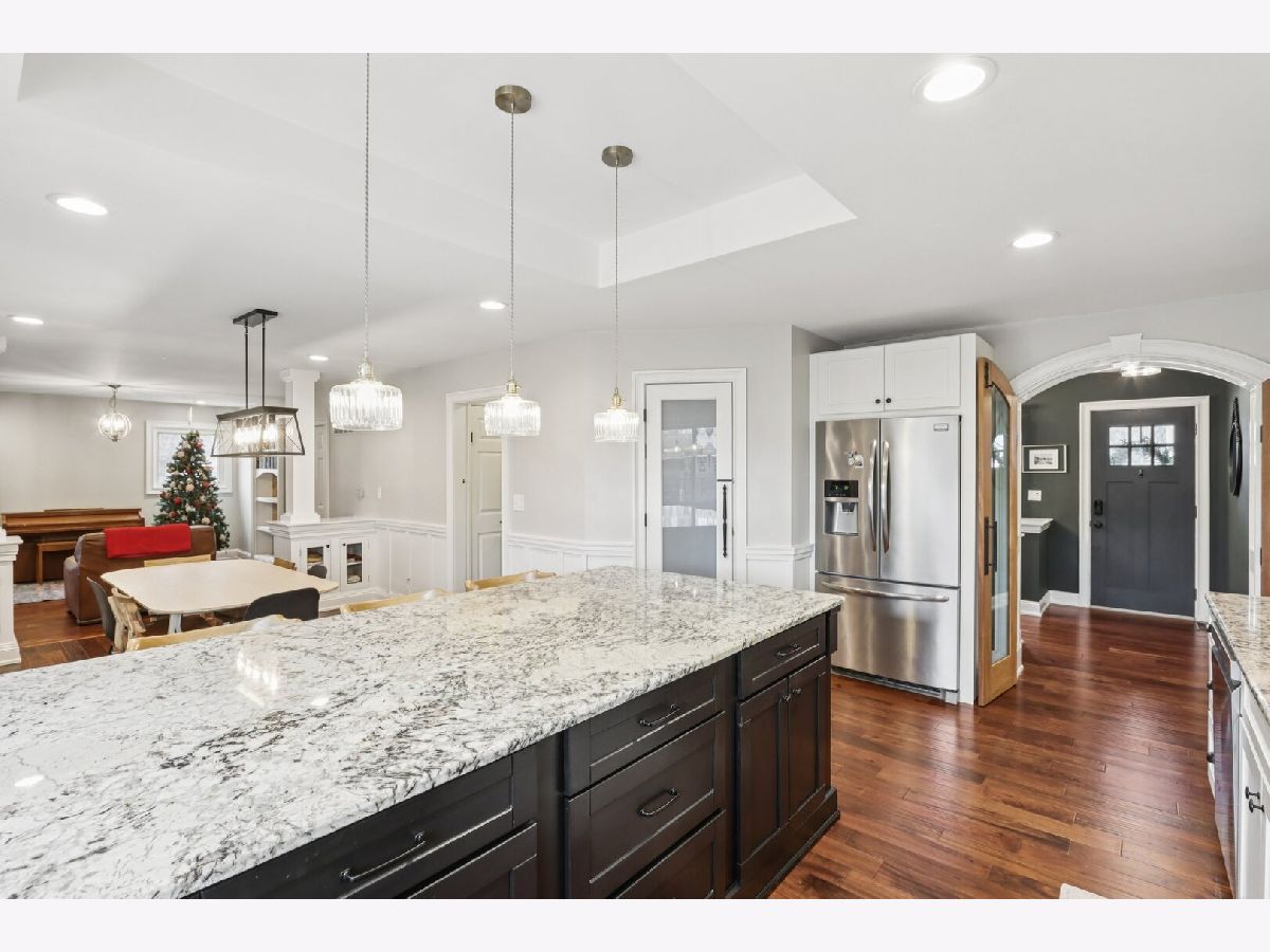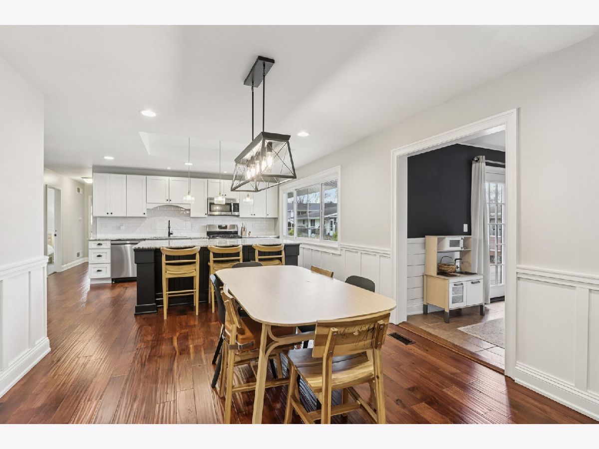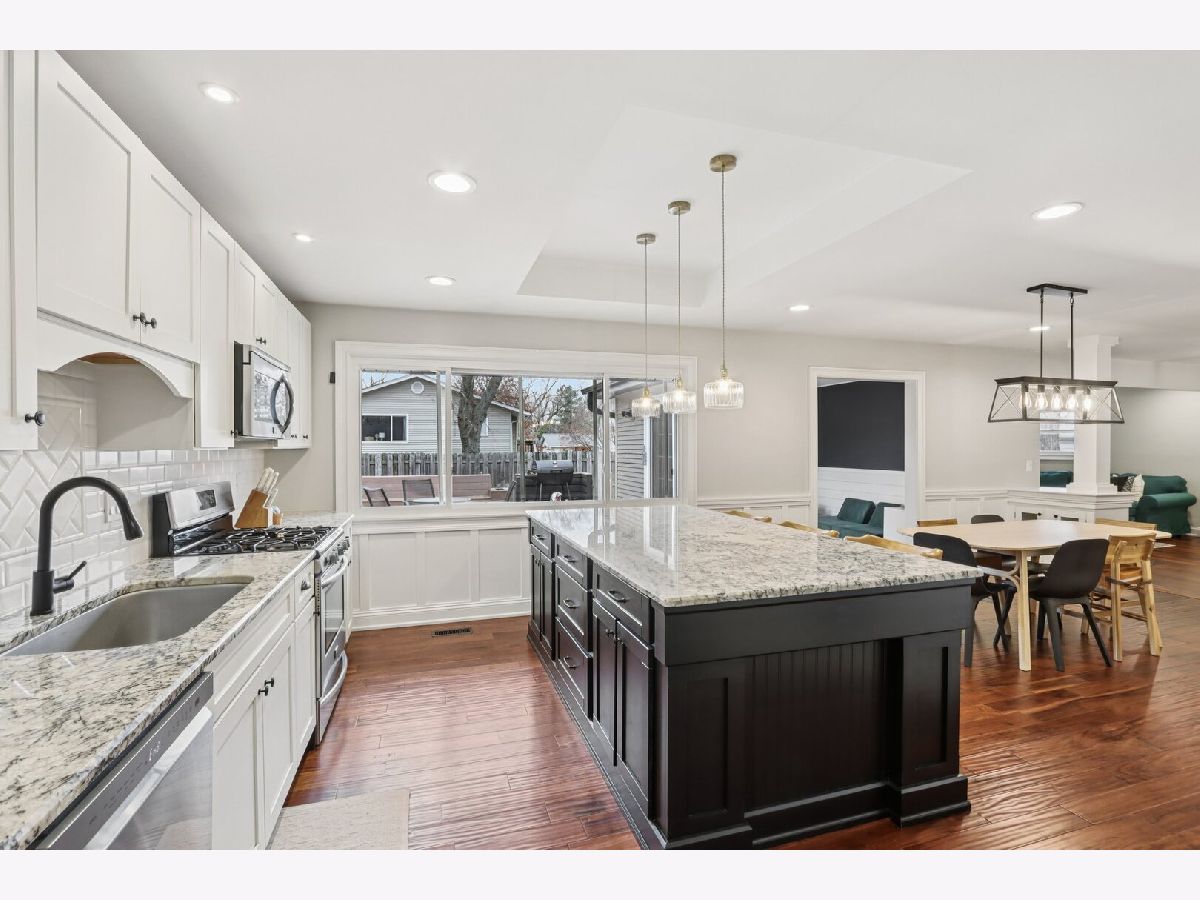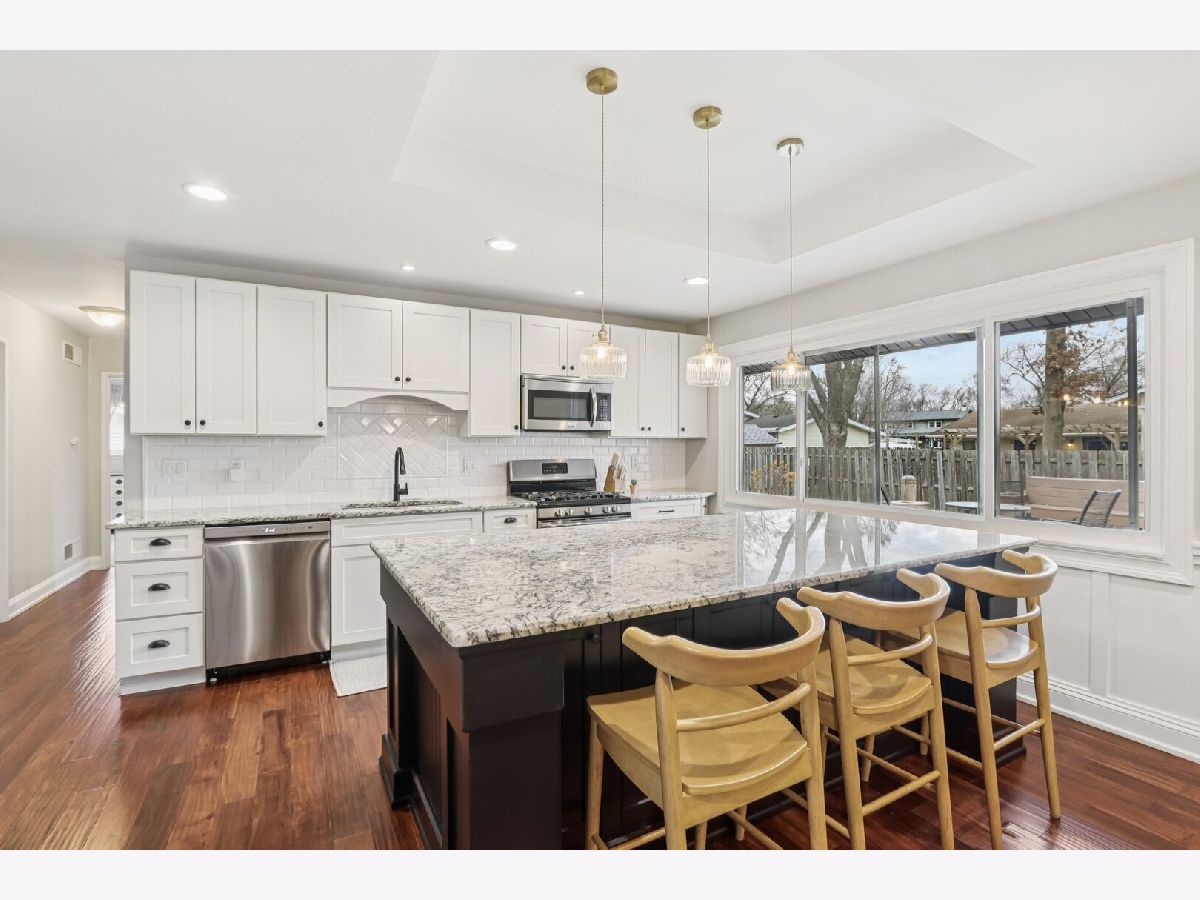 Welcome to this charming 3-bedroom, 2-bath ranch home! Step inside to an inviting arched doorway and stunning mahogany doors. The entry flows into a modern kitchen featuring white cabinetry, stainless steel appliances (including a new dishwasher), granite countertops, an island/breakfast bar, and a walk-in pantry, all adjacent to a cozy dining area. A spacious living room sits just beyond, complete with a stone fireplace and built-in shelving. The separate family room offers versatile flex space to fit your lifestyle needs. The office is filled with natural light thanks to a beautiful bay window and window seat, creating the perfect spot for creativity. Down the hall are three generous bedrooms with new carpeting, including a comfortable primary suite with its own private bath. A convenient mudroom/laundry room is located off the attached garage. French doors lead to a large deck that expands your living space outdoors. The fenced yard is ideal for relaxation, and additional storage can be found in the home's shed and attached garage. Other highlights include hardwood flooring, newly cleaned dryer vents, and updated light fixtures. Nestled on a quiet cul-de-sac with easy access to shopping, dining, and local amenities, this home is also located within the highly sought-after Downers Grove North High School District. Don't miss this gem, schedule your showing today!
