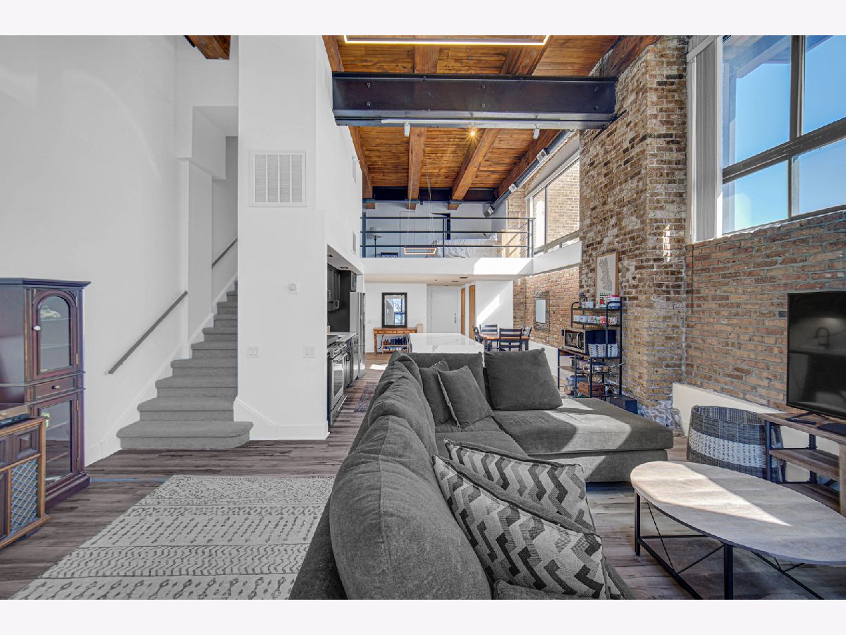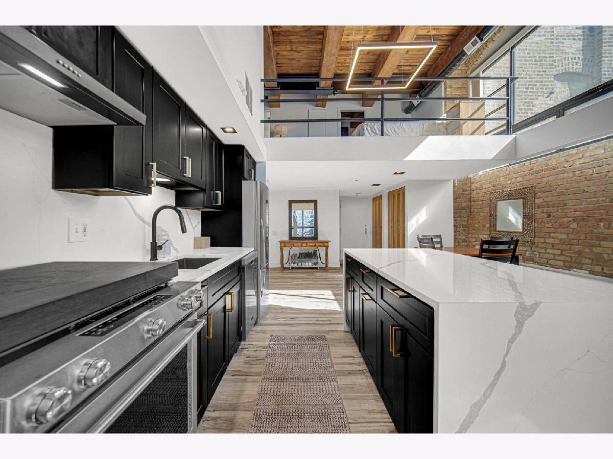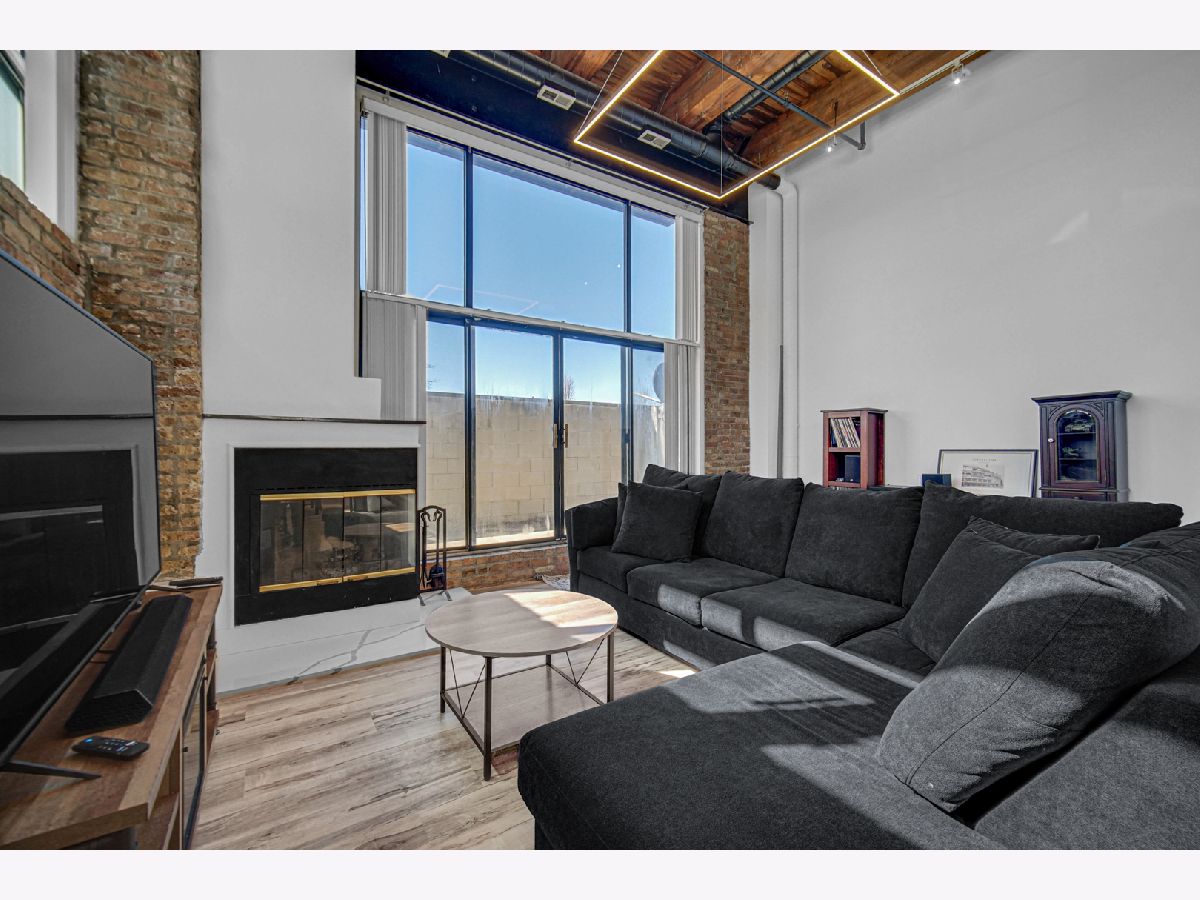 Welcome home to this beautiful 1 bed/1.5 bath loft with a potential second bedroom!! This corner unit boasts 18 foot ceilings, exposed brick, tons of natural light, an open floor plan, new luxury vinyl flooring (2023), with a newly updated kitchen (2023). The kitchen features quartz countertops (2023), matte black shaker cabinets (2023), stainless steel appliances, and large waterfall kitchen island (2023). This home is equipped with a dining area, a separate den space perfect for an office or potential second bedroom, in-unit laundry, and a large living room complete with a wood-burning fireplace. The living room opens up into a large private patio. Upstairs you'll find the primary lofted bedroom with brand new carpet, an ensuite bathroom and large walk-in closet. This unit comes with one gated parking space, new A/C (2024), new furnace (2024), and is perfectly situated near tons of shopping, grocery stores, and is conveniently located near the highway. Come make this loft your home!