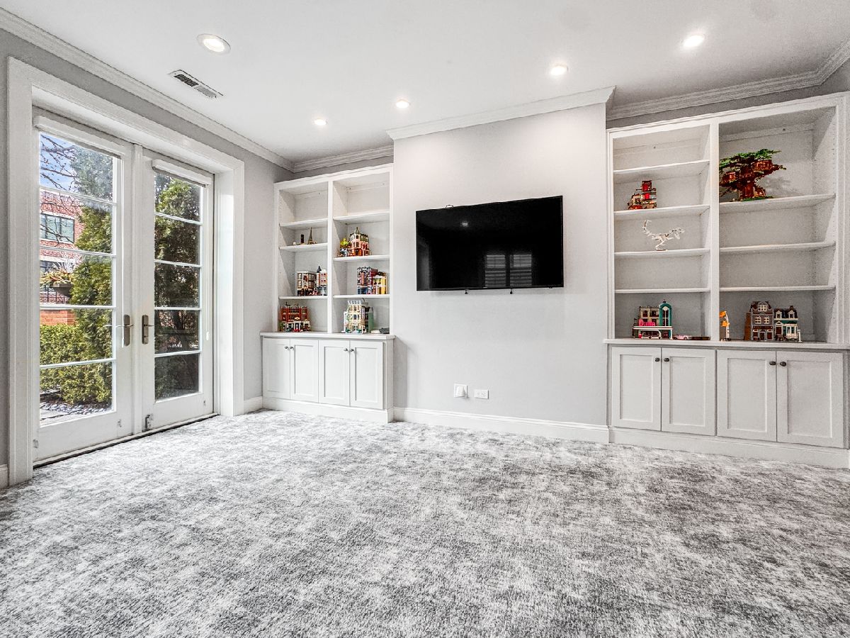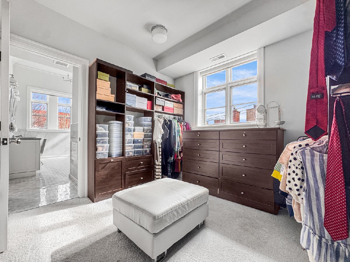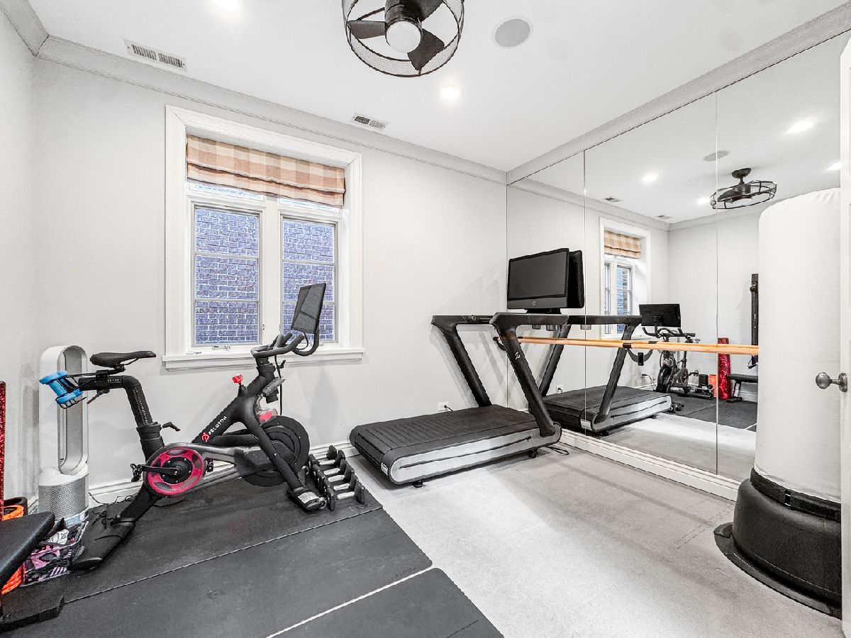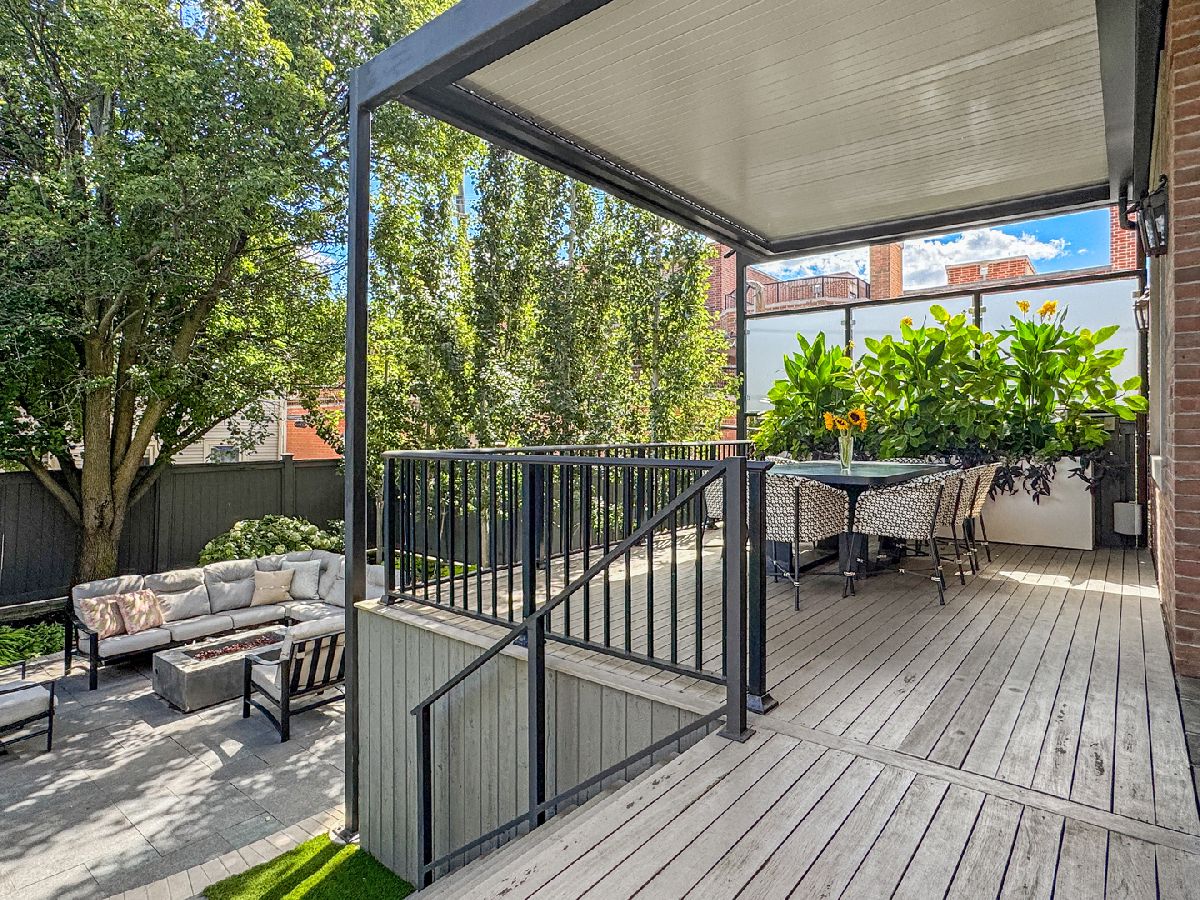 Reminiscent of suburban living, this exceptional 5,600 sq ft brick and limestone home sits on an extra wide corner lot, creating a bright, generously proportioned interior rarely found in the city. In addition to four en suite bedrooms, it offers a rare combination of tall ceilings, a newly renovated backyard, and an attached heated three car garage. The home features comfortable living spaces across three levels. The main level includes living and dining rooms, a private office with gas fireplace, and a white kitchen open to the family room with an oversized island, farmhouse sink, Viking and Miele appliances, and a butler's pantry. A separate breakfast or craft room overlooks the backyard. The family room features a coffered ceiling, a fireplace flanked by bookcases, and built-in desks with storage. French doors open to a terrace with a built-in grill and outdoor dining area beneath a new mechanical louvered pergola. Rarely found in the city, even on wide lots, the oversized backyard includes brick pavers, a firepit, turf lawn, and mature landscaping. The upper level offers three en suite bedrooms, an exercise room, and laundry. The primary suite includes a large dressing room and a bath with vaulted ceiling, dual vanity, new freestanding tub, steam shower, and private commode. The at grade entry level includes a two-story foyer with new hardwood floors, a bright recreation room, the fourth en suite bedroom, and a second laundry room. A mudroom with an adjacent walk-in cedar closet connects to the attached heated three-car garage, which is accessed from the side alley and offers additional storage and flexible space for bikes or gear. The home is located on a highly desirable residential block in west Lincoln Park within the Prescott School District and close to Wrightwood Park and Chi Che Wang Park.