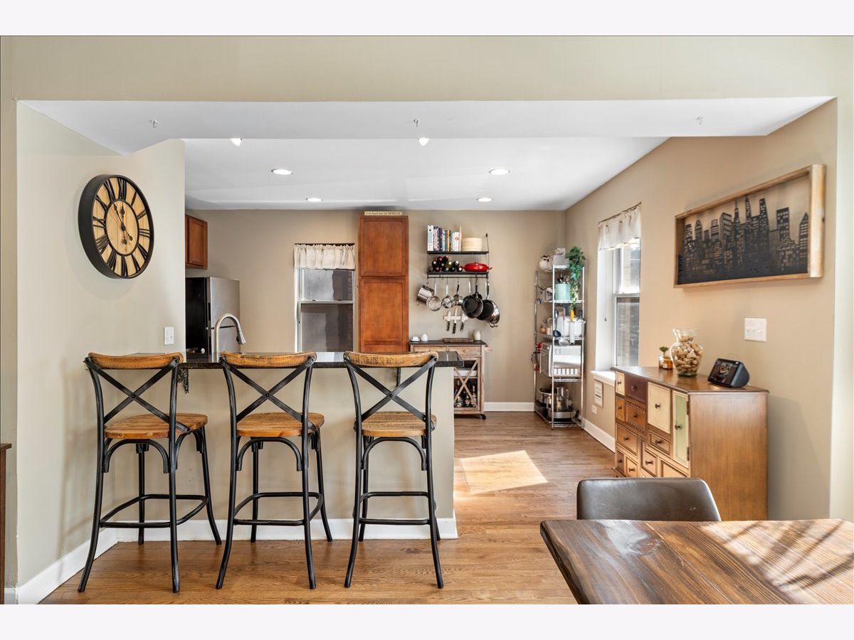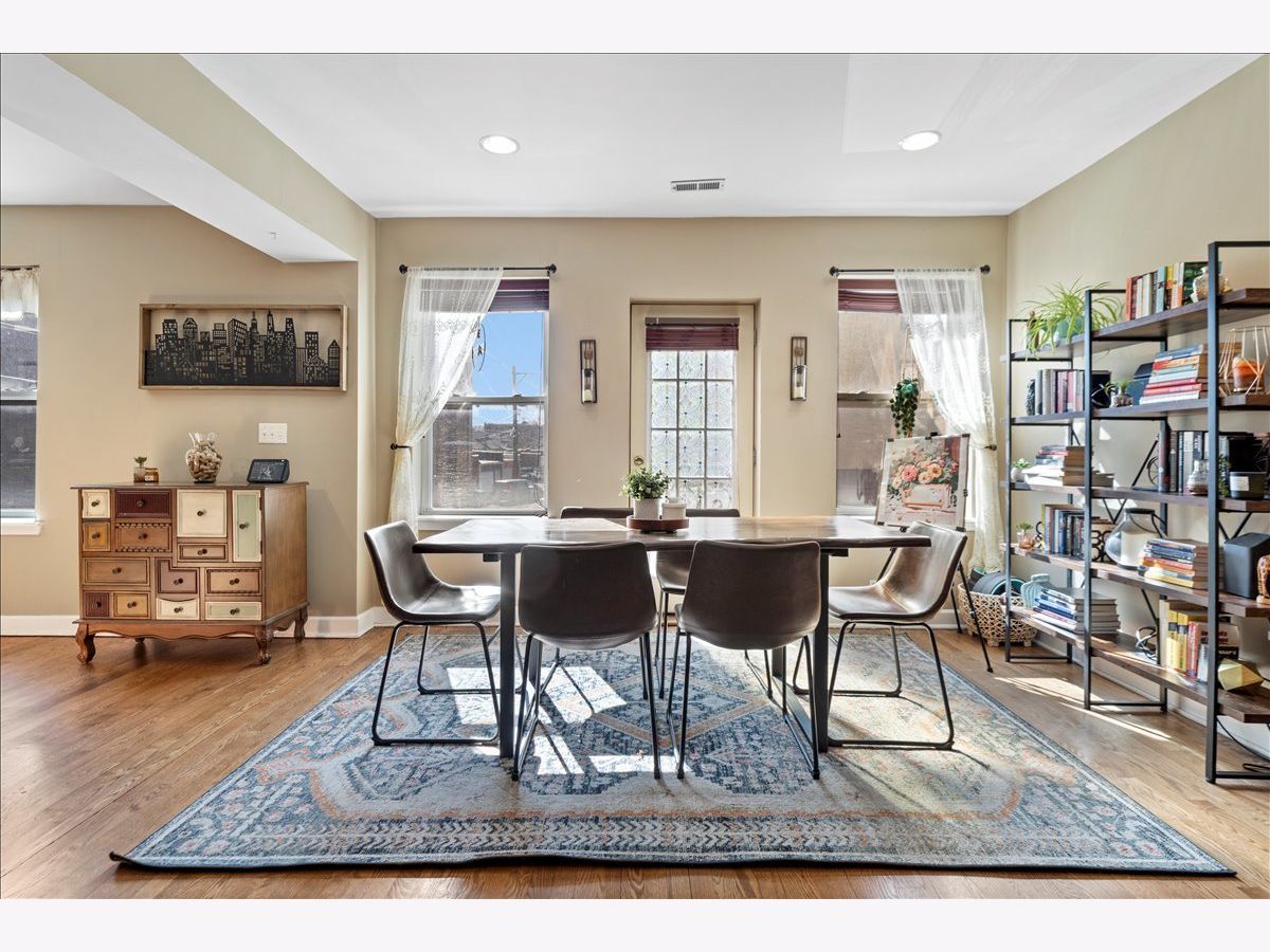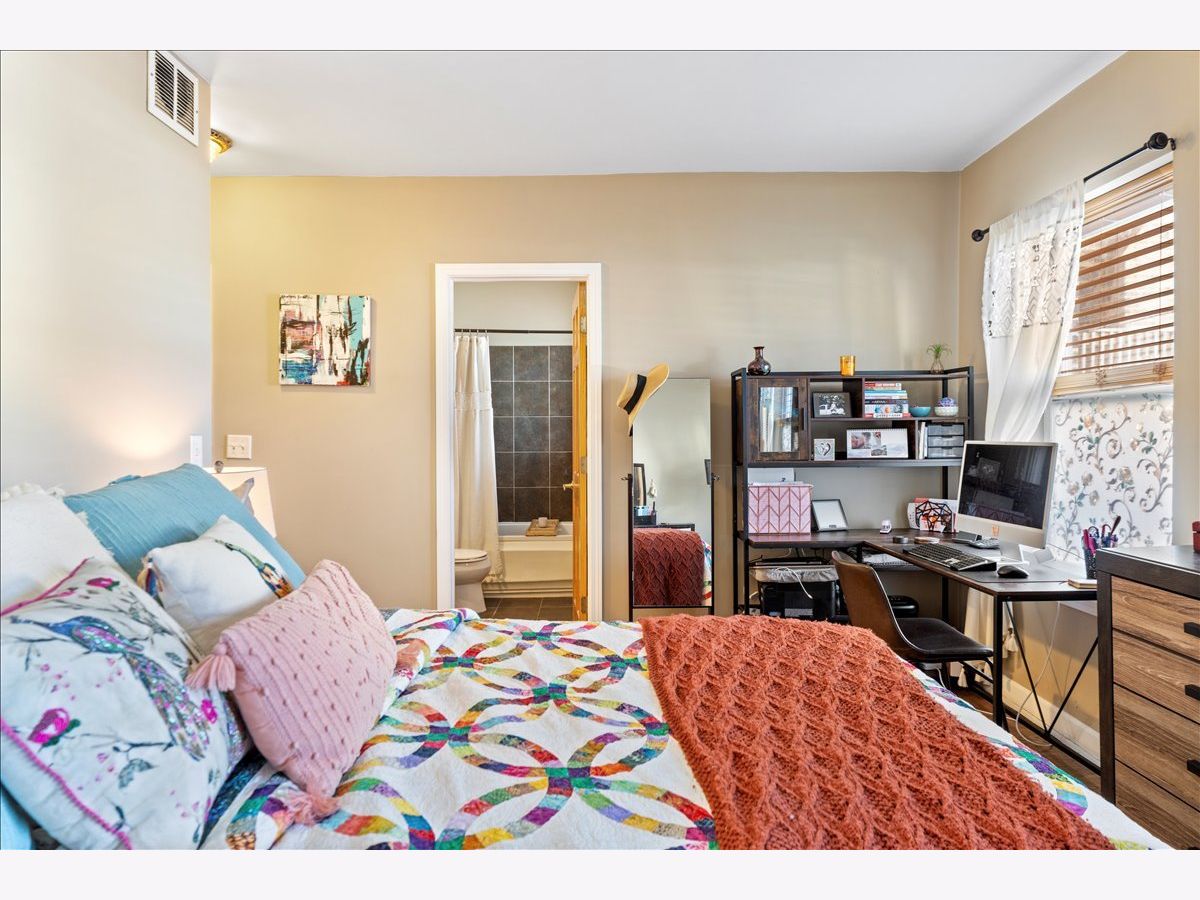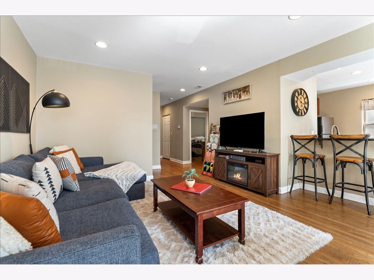 Great opportunity in West Ridge! This spacious & sunny 2 bed 2 bath condo features an open floorplan w/ hardwood flooring, recessed lighting, and a modern updated kitchen! Step into a large living room which is combined with dining room and Juliet balcony adding to the natural light. This flows right into the open kitchen which features a breakfast bar, granite countertops, cherry cabinets and SS appliances. Large primary bedroom w/ en suite bathroom and features both a walk in closet and a reach in closet. Second bedroom is also sizable and hall bath is right outside the bedroom. Unit features in unit washer/dryer, new HVAC, storage in the basement and private deck in the back. All decks were just re-done and are brand new! Conveniently located near Warren Park, the riverfront trail, public transportation, shopping, restaurants, grocery stores and more. Permit parking on Rosemont.