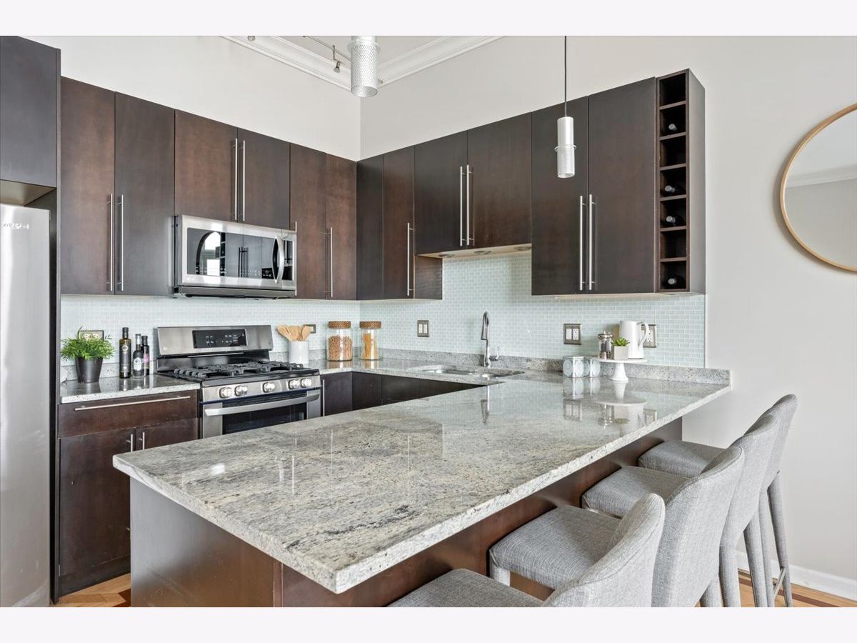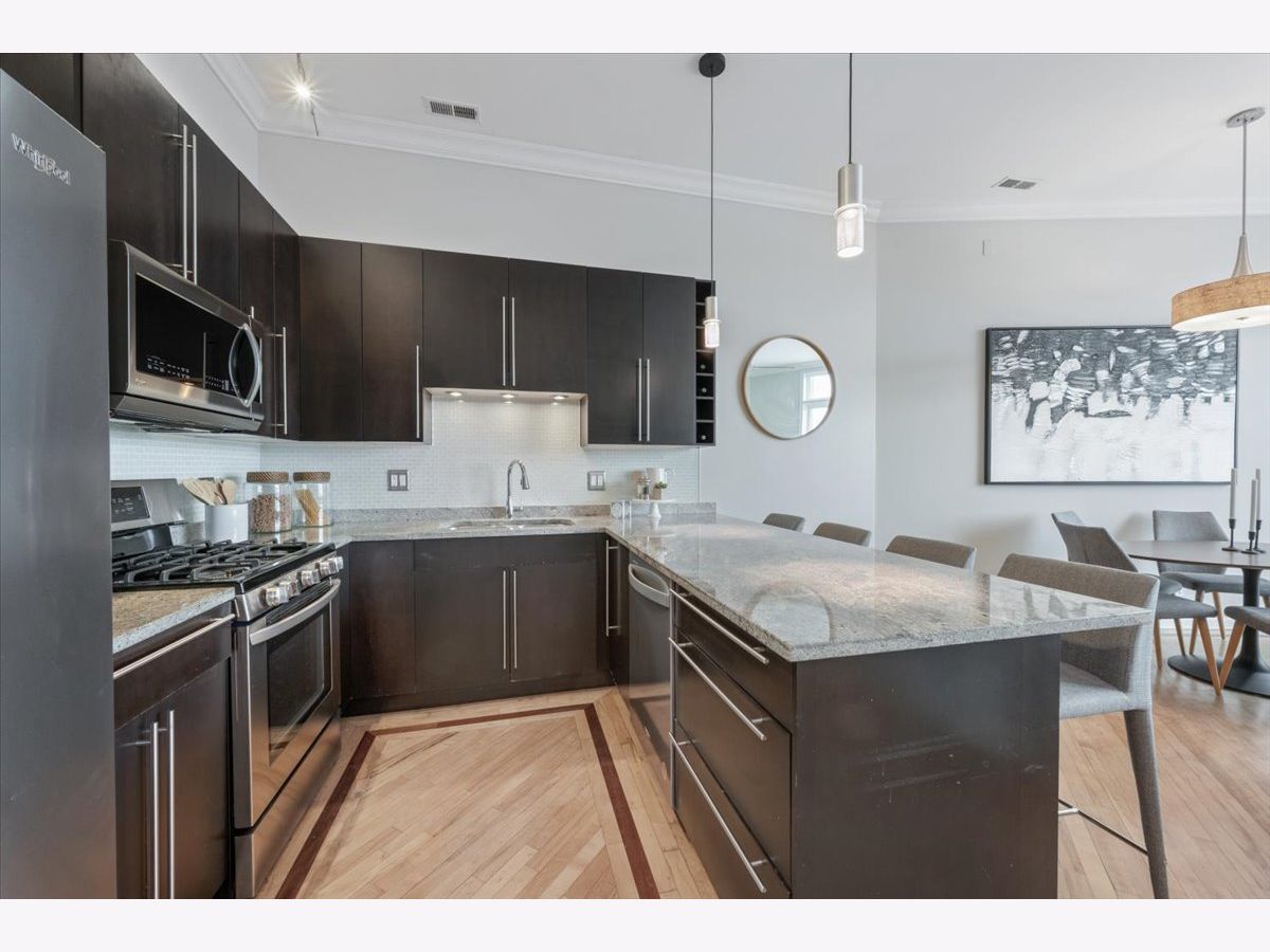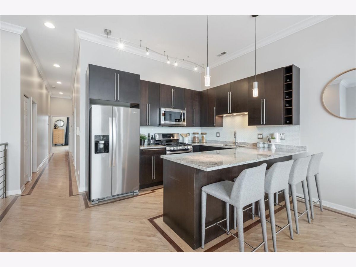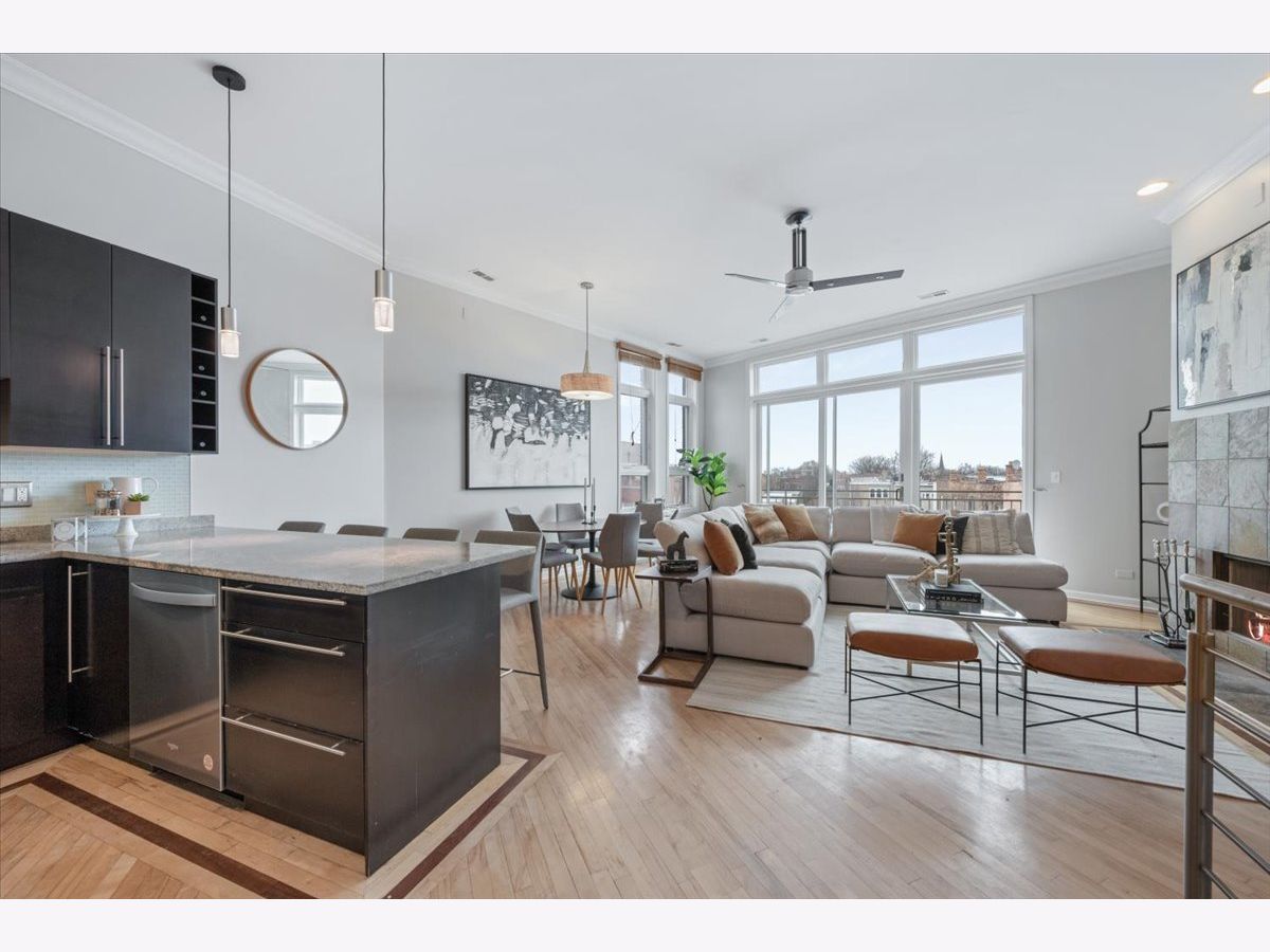 ***Multiple offers received, best and final due Monday, 2/16 at noon.*** Don't miss this sun-drenched top-floor 3-bedroom, 2-bath condo in a thriving West Town location. The spacious, light-filled floor plan features 11' ceilings, crown molding, a private balcony, and hardwood floors throughout. The sleek kitchen offers espresso cabinetry, a granite breakfast bar, glass tile backsplash, and stainless steel appliances. Spa-like baths are finished with stone tile, including a primary suite with double vanity and separate tub and shower. There is ample closet space in every bedroom, a balcony off of the primary suite, a balcony off of the living room, plus a private roof deck with incredible city views to the south and a shared common deck to the north. Wired for surround sound. Two-car tandem parking included. Walk to Smith Park, Metra, and some of the neighborhood's best dining including Kai Zan, Rootstock, Segnatore, and more.