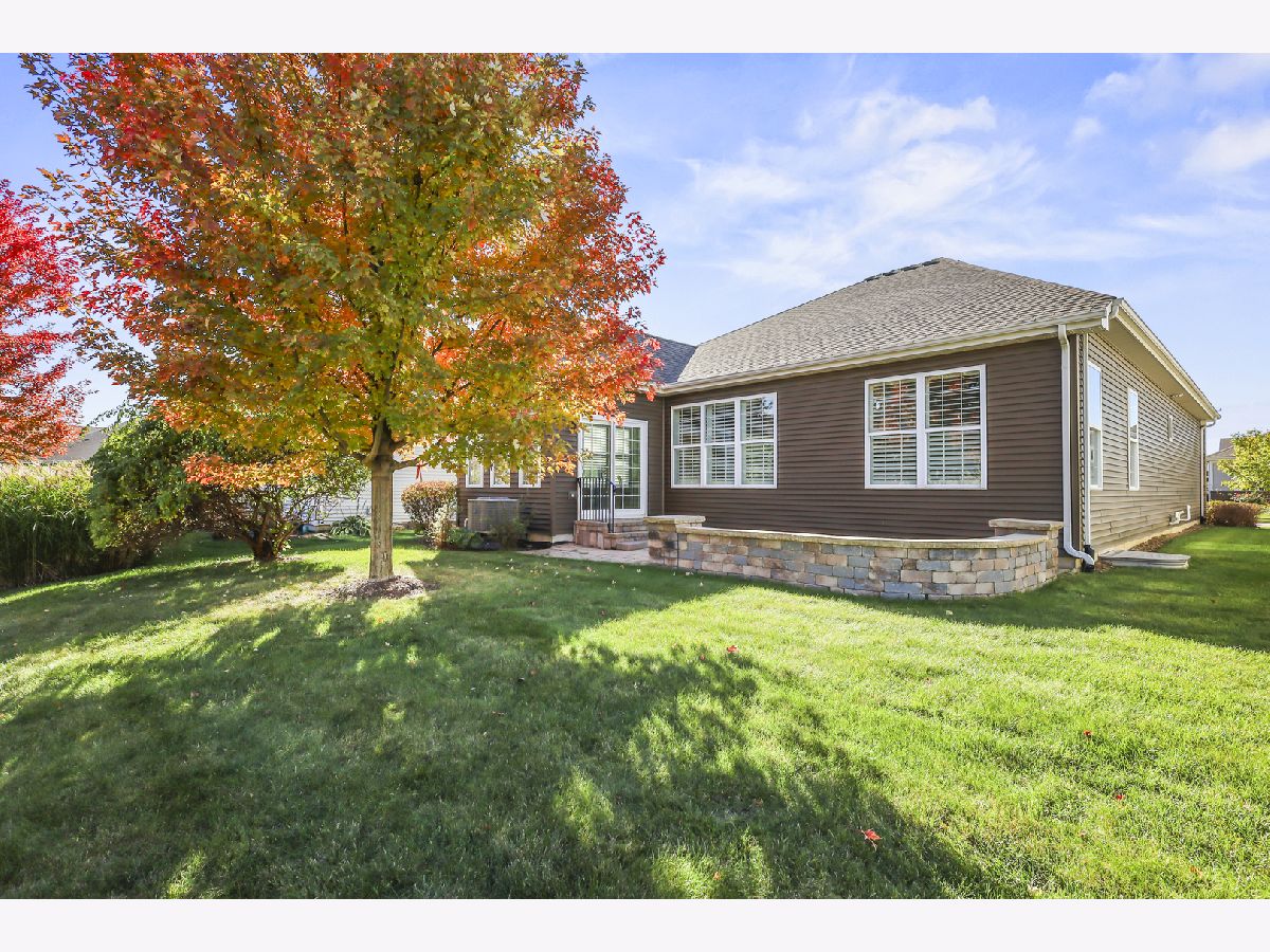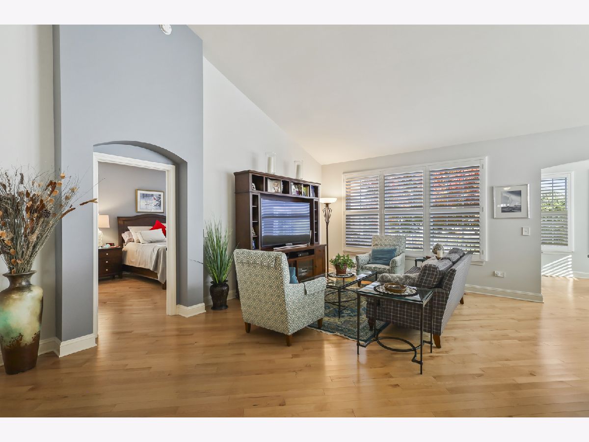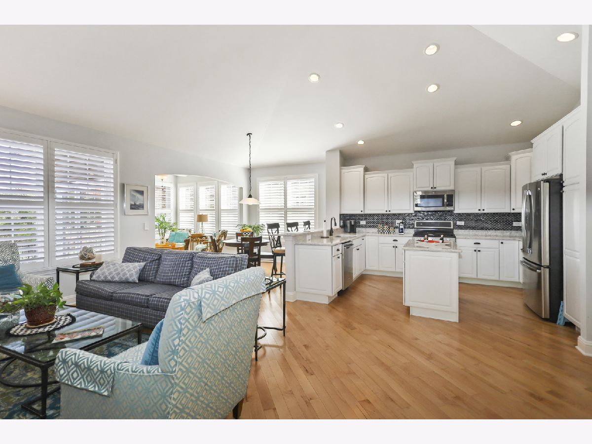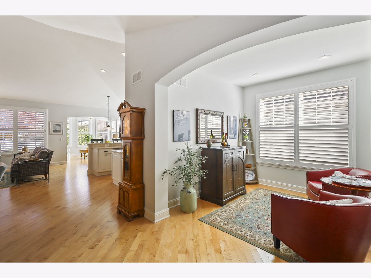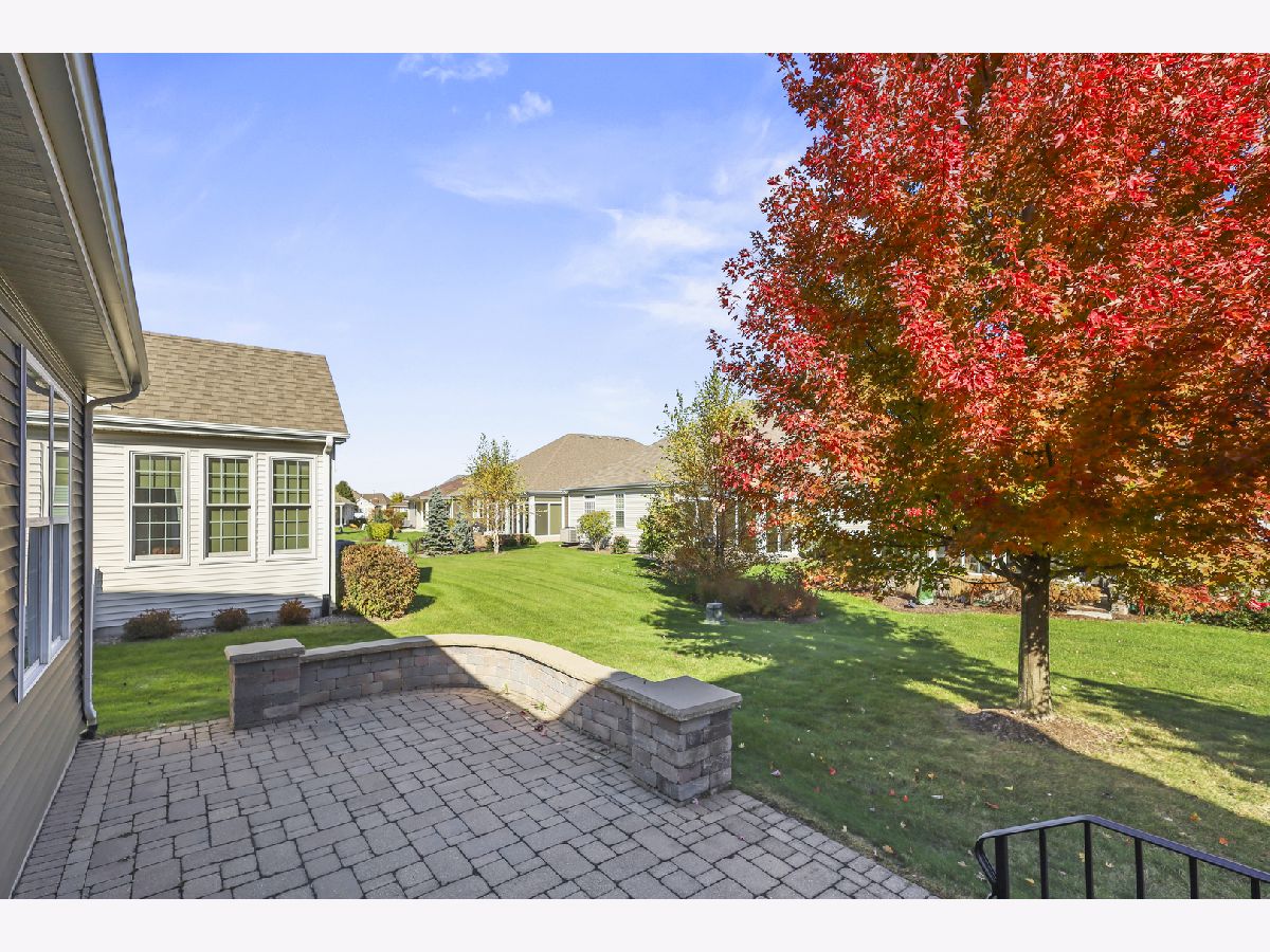 Discover comfort, style, and low-maintenance living in this beautifully maintained 2-bedroom, 2-bath Ranch home nestled in the desirable Carillon Club! This home is the perfect blend of elegance and ease. As you step inside, you are greeted with an open spacious layout along with gleaming Hardwood Flooring throughout the entire main level, creating a warm, seamless flow from room to room. Vaulted ceilings and flooding with natural light. The updated kitchen boasts elegant white cabinetry, Quartz Countertops, SS appliances and Island for additional storage. All the finishes throughout are completed with sleek brushed oil-rubbed bronze, offering both functionality and refined style. Dining and Living room are combined with an open concept. Enjoy your morning coffee or unwind with a book in the sun-drenched sunroom, featuring large windows that fill the space with natural light. Or lounge in leisure in the backyard on your beautiful brick paved patio. Plantation shutters throughout the home provide a timeless look and added privacy. The spacious primary suite includes high ceilings, two generous closets with one being a walk-in and hardwood flooring. Primary bath features dual quartz countertop vanity and standup shower with seating accommodation. The second bedroom and full guest bath offer comfort for visitors or a flexible home office setup. Make your way downstairs to find a full unfinished basement that is the perfect blank canvas-ideal for storage or future living space, along with huge crawl area for additional storage. 2 car garage is finished with appoxy flooring and insulation. This immaculately maintained home is move-in ready and located just minutes from shopping, dining, AMC movie theater, the new Block 59 shopping center, expressways and much more! Welcome home!