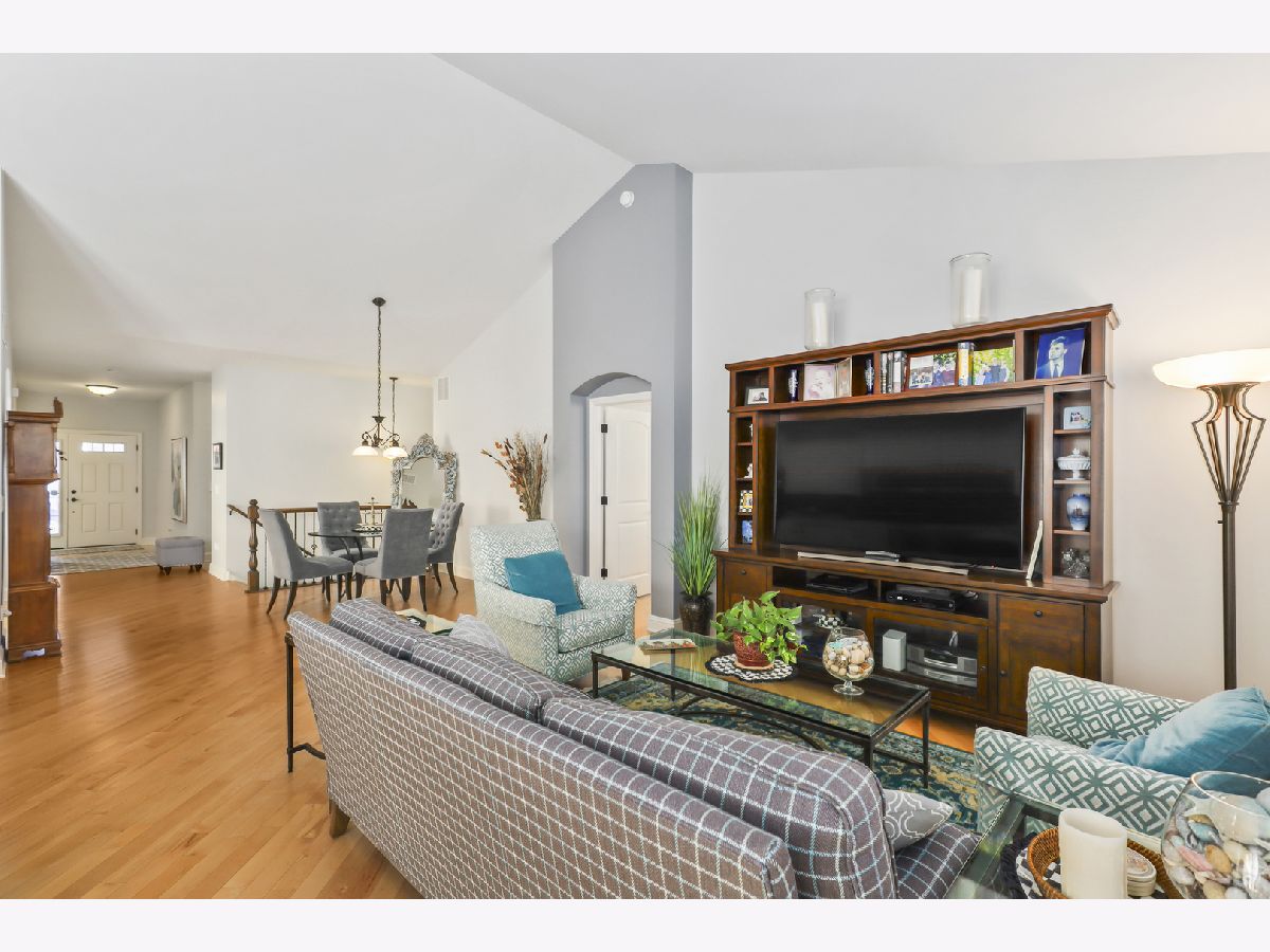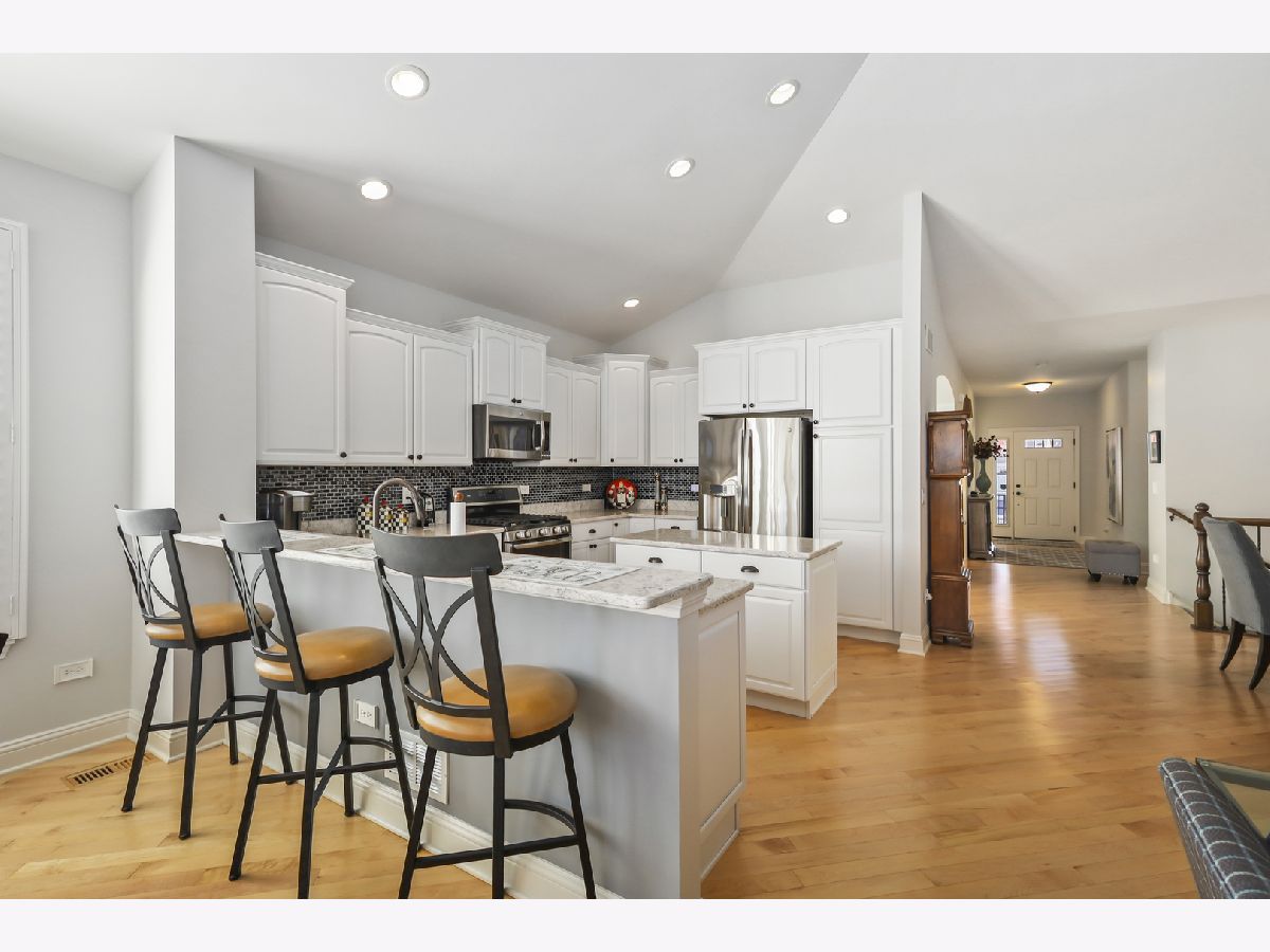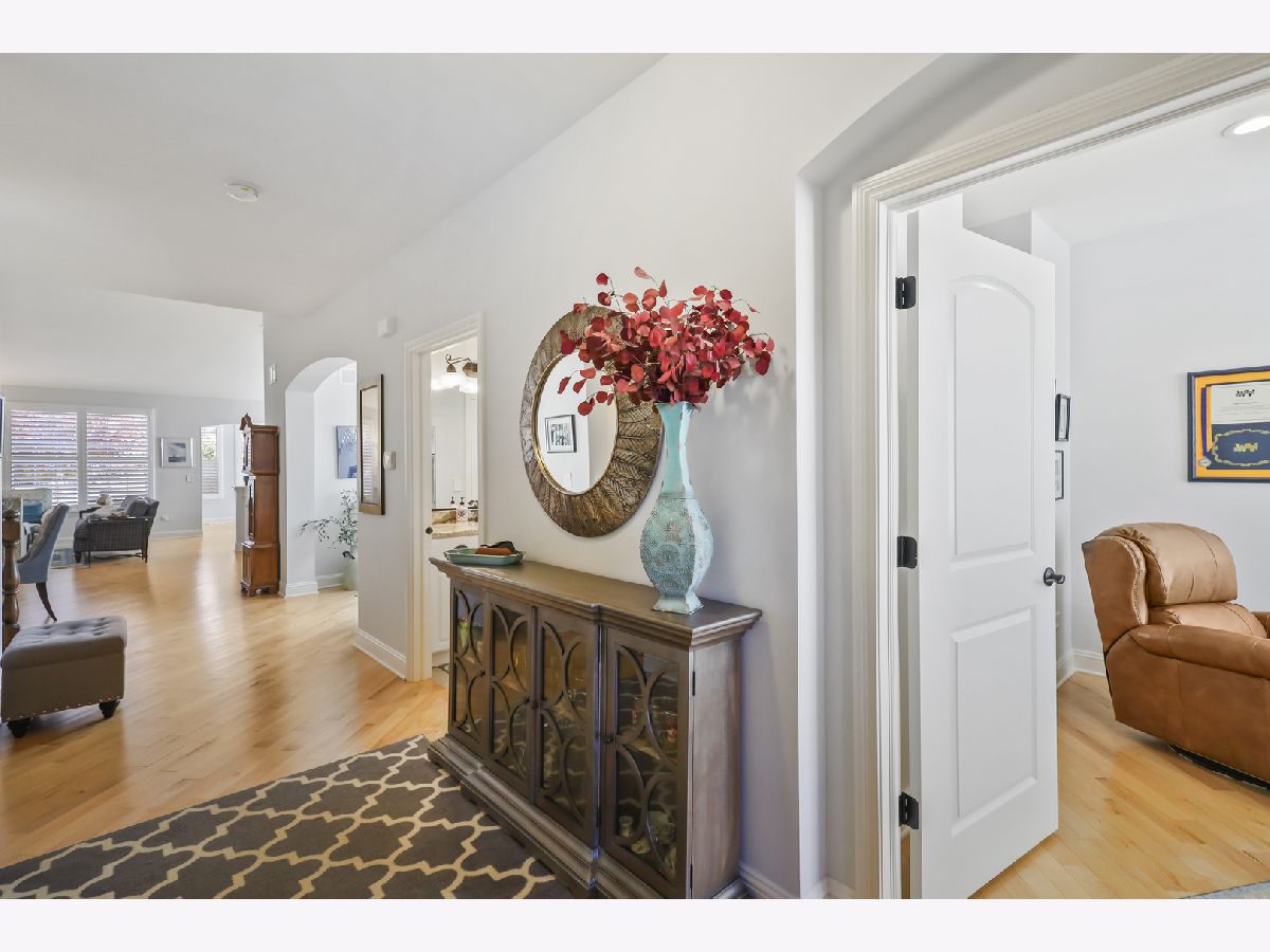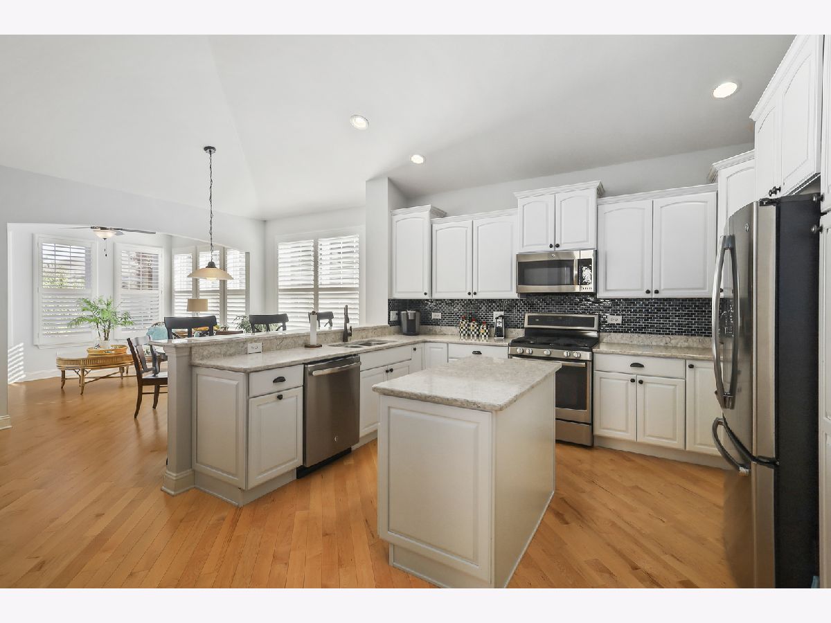 Discover comfort, style, and low-maintenance living in this beautifully maintained 2-bedroom, 2-bath Ranch home nestled in the desirable Carillon Club! This home is the perfect blend of elegance and ease. As you step inside, you are greeted with an open spacious layout along with gleaming Hardwood Flooring throughout the entire main level, creating a warm, seamless flow from room to room. Vaulted ceilings and flooding with natural light. The updated kitchen boasts elegant white cabinetry, Quartz Countertops, SS appliances and Island for additional storage. All the finishes throughout are completed with sleek brushed oil-rubbed bronze, offering both functionality and refined style. Dining and Living room are combined with an open concept. Enjoy your morning coffee or unwind with a book in the sun-drenched sunroom, featuring large windows that fill the space with natural light. Or lounge in leisure in the backyard on your beautiful brick paved patio. Plantation shutters throughout the home provide a timeless look and added privacy. The spacious primary suite includes high ceilings, two generous closets with one being a walk-in and hardwood flooring. Primary bath features dual quartz countertop vanity and standup shower with seating accommodation. The second bedroom and full guest bath offer comfort for visitors or a flexible home office setup. Make your way downstairs to find a full unfinished basement that is the perfect blank canvas-ideal for storage or future living space, along with huge crawl area for additional storage. 2 car garage is finished with appoxy flooring and insulation. This immaculately maintained home is move-in ready and located just minutes from shopping, dining, AMC movie theater, the new Block 59 shopping center, expressways and much more! Welcome home!
