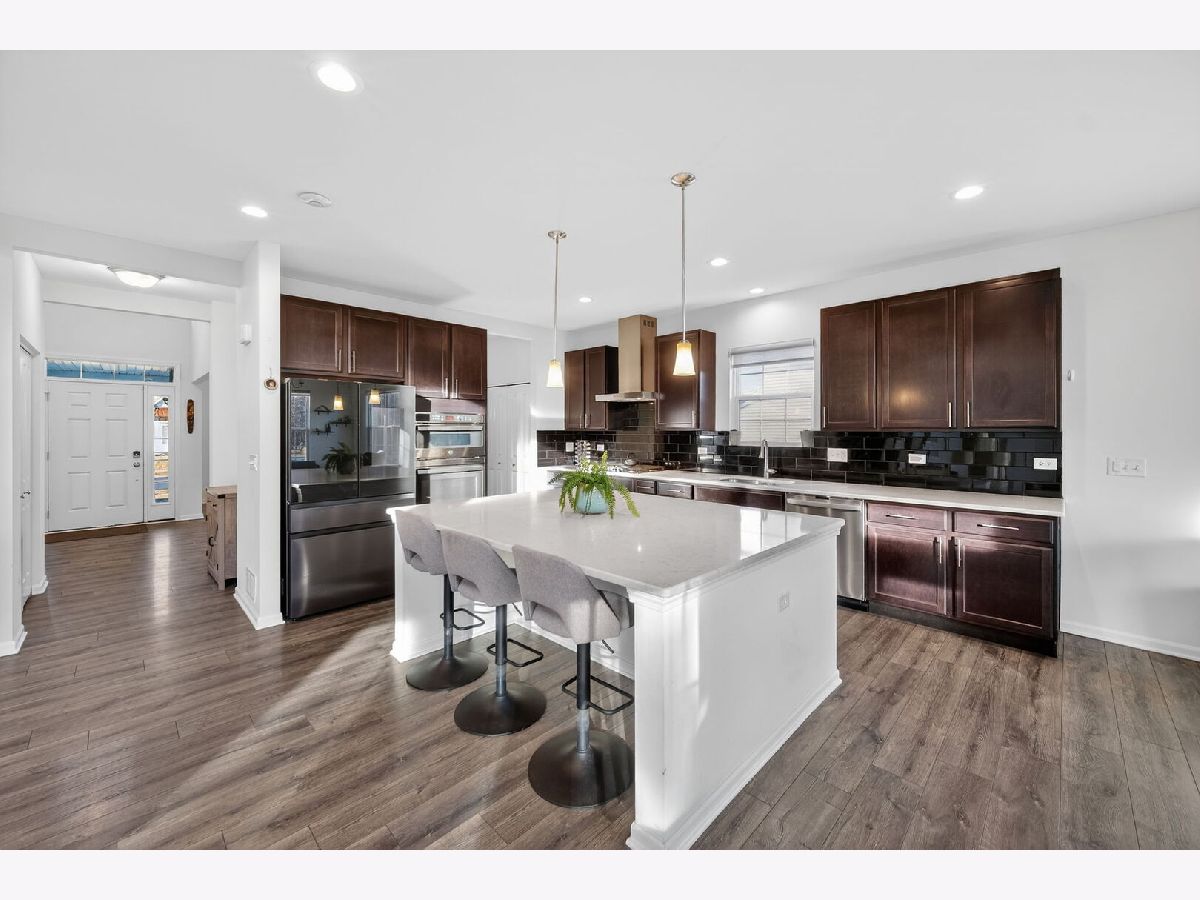 Experience elevated living in this impressive Hudson model by M/I Homes, offering 5 bedrooms and 3.1 bathrooms with a perfect blend of style, comfort, and smart-home features. Constructed in 2023, this residence feels brand new-without the construction wait time. The main floor welcomes you with durable prefinished wood laminate flooring, a hard-to-find main-level in-law bedroom with a private ensuite, and a striking two-story family room highlighted by 18-foot ceilings that create an open, sun-filled atmosphere. Designed for both everyday living and entertaining, the chef's kitchen showcases a massive upgraded 7.6' x 5.6' center island, Carrara Mist quartz countertops, upgraded cabinetry, kitchen backsplash, a walk-in pantry, and a Samsung Bespoke 4-door French-door refrigerator with Family Hub, along with Wi-Fi-enabled smart appliances including the refrigerator, dishwasher, and washing machine. Smart switches throughout the home enhance comfort and efficiency. The kitchen flows effortlessly into the breakfast area and family room, with an upgraded morning room just beyond-ideal for casual dining, relaxation, or supervising daily activities. Additional main-level spaces include a formal dining room, mudroom, and a charming covered front porch. Upstairs, the secluded owner's suite offers a peaceful retreat, complete with a fully upgraded primary bath featuring a large shower, soaking tub, private water closet, quartz vanity, and an expansive walk-in closet. Three additional bedrooms, a full hallway bath, and a convenient second-floor laundry room round out the upper level. All bathrooms are finished with quartz countertops for a modern, cohesive look. A full unfinished basement with rough-in plumbing for a future bathroom provides endless possibilities for customization. Additional enhancements include exterior fencing, professionally planted vegetation, and a whole-home Wi-Fi router system with signal enhancers for seamless connectivity throughout. Located in Plainfield and served by the highly acclaimed Oswego School District #308, this beautifully upgraded home delivers exceptional quality and design-a true standout.
