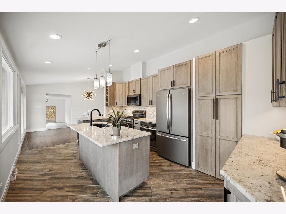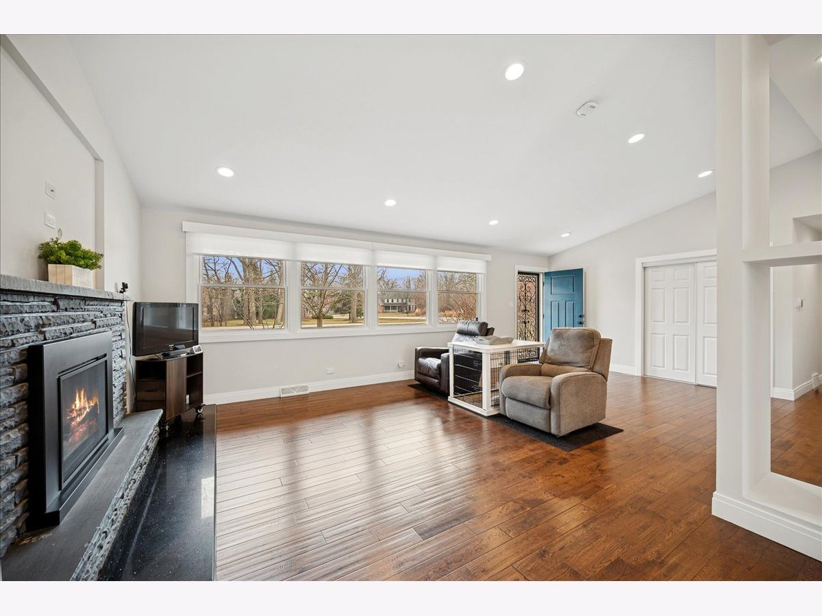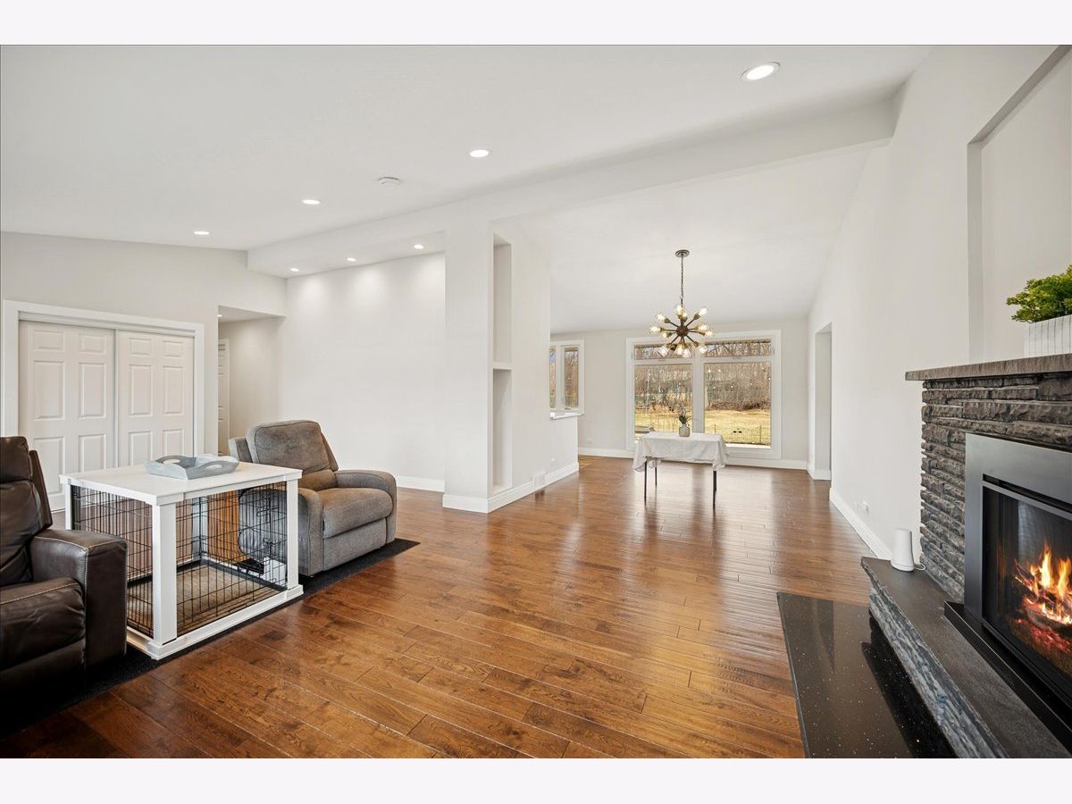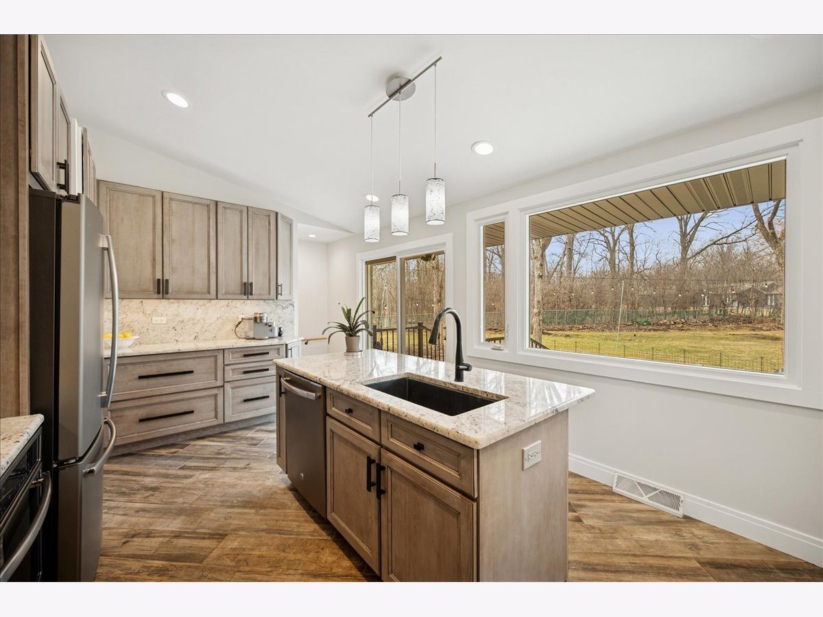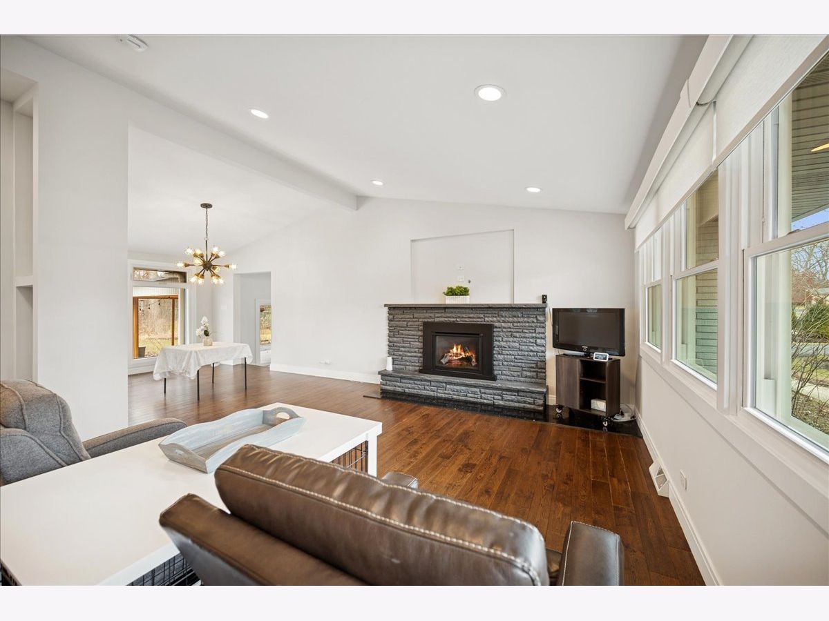 Step into the charm of 2640 Forest Glen Trail in Riverwoods-a stunning, fully renovated ranch retreat nestled on a picturesque almost 1 acre lot at the end of a tranquil cul-de-sac. As you enter this 4-bedroom, 2-bathroom gem, you're greeted by a spacious living and dining area featuring soaring vaulted ceilings, a cozy fireplace, and rich hand-scraped oak floors illuminated by recessed lighting throughout. The heart of the home is a bright, beautifully designed kitchen with custom cabinetry, sleek stainless steel appliances, granite countertops, and a sliding door that opens seamlessly to the patio-perfect for indoor-outdoor living. The back of the house is a showstopper, with expansive windows and doors that invite the lush outdoors inside. The dining room flows into a massive sunroom, where heated floors and walls of windows create a year-round haven of light and warmth. Downstairs, the finished basement offers even more space to spread out, with an additional bedroom, and office, a bathroom, a laundry room, and a large family room complete with wall-to-wall cabinets, a chic dry bar with custom features, and polished concrete flooring. Outside, the backyard is a private oasis, boasting a sprawling patio with a partially covered area perfect for enjoying morning coffee, lazy afternoons, or evening gatherings. Surrounded by lush greenery, the outdoor space feels like your own personal retreat, ideal for entertaining or unwinding in nature. The sellers also recently widened the driveway in the past year as well. Please note this home is on city water and sewer not a septic. Location is top notch with close proximity to all shops and highway access making it secluded but still super accessible. This home is designed for seamless hosting and effortless living, both indoors and out. Welcome Home!
