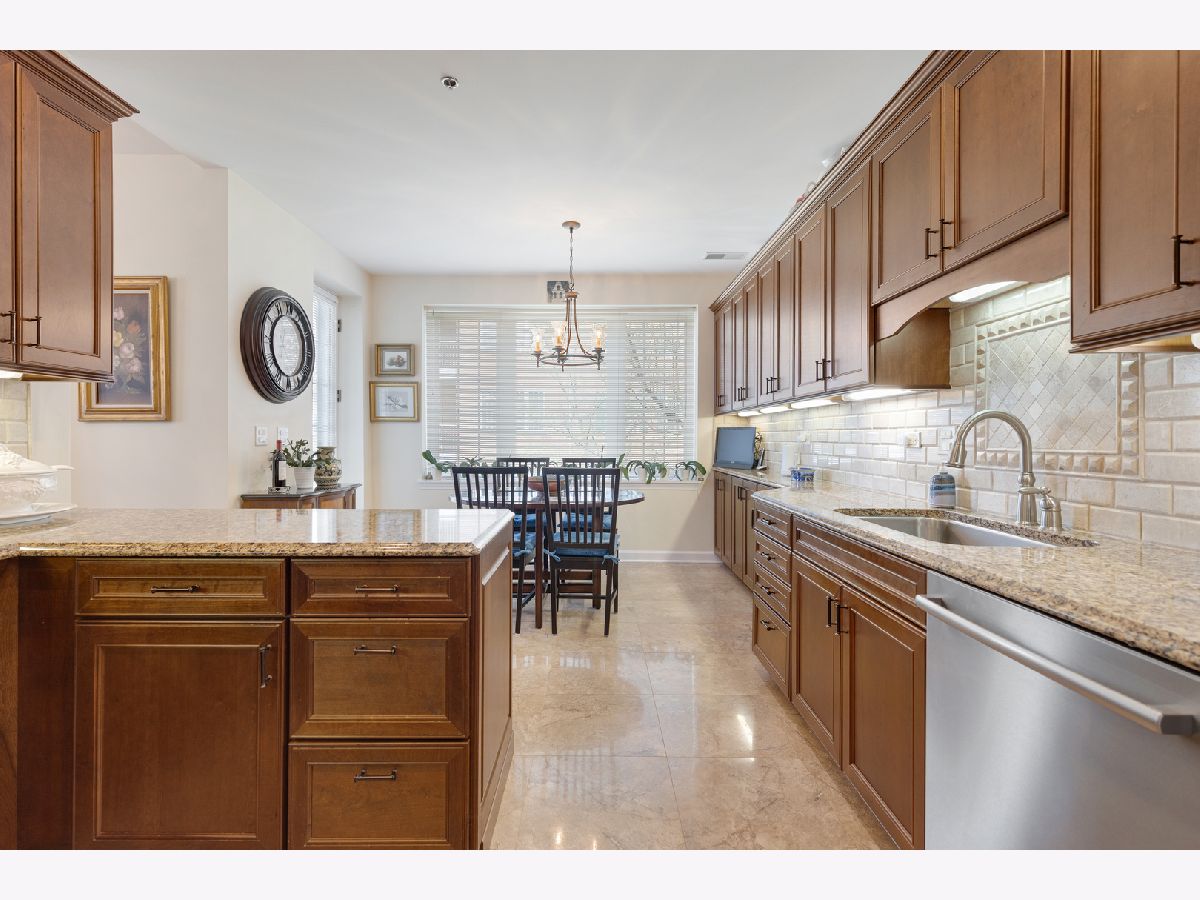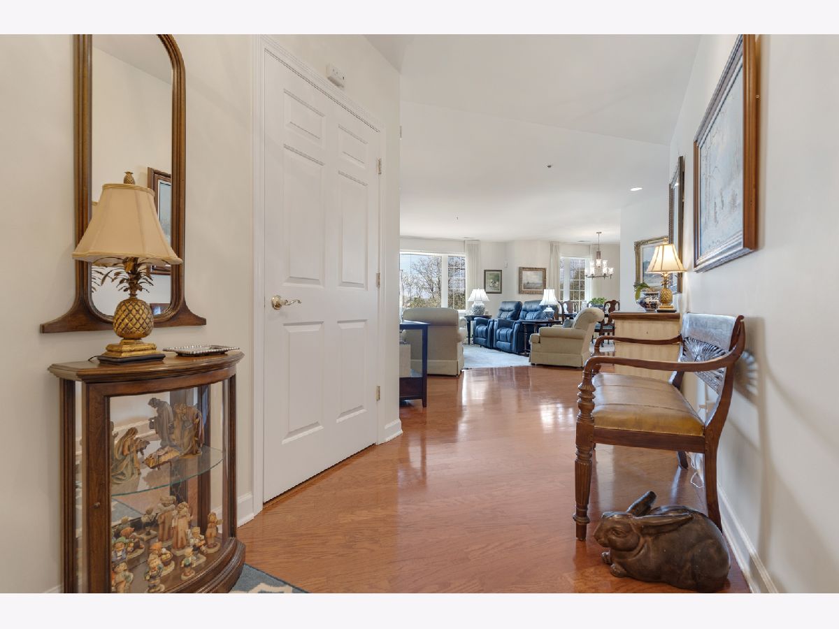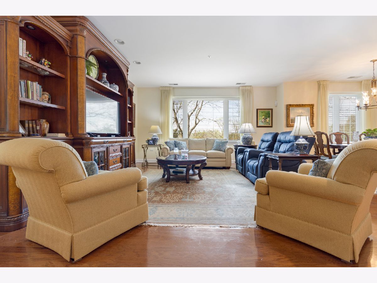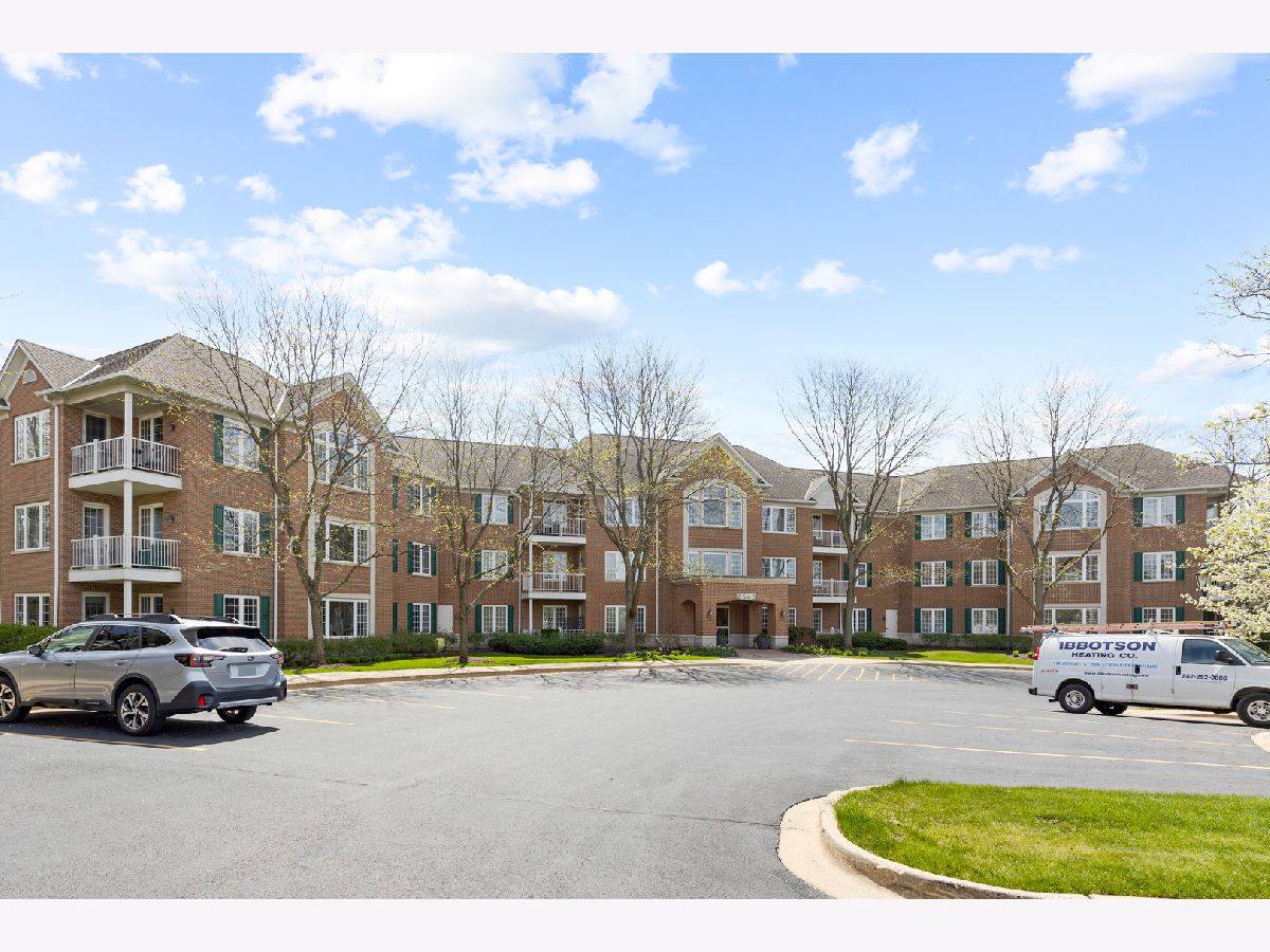 RARELY AVAILABLE and beautifully updated LARGEST 3BR, 2.1 BA END UNIT in lovely professionally managed elevator building. Pristine condition!!! This luxurious condo offers spacious living & dining rms for versatile entertaining with gleaming hardwood floors and lots of windows for a bright and airy space. Updated kitchen with granite countertops & breakfast area w/balcony overlooking the landscaped grounds w/mature trees (no view of Willow or Waukegan Roads). Primary bedroom has walk-in closet w/built in organizers & updated bathroom suite with separate toilet room and large shower. 2nd full bathroom is updated with same high quality finishes as the primary bathroom suite. In-unit laundry has a newer stackable washer and dryer and a second refrigerator. New Furnace and AC (2023) and cook's kitchen features a brand new, deluxe stainless steel kitchen refrigerator. INDOOR PARKING FOR TWO CARS (spaces 16 &17) in heated garage plus adjacent secured storage space. Lovely sitting room off the elevator on the 2nd floor offers a nice sunny place for a guest or resident to linger. Living Room entertainment center included in sale of the condo. Close to grocery stores, restaurants, walking paths, recreation and more. SHOWINGS TO BEGIN APRIL 21ST.