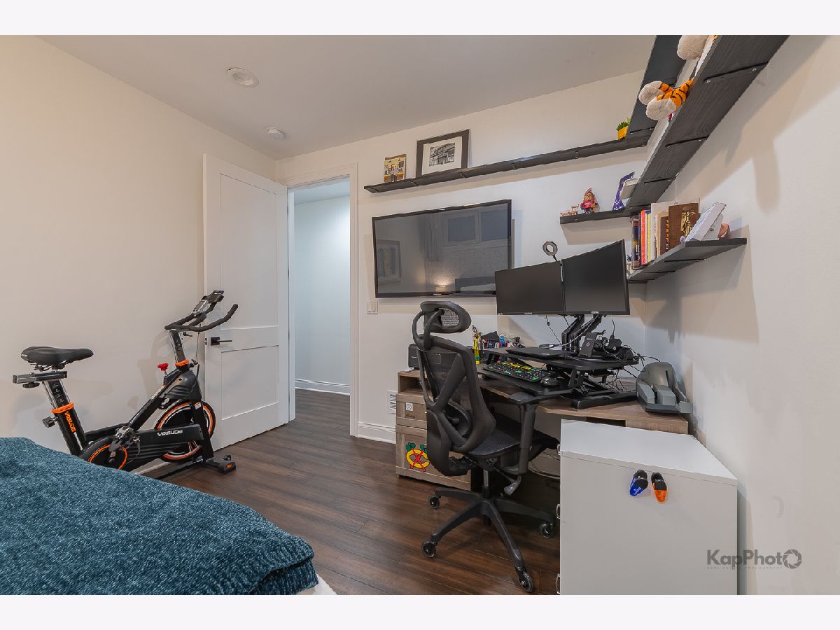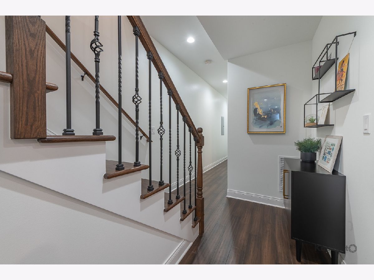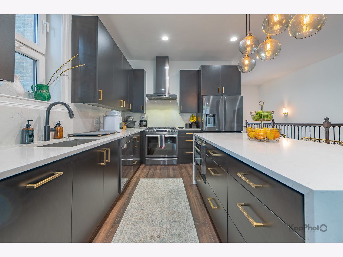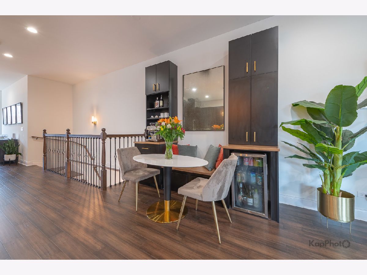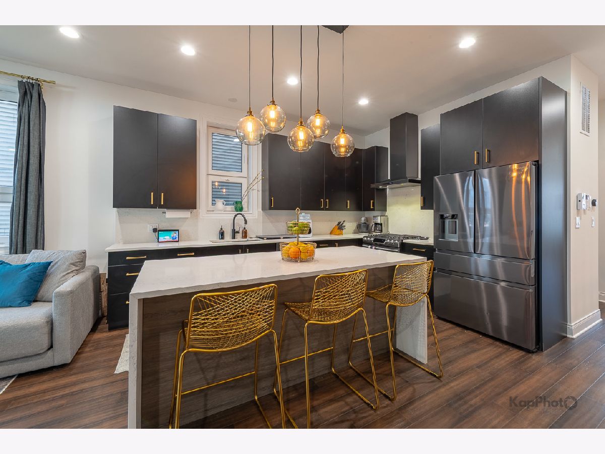 Luxury newer-construction duplex with 3 bedrooms, 2.1 baths, garage parking, and 2 impressive private outdoor spaces. The main level includes an oversized covered terrace with deck extension off the family room, plus a massive private garage roof deck with pergola, custom planter boxes, and privacy tree fencing. Roof deck is reinforced and prepped for a future ADU (Accessory Dwelling Unit). . The main floor offers an open layout with living room, dining area, kitchen, and family room across the full level, giving it a single-family home feel. The living room features dramatic floor-to-ceiling windows. The family room opens directly to the covered terrace and leads to the roof deck. The kitchen is finished with Italian 48" flat-panel cabinetry, quartz countertops with full-height backsplash, waterfall island with built-in microwave, undermount sink with Brizo pull-down faucet, and Samsung graphite stainless steel appliances. A breakfast nook adds custom built-in seating, storage, cabinetry, and a wine/beverage fridge. The lower level includes all 3 bedrooms and 2 full baths. The primary suite offers a spa-like bath with Italian double vanity, quartzite countertop, soaking tub, and walk-in shower with glass door. 2 additional bedrooms, a full guest bath, custom wood closet organizers, bamboo hardwood floors throughout, European windows, custom blinds and curtains, and Restoration Hardware lighting and plumbing fixtures complete the home. Located in prime Humboldt Park, just steps from the park's 207 acres with beach, bike and walking trails, tennis courts, baseball fields, fieldhouse, playground, and more. Close to neighborhood favorites including The California Clipper, The Hi-Lo, Boeufhaus, Rootstock, Spinning J, boutiques, nursery/gardens, and a wide range of dining options.