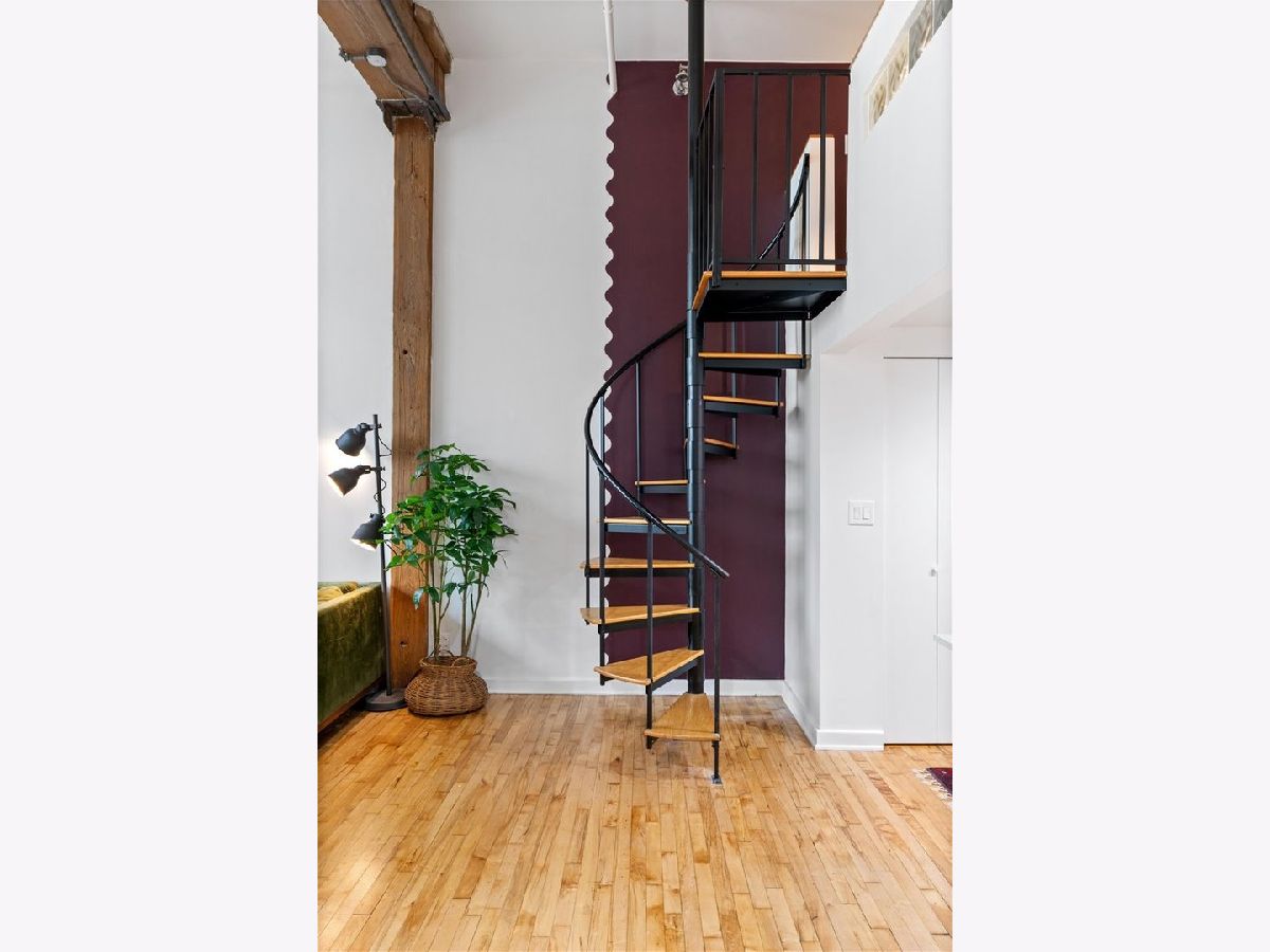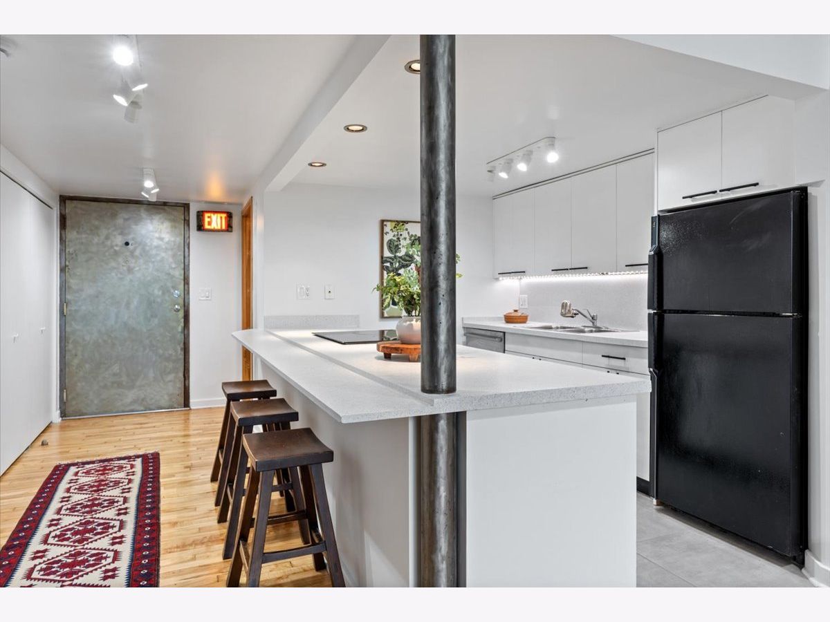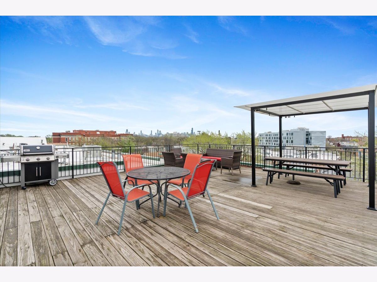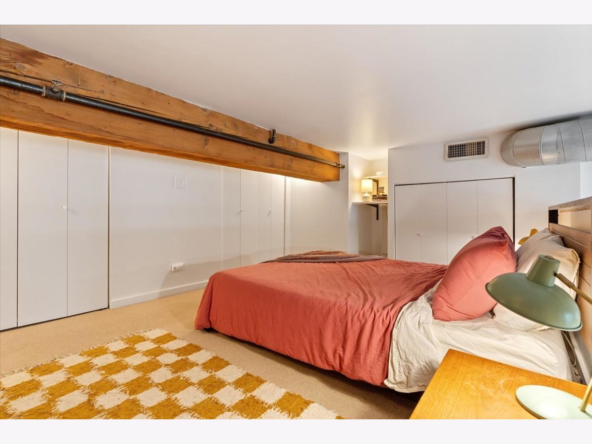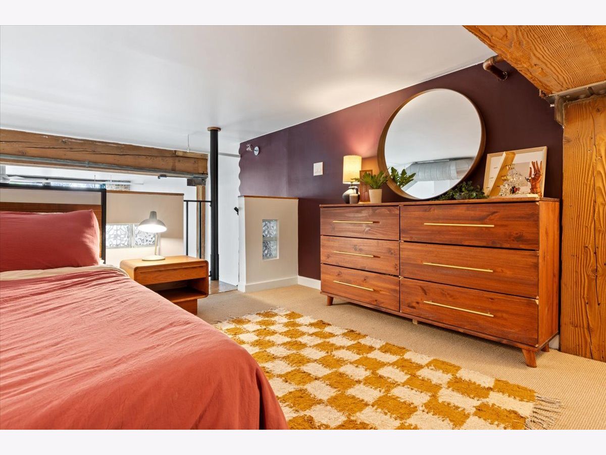 A rare timber loft in the heart of Logan Square, this home feels more like a hidden retreat than a city residence-an elevated treehouse within a converted 100+ year-old warehouse. Behind its industrial facade, the space opens with quiet drama: 15-foot ceilings, exposed brick, and hardwood floors anchored by a wood-burning fireplace and built in shelving. Oversized windows bring in natural light filtered through the surrounding treetops, softening the edges of a quiet, tree-lined street below. The open layout is flexible yet intentional - suited to slow mornings, focused work, or effortless entertaining. The kitchen features ample storage and a breakfast bar, and connects seamlessly to the main living space. A lofted bedroom overlooks it all, offering generous closet space and a sense of privacy while remaining visually connected to the architecture below. Freshly painted and equipped with in-unit laundry, central heat and air, and includes assigned, gated parking. Well-maintained building featuring secure entry, shared rooftop deck, and bike storage. Moments from the California Blue Line, Haas and Palmer Square Parks, and the best of Logan Square and Bucktown, it is both private and connected - a character-rich loft shaped by light, history, and a distinctly urban sense of ease.