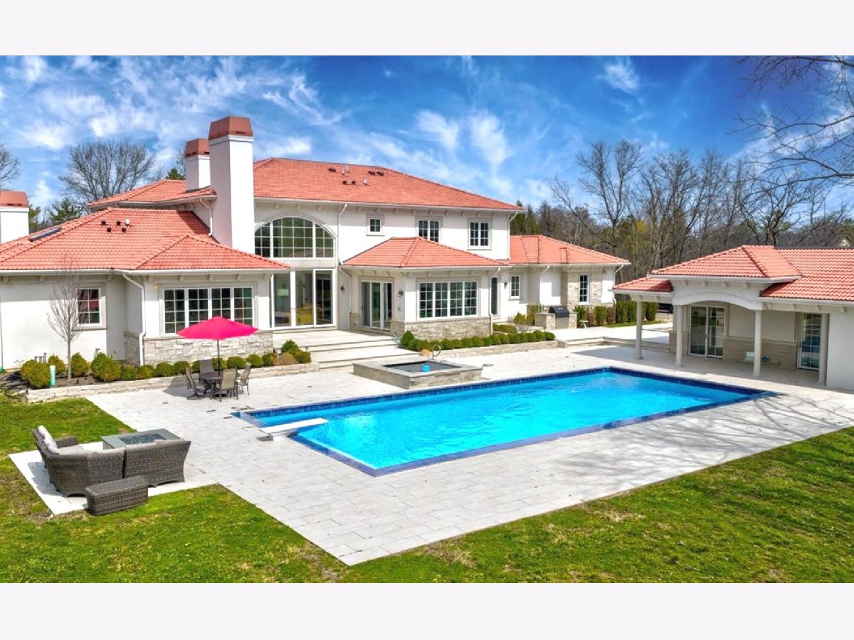 Sophisticated new custom built 5 bedroom, 6 full bath & 2 half bath home with guest house, patio, pool & spa located on over 3 acres. This limestone & stucco clad home w/composite terra cotta Spanish roof tiles boasts unsurpassed quality construction by Red Rock Homes & is accompanied w/high-end interior designer finishes by Ilene Chase. Some of the home's highlights include: soaring ceilings, open floor plan, wide plank hardwood floors, custom built-ins, wood-paneled elevator, professional grade appliances, upgraded electrical & Smart home integration system, guest house, 50'x25' outdoor pool & spa. 1st level features a grand foyer w/soaring ceiling, RH brushed brass & crystal tiered chandelier, marble floors & bridal staircase. A formal dining room that is the ideal entertaining space connects to a built-in butler's pantry w/Quartzite counters & antiqued mirror backsplash. Expansive sun-filled great room w/22' ceilings, stone surround wood-burning fireplace that is flanked by custom wood built-ins & French sliders leading to outdoor entertaining areas. The great room leads directly to a gourmet chef's kitchen featuring custom bespoke white cabinetry, Quartzite Iceberg counters & backsplash, professional ss appliances featuring 60" commercial Wolf range w/double ovens, Wolf microwave, Sub-Zero refrigerator/freezer & 2 Bosch dishwashers. A large center island w/Iceberg Quartzite waterfall countertop, prep sink, seating & tons of storage. Wet bar w/custom bespoke dark-stained wood & black cabinetry, Quartzite counter & backsplash, ss hammered bar sink, ice maker, beverage refrigerator plus full-size Sub-Zero designer wine refrigerator. Spacious eat-in area is perfect for large gatherings & opens to a bright 4-season sunroom w/vaulted wood-paneled ceiling & a wall of glass doors that make indoor/outdoor entertaining seamless. Formal powder room w/custom wall covering, vanity w/marble counter & herringbone oval sink & eclectic brass sconces. The private primary wing of the home features a handsome study w/wood & reeded glass French privacy doors, herringbone hardwood floors, wet bar, black marble carved fireplace mantle surround, grass cloth wallcovering & wood coffered ceiling w/smoke eater. The office leads to a secondary formal powder room w/custom wood vanity with double thick block marble countertop, custom wall covering and modern sconces. A luxurious primary suite w/tray ceiling, gas fireplace & sliders that lead to patio & pool areas. Other highlights include a morning bar, dressing area & custom walk-in closet w/ substantial built-ins. Spa-like luxurious primary bath featuring porcelain tile heated floors, double vanities w/quartz countertops, separate make-up vanity, oversized shower w/steam, rain showerhead, wall sprays and sleek touch-style control for Smart bath features, plus Kohler jetted soaking tub w/quartz decking & 2 commode closets, one with urinal. Mudroom w/custom built-ins & back staircase access, plus spacious laundry room is located off the 4 car heated garage w/EV chargers for each space. Completing the 1st level is a full pool bath & changing area w/custom built-in storage, located off the mudroom w/sliders leading directly to rear pool, spa & patio. The 2nd level boasts a catwalk w/magnificent views of the foyer & great room below. 3 additional generous-sized bedrooms all w/en-suite luxurious baths & custom walk-in closets. Plumbed for additional washer/dryer. Lower level features huge rec room, wet bar w/wine fridge, exercise room, dry-sauna, 5th bedroom w/full bath & tons of storage. The ideal outdoor PRIVATE entertaining space features a 9' deep in-ground pool & spa surrounded by expansive 5,000 sq. ft. porcelain tile patio decking, built-in fire-pit & outdoor BBQ grill w/stone surround & honed bluestone countertop. An 1,100 sq ft guest house provides guests privacy with sitting/rec room, full kitchen, bedroom w/en-suite bath, laundry & changing area. A rare opportunity to own this brand-new home!