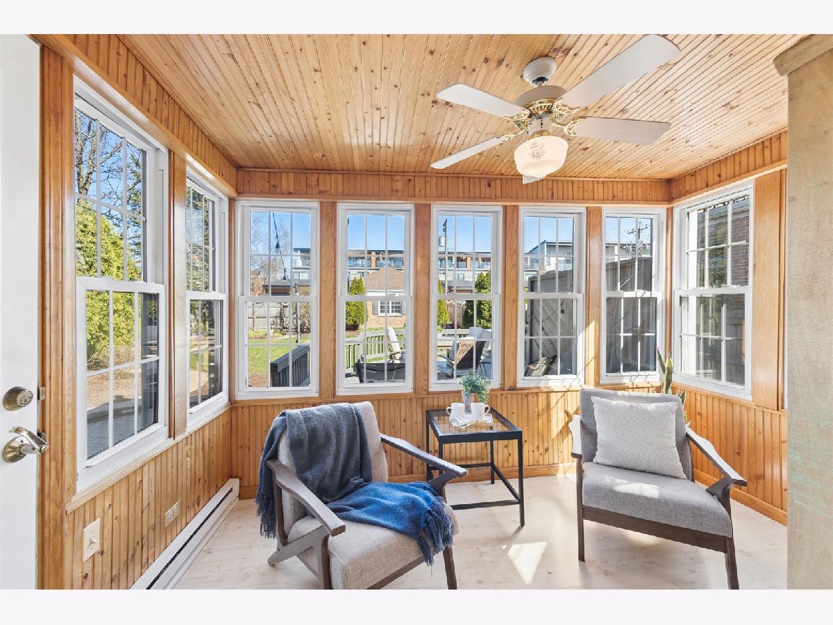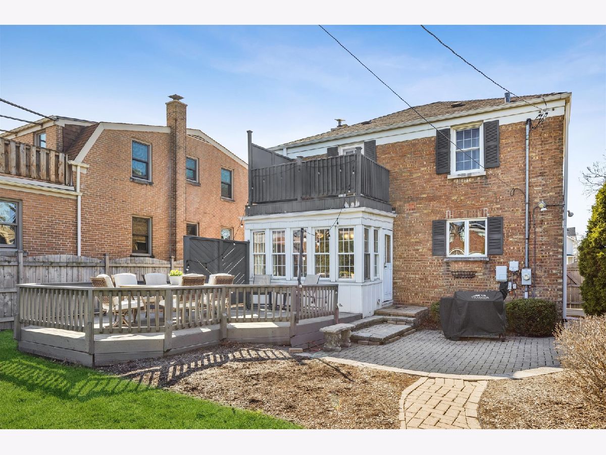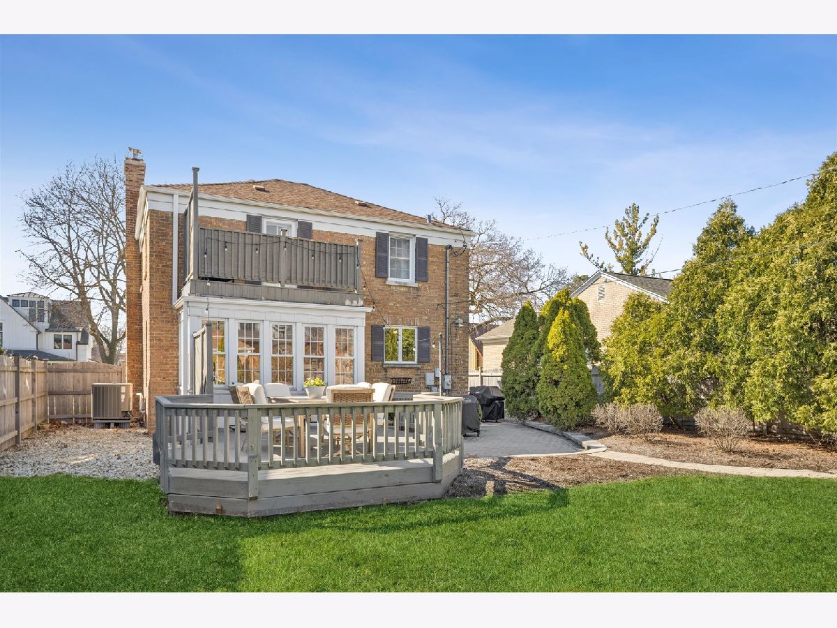 Located in the heart of vibrant Elmhurst, this in-town home offers unbeatable access to the train, shopping, and dining. This classic all-brick Georgian blends timeless charm with modern updates, featuring abundant natural sunlight and beautiful details throughout, including arched doorways and a built-in cabinets in the dining room. Hardwood floors run throughout the home (1st & 2nd floors), 3 bedrooms on the 2nd floor and each level includes a bathroom for added convenience. The oversized family room, complete with a wood-burning fireplace, flows seamlessly into the dining area-perfect for entertaining. A bright sunroom /mud room filled with natural light opens to the backyard and patio/deck, creating an inviting indoor-outdoor living experience.The kitchen is well-appointed with stainless steel appliances, granite countertops, and a premium Viking stove. Recent updates include a new HVAC system (2024) and a stunning, fully renovated second-floor bathroom with double sinks and ample storage. The first-floor and basement bathrooms have also been updated with stylish vanities and toilets. Additional improvements by the current owner include a newer wood fence, updated gutters roof 2011, and tuck-pointed chimney, along with newer hot water heater, sump pump, ejector pump, and battery backup system. Newer sewer line -from the house to the sanitary sewer line. Mostly updated windows. The front steps, walkway, and landscaping have also been refreshed. Enjoy a private backyard with a deck and paver patio-ideal for relaxing or entertaining. A detached 2+ car brick garage off the alley completes this exceptional property. Hawthorne Grade School.
