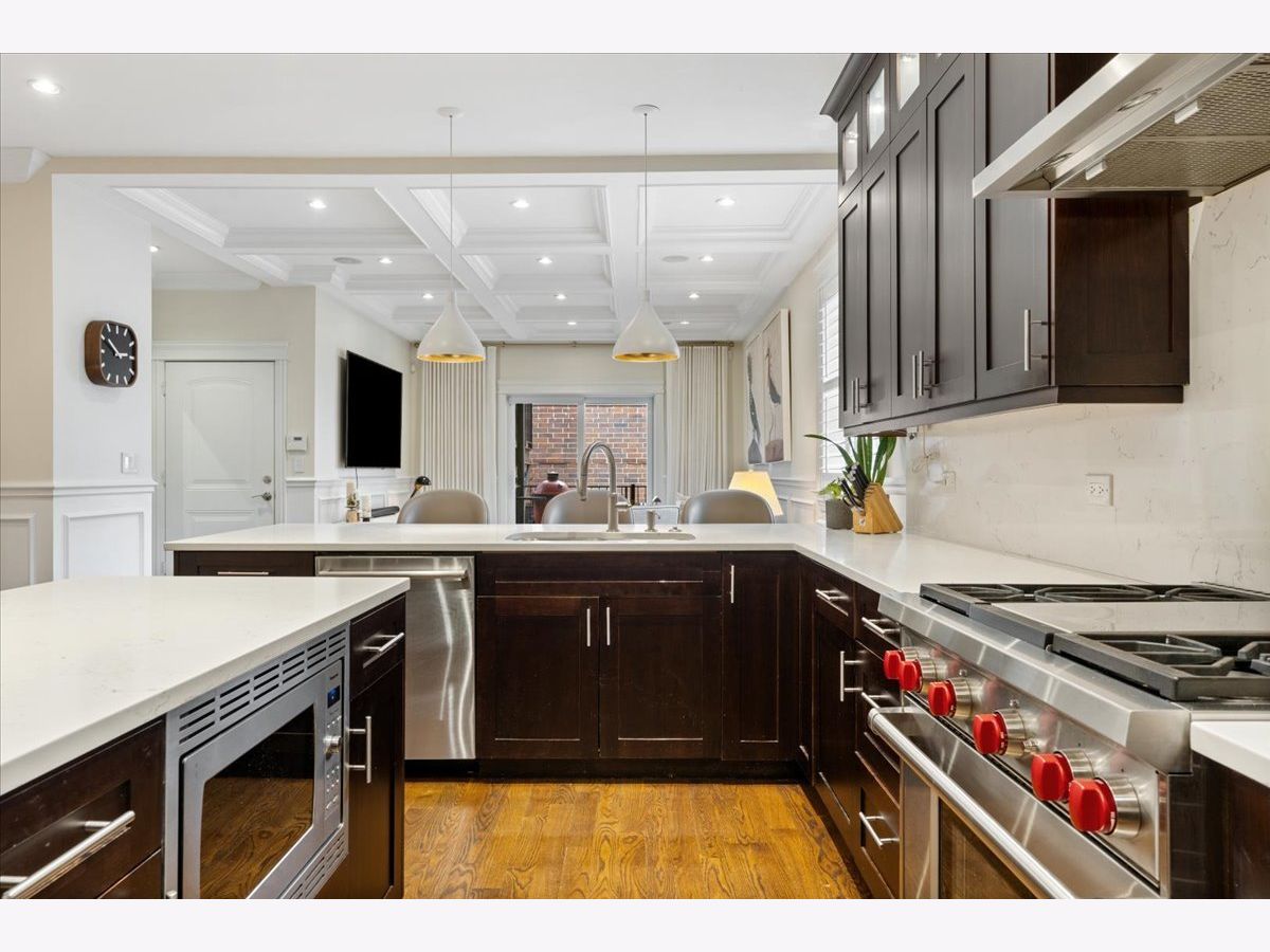 Open Houses for 4/25 and 4/26 have been cancelled. Set on an oversized 25' x 146' lot, experience an extraordinary level of design and livability in this impeccably curated 4-bedroom, 3.5-bathroom duplex down, offering approximately 3,000 square feet on one of Lincoln Park's most coveted tree-lined streets. A gracious formal living room sets the tone upon entry, anchored by a striking gas fireplace and framed by intricate millwork and designer lighting throughout. Just beyond, sliding glass doors open seamlessly to a covered terrace, creating a refined indoor-outdoor connection ideal for both intimate evenings and elevated entertaining. The heart of the home is a true chef's kitchen, masterfully appointed with top-of-the-line Wolf and Sub-Zero appliances, sleek quartz countertops, and bespoke custom cabinetry. An oversized island with additional storage and an expansive breakfast bar provide both function and statement, while a walk-in pantry ensures effortless organization. Adjacent, a thoughtfully designed dining nook-enhanced by a custom-built bench with hidden storage-adds both charm and practicality. The kitchen flows effortlessly into a warm, inviting family room, with direct access to a covered deck and an expansive private garage rooftop-- an exceptional outdoor offering rarely found at this level. The primary suite is a true sanctuary, featuring an oversized walk-in closet and a spa-caliber en-suite bath adorned with marble finishes, dual vanities, a walk-in steam shower, and a separate soaking tub designed for ultimate relaxation. The second bedroom offers its own en-suite bath and generous closet space, ideal for guests or extended family. Two additional bedrooms provide exceptional flexibility for families, guest accommodations, a home office, or fitness space, complemented by a beautifully appointed full bathroom. Additional highlights include a recently renovated laundry room, brand new tankless water heater, sophisticated designer wallpaper accents, abundant storage throughout, and one garage parking space. Perfectly positioned just steps from the very best of Lincoln Park's premier shopping, dining, entertainment, top-rated schools, parks, and convenient transportation, this is a rare offering that flawlessly balances timeless elegance with modern luxury.