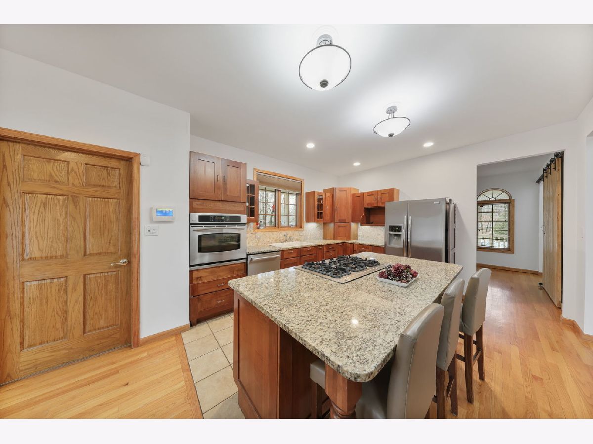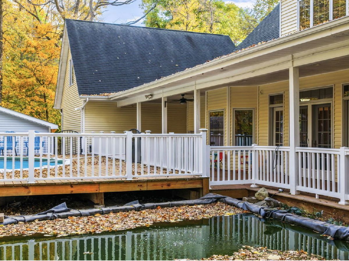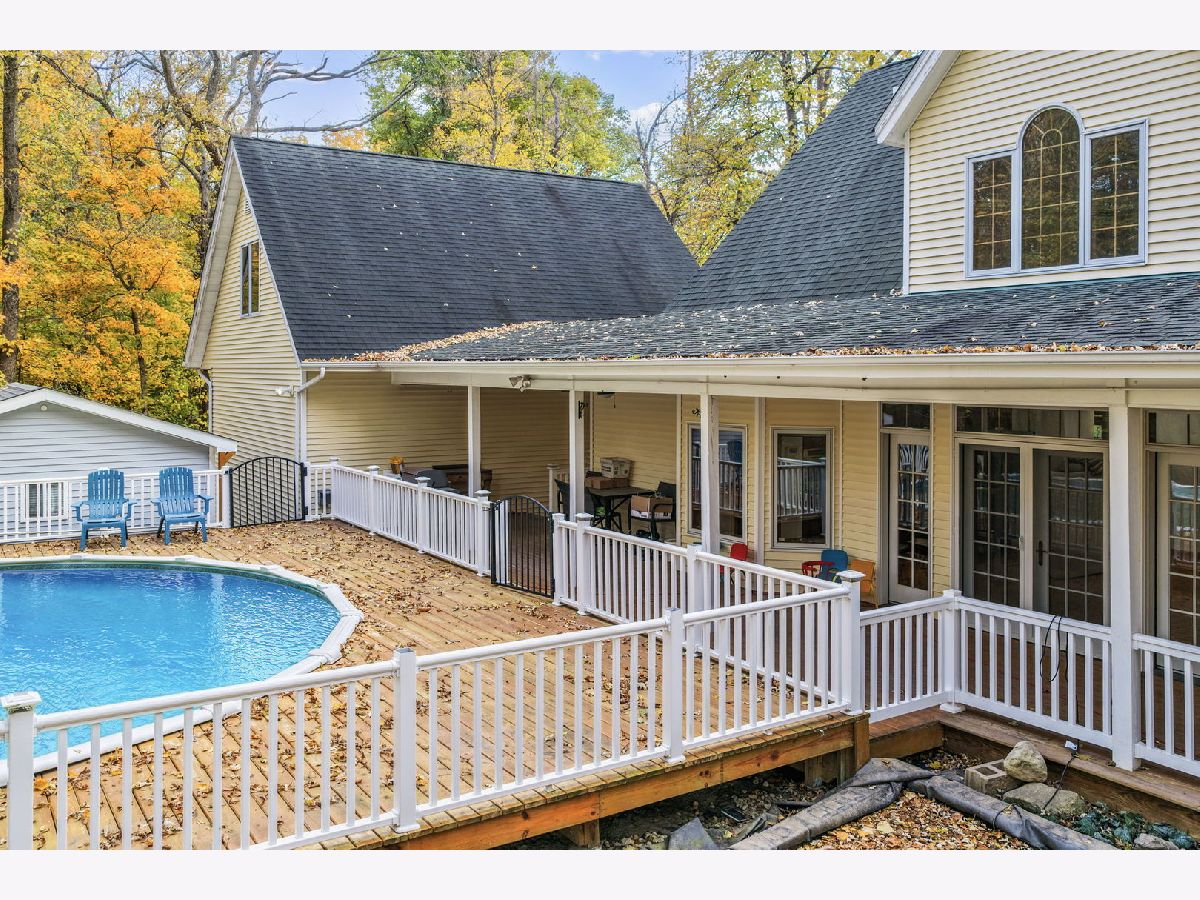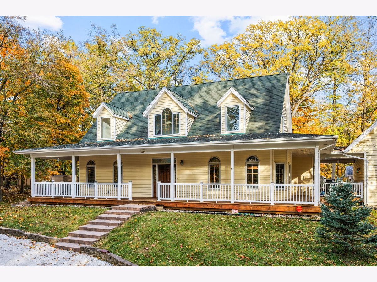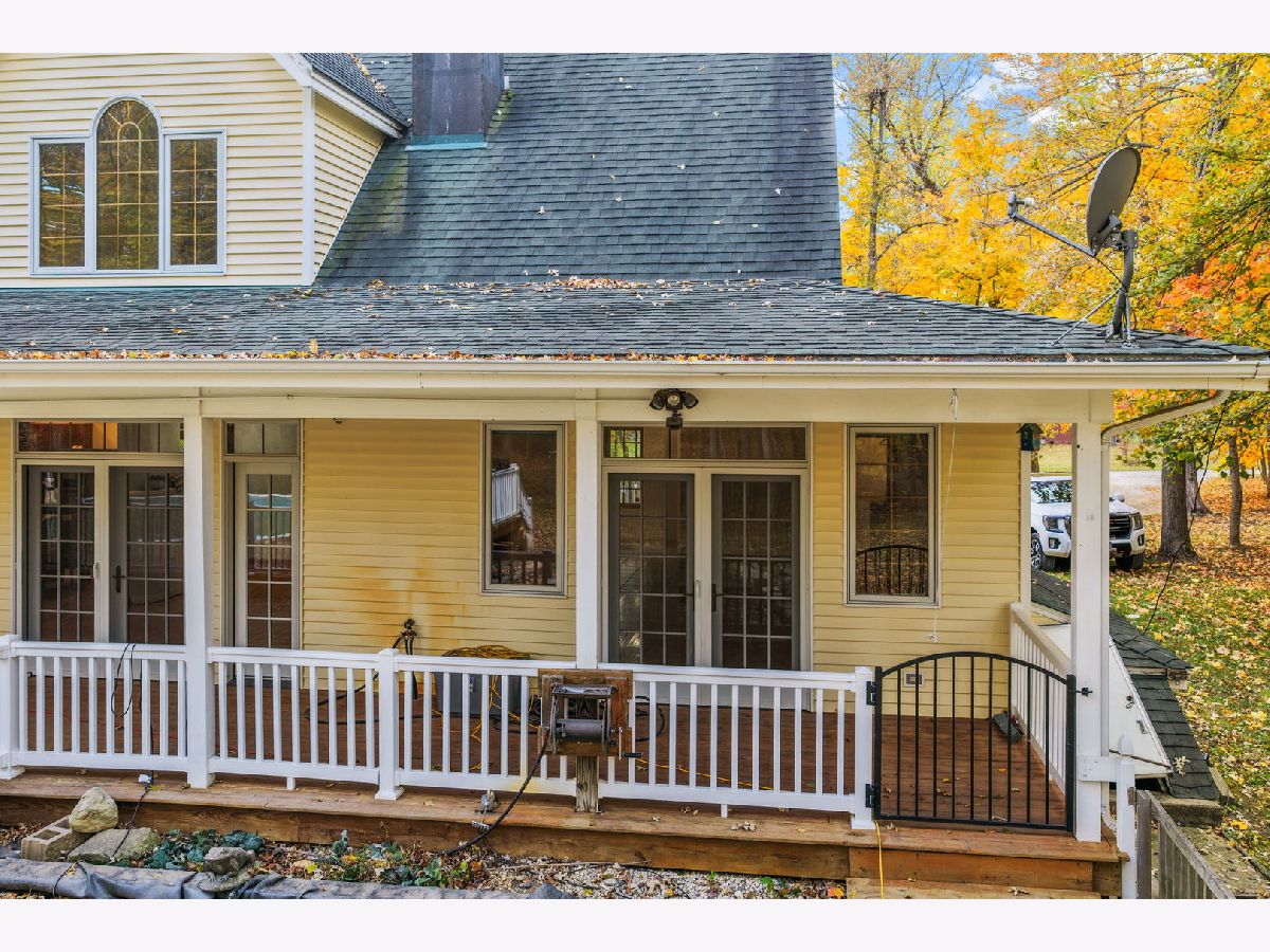 From the moment you arrive, this home welcomes you with warmth and timeless charm. A spacious wraparound front porch stretches across the entire front of the house-perfect for slow mornings with coffee, relaxing afternoons in the shade, or gathering with friends on cool evenings. The inviting front entrance sits at the center of the home, framed by graceful windows and classic white railings that give the exterior a bright, welcoming feel. Above, charming dormer windows add character and allow natural light to fill the upper level, creating a home that feels both cozy and full of life. Surrounded by mature trees and beautiful seasonal color, the setting offers a peaceful retreat where you can truly unwind while still enjoying the comforts of home. Imagine rocking chairs on the porch, watching the leaves change in the fall, and greeting neighbors as they pass by. This is more than just a house-it's a place that instantly feels like home the moment you pull into the driveway. This home has three comfortable bedrooms, with a main level Master suite. A full 9' basement has 2 access points from the house and outside, and is already partially finished and ready for your design ideas. There's a full bathroom completely roughed-in ready to be finished. The warm and inviting kitchen combines classic style with modern convenience, making it a standout feature of the home. Rich, honey-toned wood cabinetry provides abundant storage while adding timeless character throughout the space. A spacious center island with a light countertop offers plenty of room for meal preparation and includes a built-in cooktop along with seating for casual dining or gathering with guests. The kitchen is equipped with sleek stainless steel appliances, including a built-in oven, dishwasher, and a large refrigerator. A window above the sink brings in natural light, brightening the workspace and enhancing the welcoming atmosphere. Designed with both everyday living and entertaining in mind, the open layout flows seamlessly into the surrounding living areas. Stylish pendant lighting and recessed lights illuminate the room, while the combination of warm cabinetry and light surfaces creates a bright, comfortable space perfect for cooking, hosting, and enjoying time at home. The property is situated on a spacious two-acre lot and includes several desirable amenities and a heated 28' above ground pool. There is a 2-1/2 car garage, connected to the main house by a breezeway, with a second floor heated bonus room, offering great opportunities as a man cave or office and storage. So much to see at this remarkable property. Also another detached garage for even more space.
