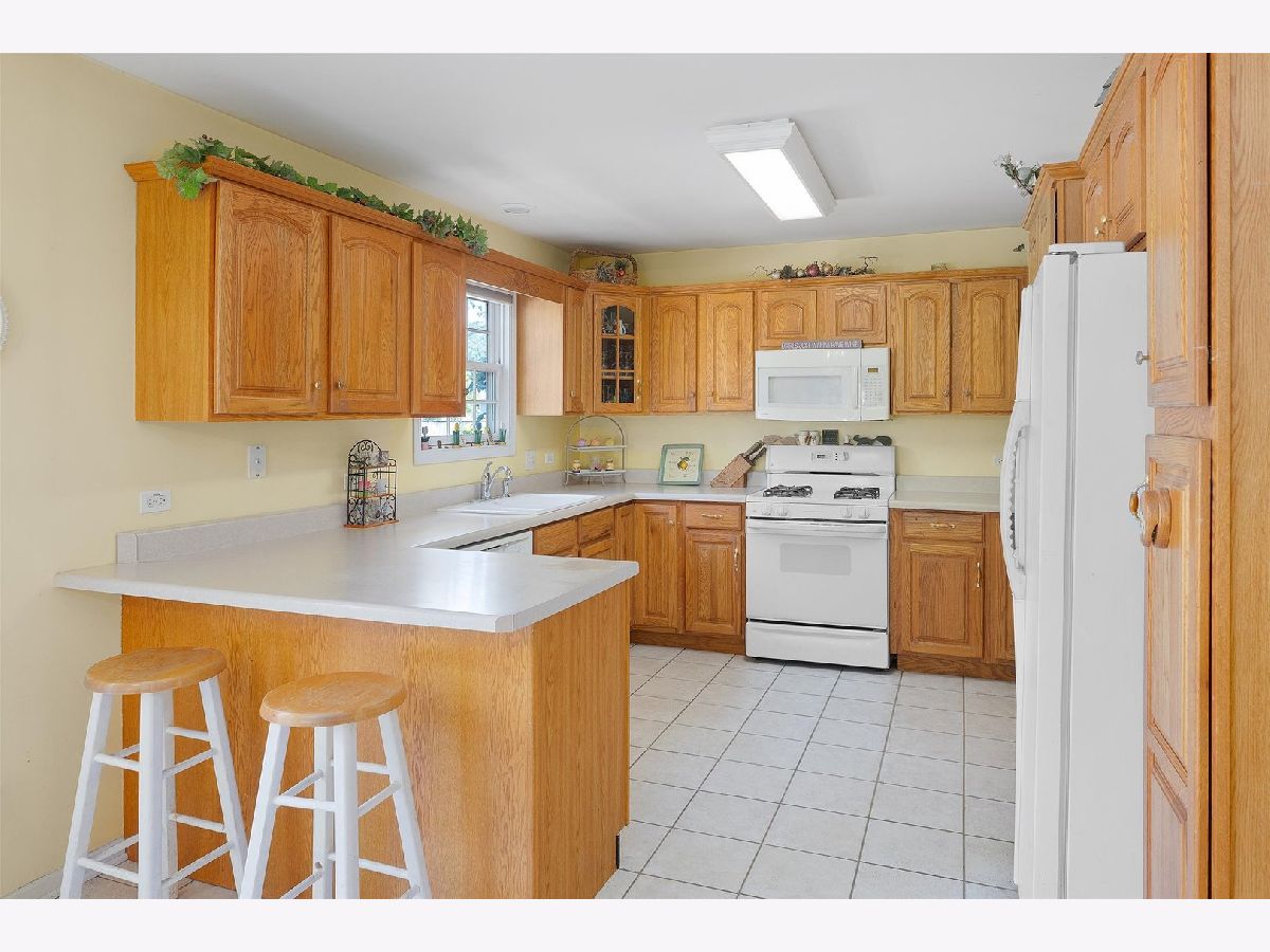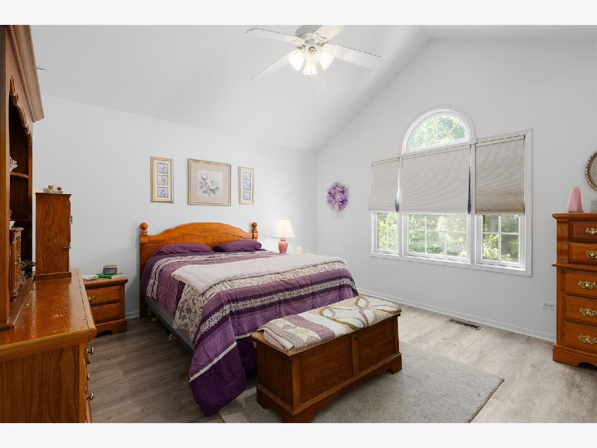 Nestled in a quiet cul-de-sac within a highly sought-after school district, this spacious 4-bedroom, 2.5-bathroom home offers both comfort and charm. Step onto the welcoming front porch and into the bright living room, where natural light pours in, highlighting the brand-new vinyl plank flooring and cozy gas fireplace. The open-concept dining area flows seamlessly into the kitchen, featuring timeless oak cabinets, stylish tile floors, and all included appliances for convenience. Upstairs, you'll find fresh flooring throughout, with plush carpet in two bedrooms and sleek vinyl plank flooring in both the master and the oversized fourth bedroom-an ideal bonus space with endless possibilities. The master retreat boasts vaulted ceilings, a generous closet, and a private en-suite bath, while a full guest bath serves the remaining rooms. A full basement awaits your personal touch, providing ample storage and potential for added living space. Situated on a large corner lot, the home enjoys a wonderful yard perfect for outdoor activities. With fresh paint in many rooms, and a roof just one year old, this home is ready and waiting for its new owners. Make it yours today!
