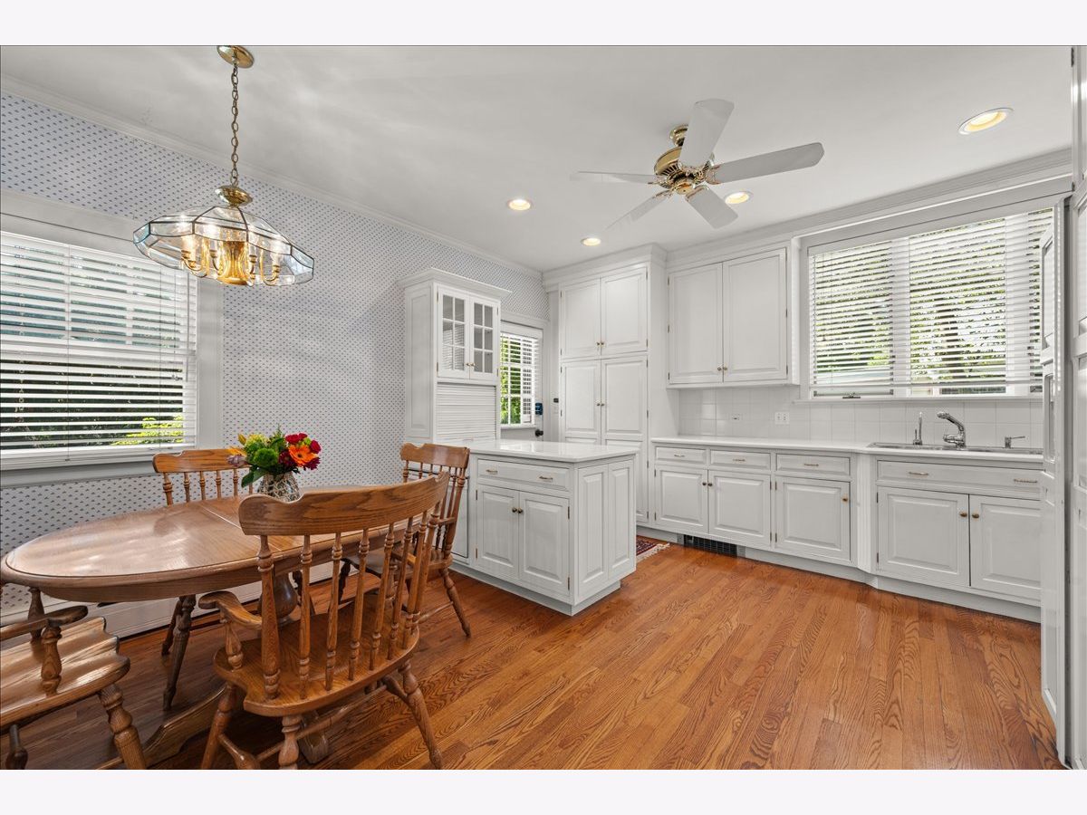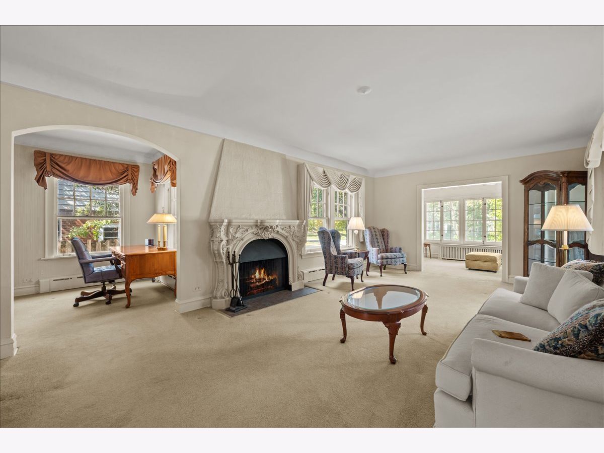 Located on Golf's most desirable street, this elegant all brick 1927 home, offers a rare opportunity to own a classic residence that showcases timeless architecture with great bones and endless potential. This beloved home has been cherished by the same family for 60 years. With its distinctive architecture, original details, and solid layout, this home is ready for the next owner's vision and updates. The main level features an expansive living room with coved ceilings, arched doorways and a stunning wood burning fireplace. Step into the adjacent family room/sun room where natural light pours in through the floor to ceiling French windows creating a bright and cheerful atmosphere. A formal dining room offers flexible space that could be reimagined to suit modern day living. The cook's kitchen is bathed in natural light from the large windows featuring bright white finishes with custom cabinetry and a spacious layout to enjoy casual everyday meals at the eat in area table space with access to the back porch which overlooks the beautiful yard. A first floor office with built in book shelves and a half bath complete the main space. Upstairs, there are three expansive bedrooms as well as custom hallway built ins for additional storage. The primary suite has an adjacent sitting room which could also function as a nursery. The second bedroom is currently used as a casual space and the third bedroom is flooded with light from the sliding glass door that goes out to a balcony offering beautiful tree top views. A full bath rounds out the second level. The third floor is the perfect teen retreat with two additional bedrooms and a full bath. The finished lower level provides a versatile rec room with ping pong/pool table, workshop, laundry room and loads of additional storage. The property includes a detached 2 car garage with brick paver driveway along with an irrigation system, New furnace (2023), New hot water heater (2024) and New A/C (2025). Hardwood floors are underneath the carpet on both the first and second level. Fantastic opportunity to live in this community, located just steps from the Metra station, post office, park, tennis courts, and nearby grocery store (Mariano's). A true architectural gem not to be missed!