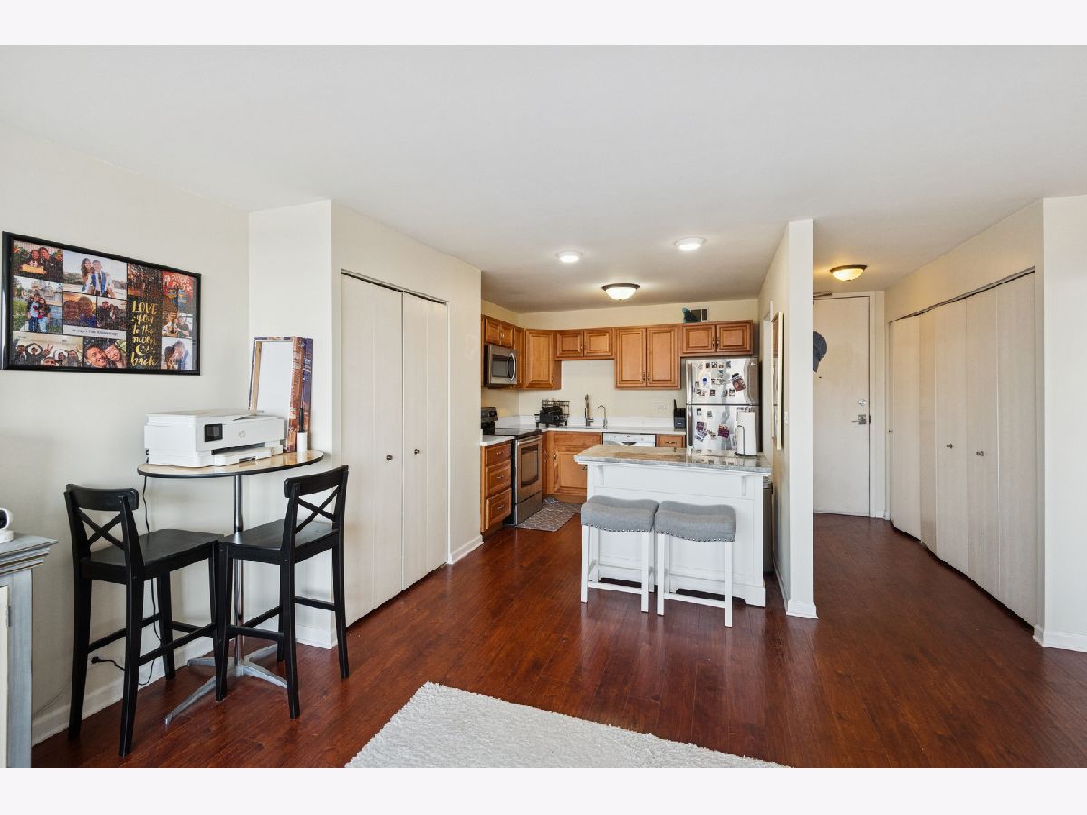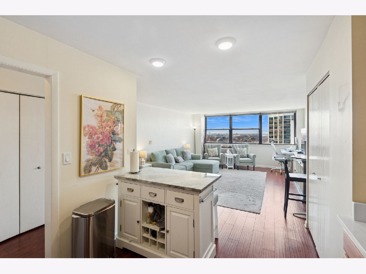 Live in one of Lincoln Parks most coveted areas, just steps away from North Pond and the lakefront. This spacious one-bedroom condo features a generously sized living room with real hardwood flooring and a well-maintained kitchen with stainless steel appliances. Expansive west-facing views provide abundant natural light and beautiful sunsets as the day unwinds.There is ample storage with three closets and a pantry. Additional storage cages are available through registration with management. Get the keys just in time to enjoy the rooftop pool & sundeck all summer long, complete with lounge furniture, grills, WiFi access and stunning views of the city and lake. The building also features a fitness center, on-site management, and doorstaff overnight & on weekends. There's even a dedicated dog washing station, making this a very pet friendly building (no weight or breed restrictions). Located around the corner from Clark St you will never run out of restaurants, bars or shops to visit. Trader Joe's, Mariano's, Target and Walgreens are all within a few minutes walk.