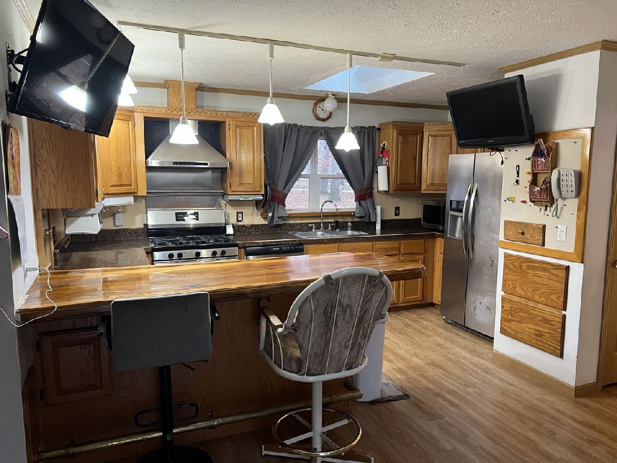 Great Opportunity for you to enjoy the peace and quiet on this 14 +/- wooded acres in beautiful serene country setting. Potential horse property, hunting property, or vacation get away or take off down the trails and ride your motorcycles or ATV! Three bedroom 2 bath ranch home with country views from all windows. Kitchen with breakfast bar (made from a tree on the land), lots of cabinets, most appliances and skylight. Main floor laundry with Separate dining room (skylight) and family room (freshly painted). Living room (skylight) off of the kitchen with patio door leading to your new sanctuary. Master bedroom on one side of home with walk in closet, bay window overlooking the pond. Master bath has walk in/roll in shower, bidet toilet, large counter with sink and grab bars throughout. Two other bedrooms on the opposite side of the home and another full bath. All ceiling fans are 2 years old. Reverse Osmosis System. Two car garage w/handicap lift. Outbuildings, biggest one has electric and propane heat. Loads of trees. Generac generator. Propane, NOT natural gas. Full unfinished basement with poured walls. Seller willing to look at all reasonable offers. Being sold as-is.