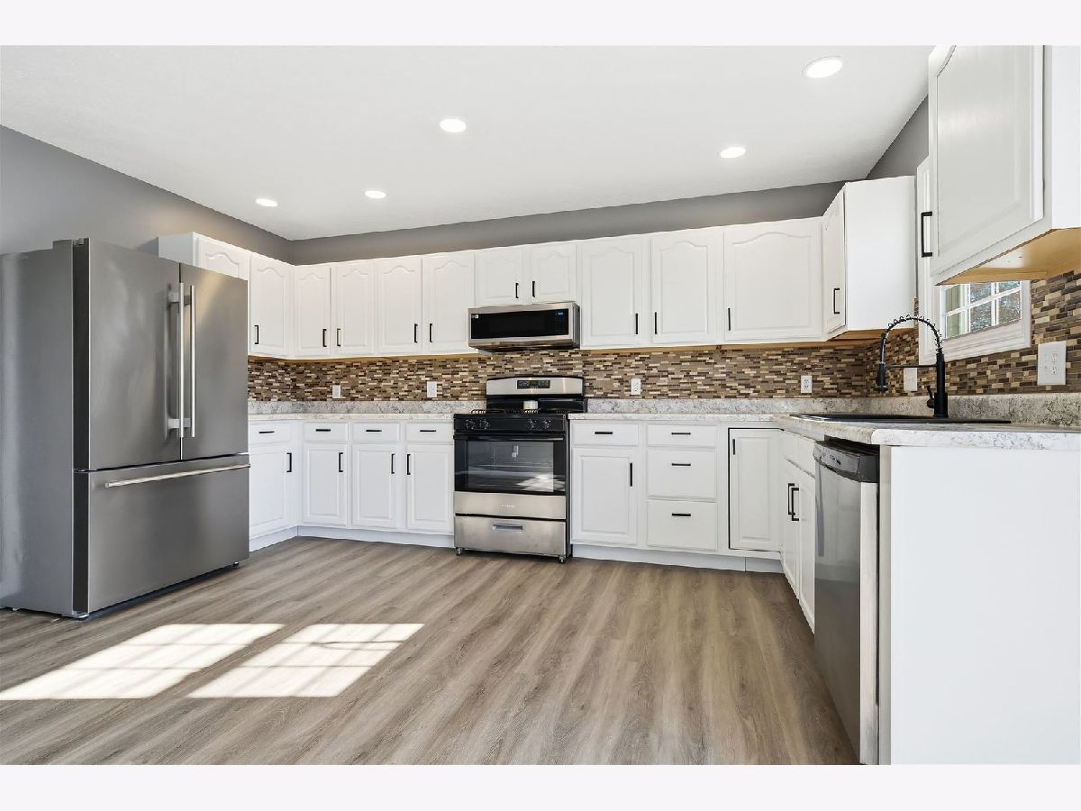 Welcome to 2702 Westbrook-a beautifully remodeled 4-bedroom, 3.5-bath townhouse that is truly move-in ready. Every corner of this home has been thoughtfully updated with quality finishes and modern conveniences. Step inside to find brand-new flooring throughout, fresh paint, and all-new light fixtures, recessed lighting, doors, and trim. The home also features a new hot water heater, washer, dryer, stove, microwave, and updated bathroom vanities, as well as a new kitchen sink and countertops. Even the banister, fireplace, kitchen cabinets, and laundry cabinetry have been freshly painted for a clean, cohesive look. Additional upgrades include new windows, a new concrete driveway and walkway, and a new battery-backup sump pump for peace of mind. Through the front door, you're welcomed into a spacious living room boasting vaulted/cathedral ceilings and a cozy gas fireplace. The adjoining dine-in kitchen offers bright functionality with newer appliances including a refrigerator, oven, vent hood, dishwasher, garbage disposal, and microwave. Just beyond, the backyard awaits with a deck perfect for outdoor entertaining. This home features a main-floor primary suite complete with a walk-in closet and an en-suite bath offering a jetted tub and separate shower. Also on the main level are a convenient half bath and the laundry room, fully equipped with a washer and dryer. Upstairs, you'll find additional generously sized bedrooms and bathrooms-perfect for family, guests, or office space. As part of this community, you'll enjoy access to the newly renovated clubhouse, featuring an indoor heated pool, party room with pool table, and fitness facility. The association also covers mowing and all exterior maintenance, including siding, windows, and roof-giving you a low-maintenance lifestyle with high-quality amenities.