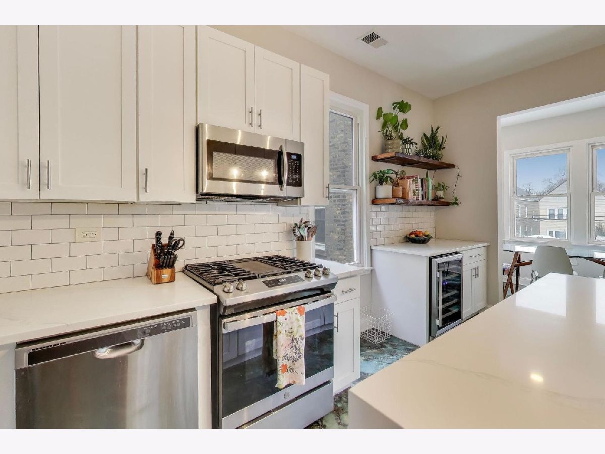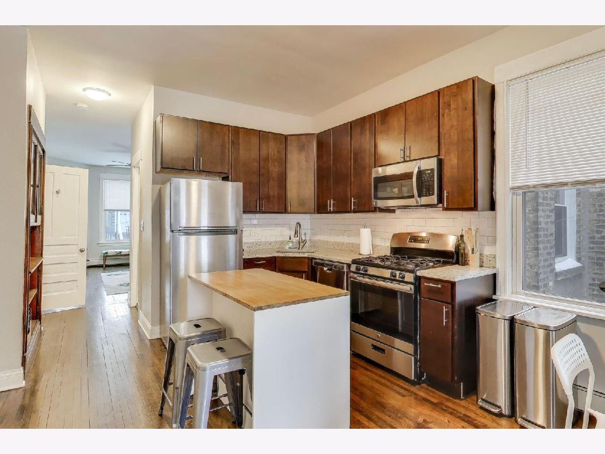 Solid, beautifully maintained Logan Square 2-flat along the historic Wrightwood corridor offering the perfect blend of character, updates, and flexibility for both owner-occupants and investors. The first-floor unit features a bright and spacious 2 bed / 1 bath layout with tall ceilings, walnut-stained hardwood floors, oversized windows, and great natural light throughout. The updated kitchen includes stainless steel appliances, quartz countertops, modern cabinetry, and refreshed finishes. The second-floor unit lives like a single-family home as a duplex-up, offering 3 bedrooms, 2 full baths, and a bonus den/office space. The upper level provides excellent separation of space and flexibility for work-from-home, guest rooms, or additional living areas, making it ideal for today's lifestyle. Both units offer thoughtful updates, modern lighting, and ample closet and storage space. Major improvements include newer roof on both the building and garage (2022), updated siding, two newer hot water heaters, central air for the top unit, boiler heat with mini-split A/C for the first floor, and well-maintained mechanicals throughout. The basement features newer laundry (2022), tons of storage, and flexible space perfect for a gym, workshop, or hobby area. A fully fenced backyard and patio create great outdoor entertaining space, complemented by professional landscaping and a 2-car garage. Located just steps from the Blue Line, parks, coffee shops, and the vibrant Milwaukee Avenue dining and shopping corridor, this is a true move-in ready, income-producing property with long-term upside in one of Logan Square's most sought-after pockets.