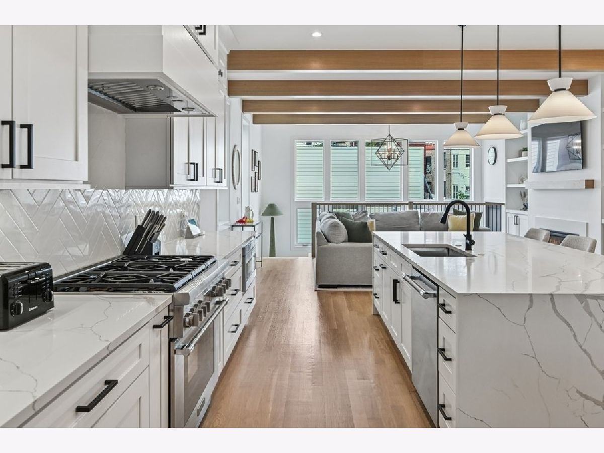 Newly re-constructed in 2023, this luxury home situated in the heart of vibrant Logan Square is a 5-minute walk to the Blue Line station and all of the great shopping, restaurants and nightlife that this sought-after neighborhood has to offer. The property is located on a community-focused and welcoming block of N Albany Ave and would be perfect for families and couples alike."Experience Elevated Living in the Heart of Logan Square Welcome to 2708 N Albany-a beautifully designed, expansive single-family home offering over 4,200 square feet of luxurious living space in one of Chicago's most vibrant neighborhoods. With 6 bedrooms and 4.1 bathrooms, this home is ideal for growing families, multi-generational living, or anyone who loves to entertain in style. Step inside to soaring 10-foot ceilings, 8-foot solid-core doors, and white oak flooring that runs throughout the main and upper levels, creating a warm and refined atmosphere. At the heart of the home is a chef's dream kitchen featuring WiFi-enabled Thermador professional-grade appliances, an oversized 9.5-foot island with bar seating, quartz countertops, crisp white shaker cabinetry, a walk-in pantry, and a spacious eat-in dining area. The sun-filled family room seamlessly connects to the kitchen and is highlighted by exposed wood ceiling beams and a sleek, recessed gas fireplace for cozy evenings at home. A 12-foot rear addition enhances the upstairs footprint, allowing for four generous bedrooms-including a show-stopping primary suite with a spa-quality bathroom. Indulge in heated floors, dual vanities with quartz countertops, a water closet, freestanding soaking tub, and a luxurious steam shower with rain head, built-in bench, and glass enclosure. The fully finished lower level includes two additional bedrooms, a full bath, a large recreation room with a mini wet bar, a utility room, and additional storage-including hookups for a second laundry area. The floor on that level is already plumbed to be heated. Out back, enjoy a private, fenced yard with a brick paver patio perfect for grilling and relaxing. A 2.5-car garage is topped with a composite rooftop deck, offering even more outdoor space for entertaining or unwinding. This home combines timeless design with modern convenience-every detail thoughtfully considered. Come see it for yourself and fall in love. Welcome home to 2708 N Albany.