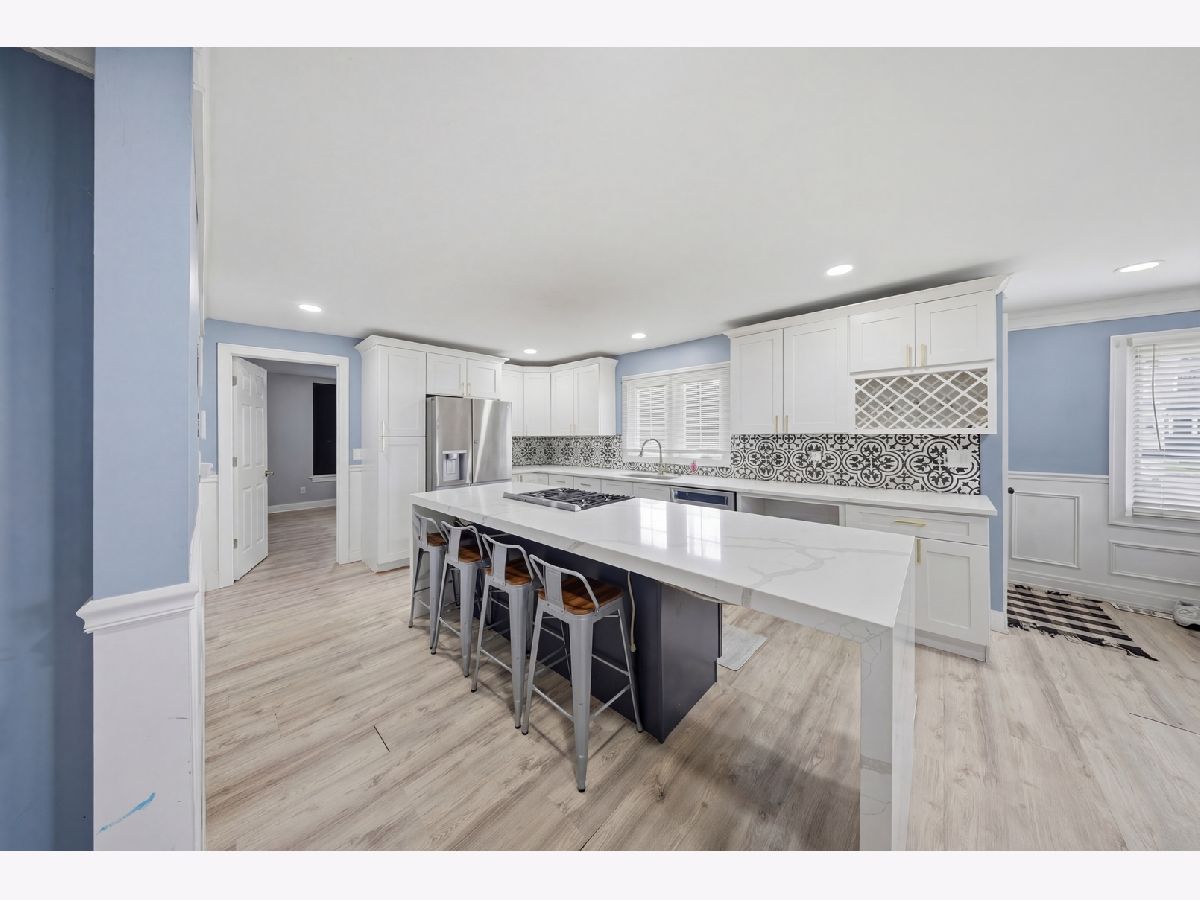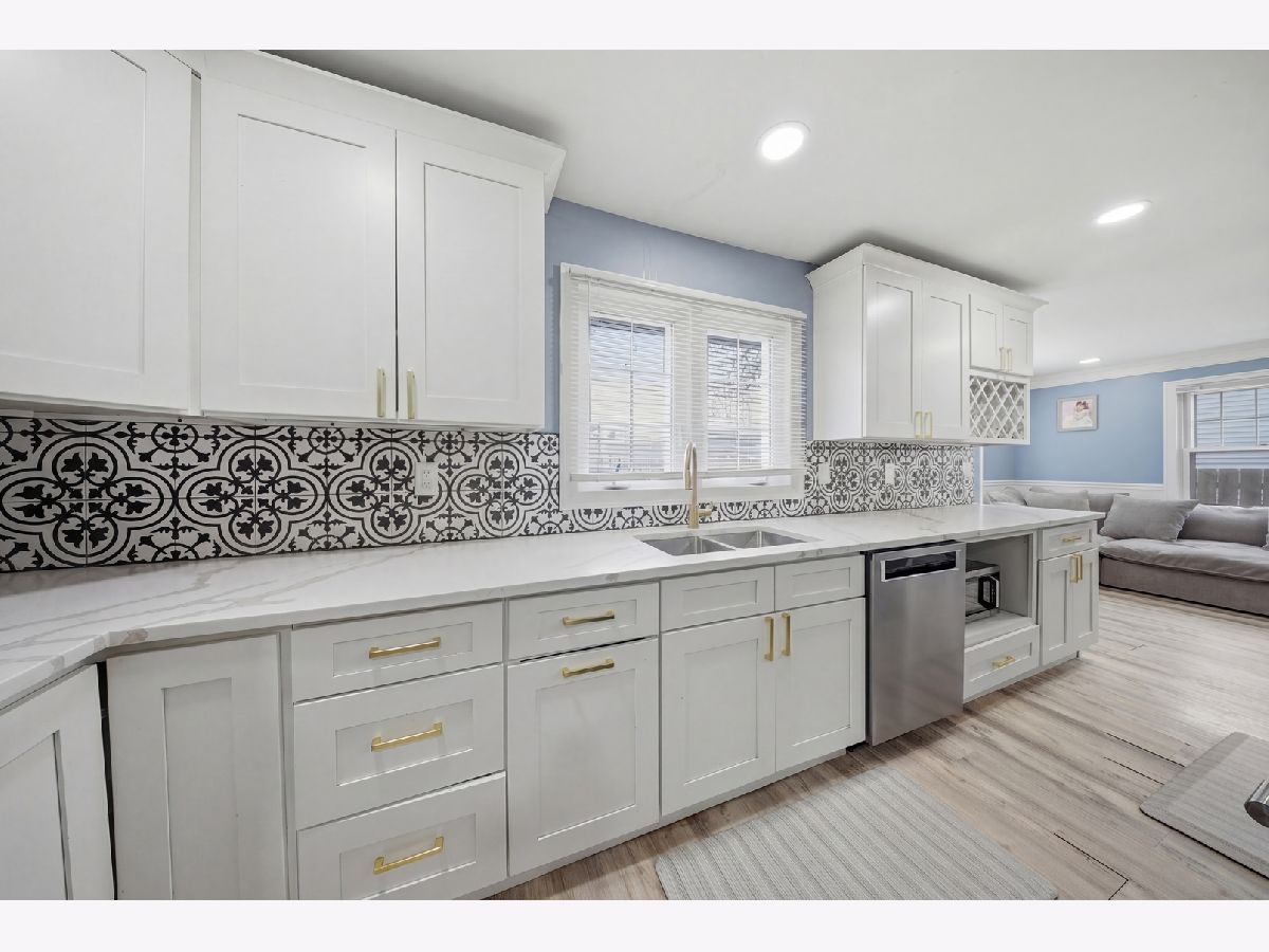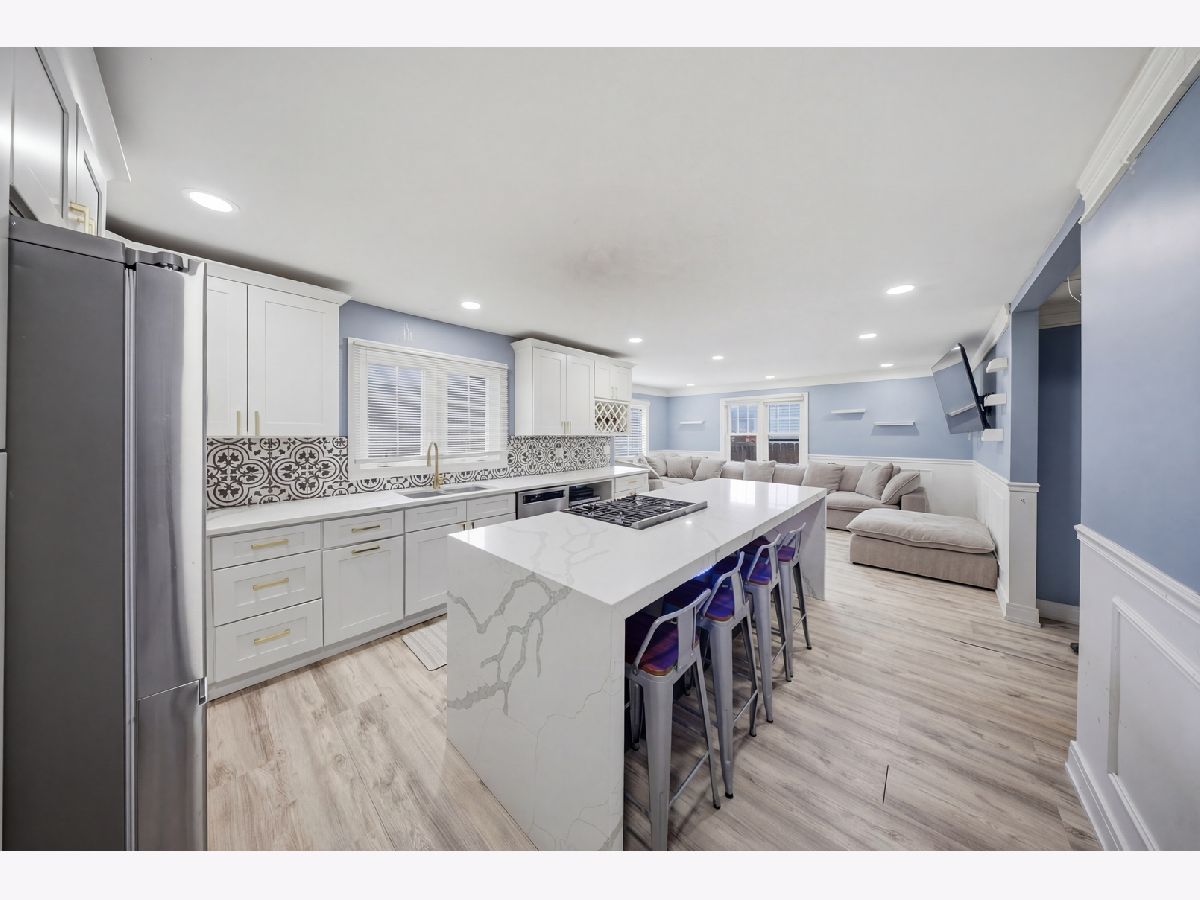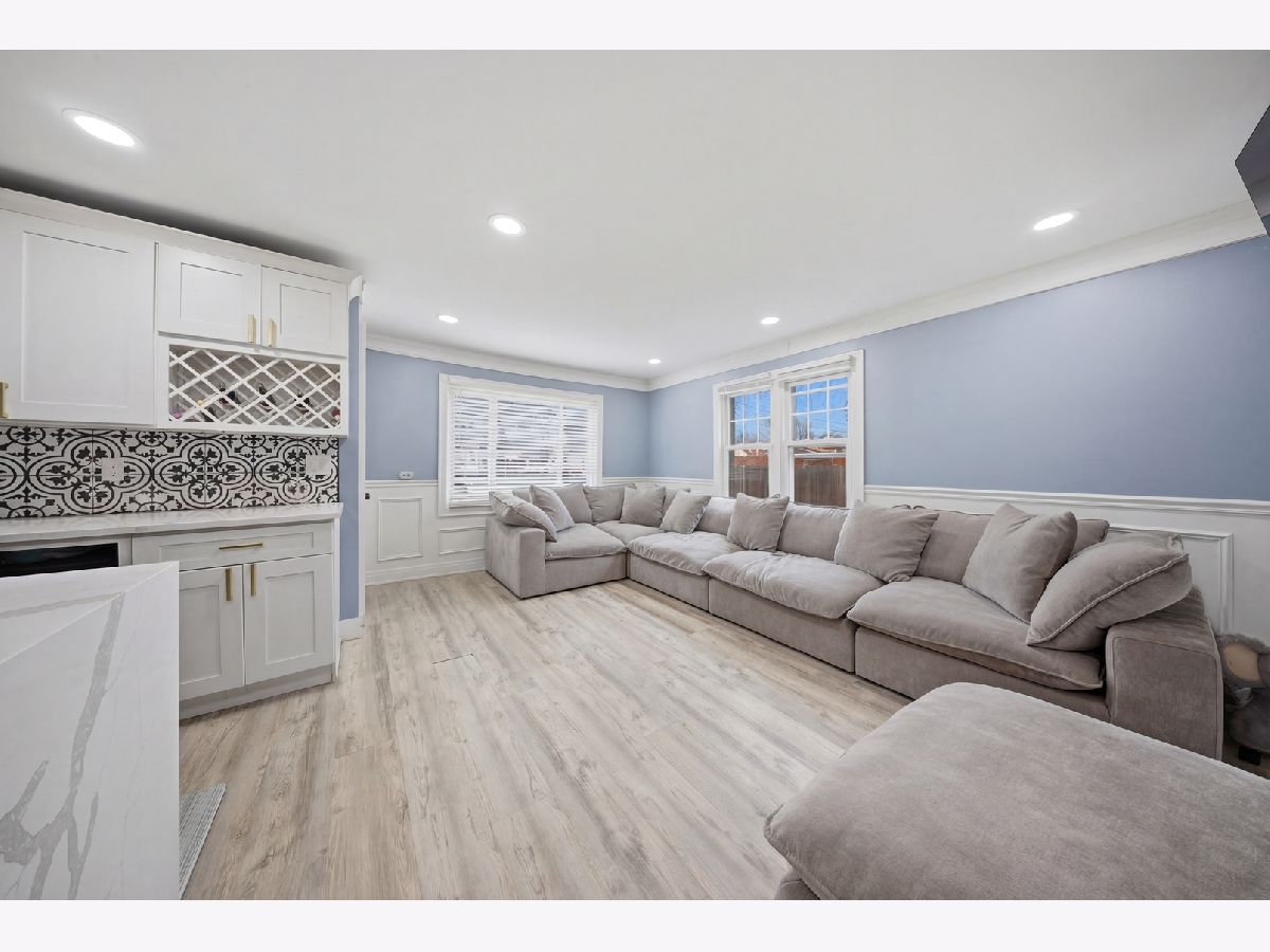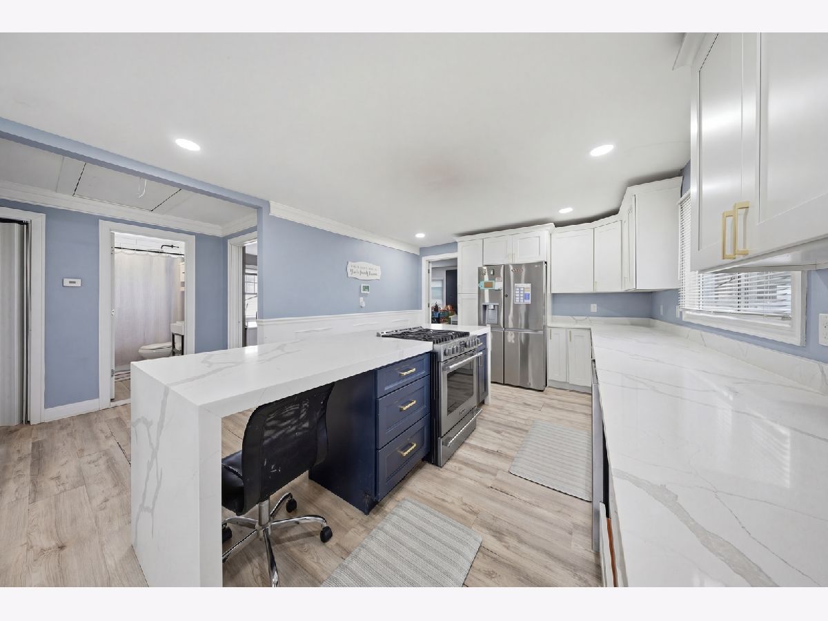 PURSUANT TO SHORT SALE APPROVAL- Completely renovated in 2022; 2-bedroom, 1-bath ranch located in unincorporated Melrose Park-designed with modern living in mind. Open-concept showcases a stunning, fully updated kitchen. Stainless steel appliances, sleek quartz countertops, a spacious waterfall island with breakfast bar seating, built-in range, gold accents, under-cabinet lighting, and a custom wine rack-perfect for both everyday living and entertaining. Wood laminate flooring, recessed lighting, crown molding, and wainscoting details that add a refined touch. The attached one-car garage includes brand-new epoxy flooring and a dedicated laundry area. Step outside to a generously sized yard, ideal for relaxing or hosting during the warmer months.