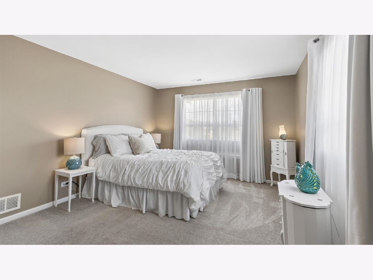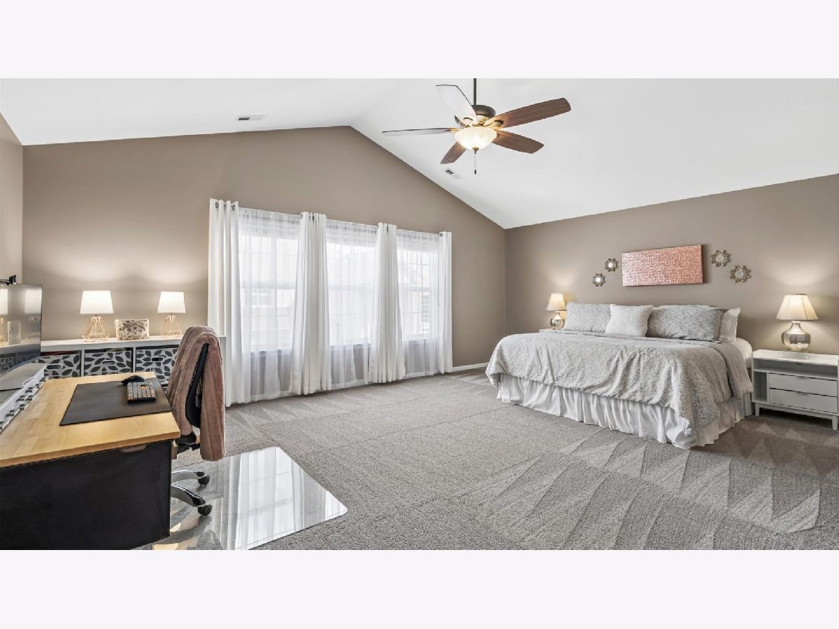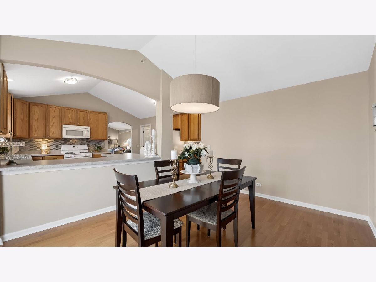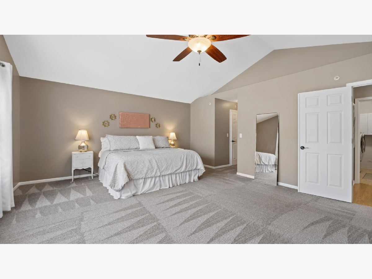 Spacious 2nd floor ranch featuring vaulted ceilings and an open, light-filled main living area with generously sized rooms throughout. The living and dining spaces flow seamlessly into the kitchen, creating an ideal layout for both everyday living and entertaining. The kitchen offers extensive cabinetry with slide-out shelves and soft-close doors, abundant counter space, pantry, and a dedicated dine-in area. Sliding glass doors lead to a private balcony/deck, the perfect spot to enjoy morning coffee, fresh air and relaxing outdoor moments. The primary suite features vaulted ceilings, double door entry, and a large ensuite bath with a separate shower and soaking tub, along with an impressive double walk-in closets. The second bedroom offers a full closet and convenient access to the second full bathroom. Enjoy views of the tranquil pond ("Lake Emma") from both of the bedrooms and the living room. Additional highlights include a private foyer 2 story entry, dedicated laundry room, attached epoxy-floored two-car garage and a private exterior entrance for added comfort and convenience. You'll love the exceptional location, tucked within a quiet residential neighborhood and bordering Schweitzer Woods Forest Preserve, offering easy access to nature trails, scenic surroundings, and an active outdoor life style. Commuting is easy with quick tollway access, and you're just five minutes from abundant shopping and dining. A wonderful combination of clean spaces, natural light, peaceful views, and an unbeatable location. HVAC replaced 2020, 2022 Air Duct Cleaning - Dryer Vent, Hot Water Heater 2022, New Roof (tear off) & New Soffit & Gutters 2025, Professional Epoxy Coating for Garage Floor, 10 yr smoke & CO Detectors new in 2022. Professional Photos will be uploaded asap.
