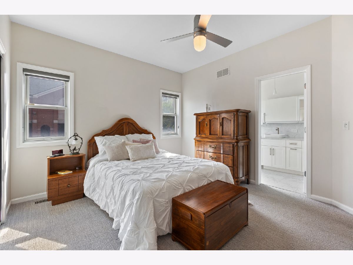 Welcome to this spacious 3 bed, 3 bath modern duplex-down in a prime Lincoln Park location just steps to the Brown & Purple Line, shopping, dining, gyms, Starbucks, and more. This 2,200 sq ft home features two fireplaces, newly installed noise-reducing windows, and radiant heated floors on the lower level. Enjoy an open-concept living/dining area anchored by a sleek chef's kitchen with a large island, custom cabinetry, and stainless steel appliances. The sunlit living room opens to a front balcony, while the expansive lower level includes a huge family room, private patio, third bedroom, and full bath. Retreat to the luxurious primary suite with dual closets and a spa-inspired bath. Includes laundry room with sink, newer HVAC, garage parking, and generous storage. Ideal for move-up buyers, professionals, or families wanting both space and location. Newer HVAC. Garage parking too! This is the perfect blend of location, price, amenities, and quality.