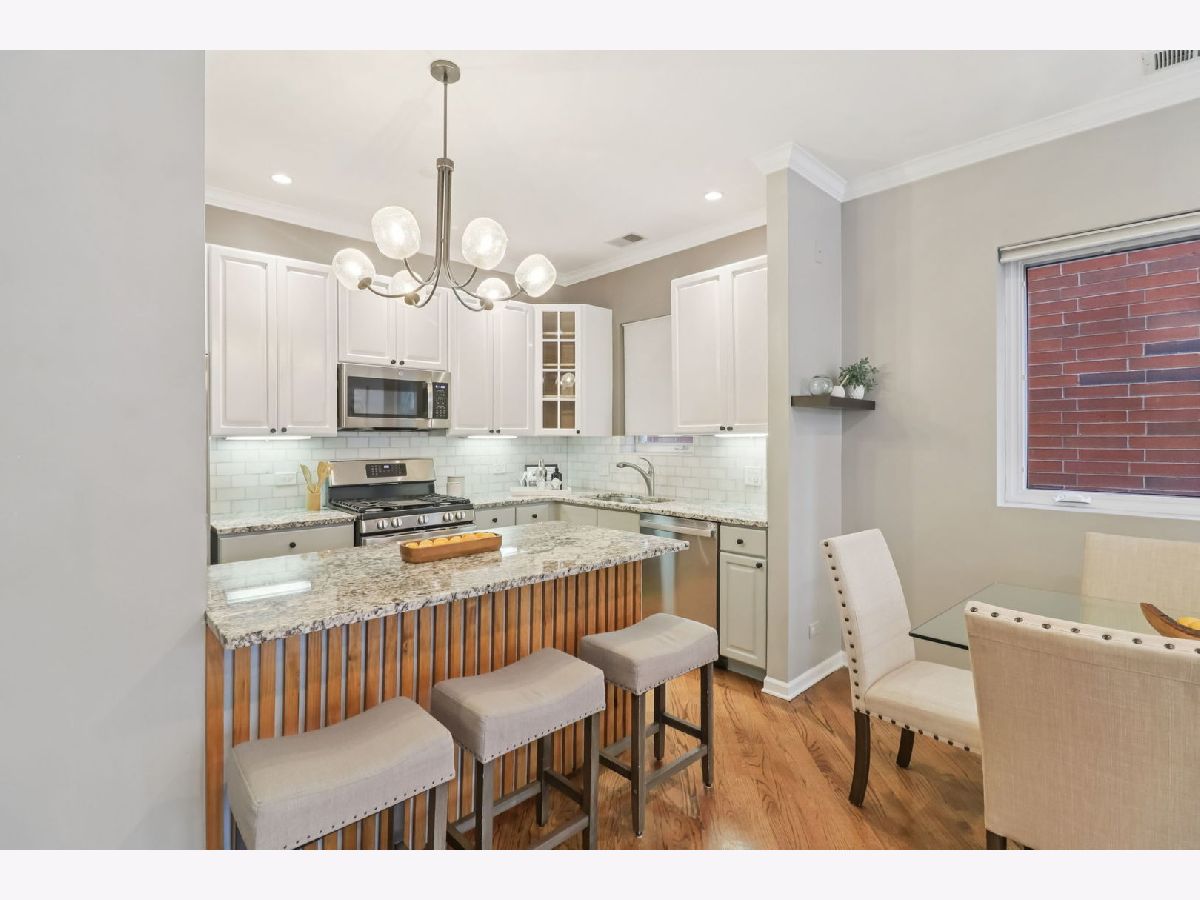 This is the one! Step inside this bright and spacious 2-bed, 2-bath condo, perfectly located on a quiet, tree-lined street in the heart of Lincoln Park. Inside, you'll find timeless details, including hardwood floors, classic wainscoting, and an abundance of natural light throughout. Updated kitchen with all new appliances (2024), pantry, large closet spaces, side-by-side laundry, and a great outdoor space to enjoy Summer. The primary bedroom features a walk-in closet, a spa-like bathroom with a double sink, a standalone shower, and a jetted tub. Garage parking and storage room included. This is an ideal city home, and it truly has it all. Just steps from the Brown Line, Jonquil Park, dog parks, groceries, shops, and amazing restaurants.