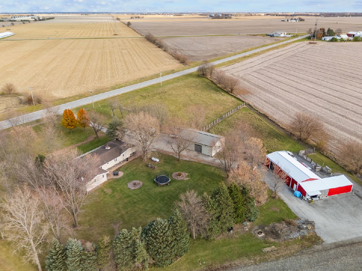 Step into the kind of home that feels like wide open freedom the moment you pull in. This sprawling 4 bedroom 3.5 bath ranch sits on just under 5 acres, offering the perfect blend of country living and everyday comfort. The 30x50 pole building has concrete floors, two heated offices, two overhead doors, and electric, giving you all the space you need for projects, storage, business, or hobbies. Inside, the heart of the home is a warm and oversized living room centered around a wood burning fireplace that opens into the formal dining room. The kitchen is bright and spacious with a sliding door that leads out to the huge backyard with a stamped concrete patio, storage shed, and wood play set overlooking the land. All four bedrooms are generously sized, including a true primary suite with a walk in closet and a full bath with a jetted tub for relaxing after a long day. Down the hall you will find three additional bedrooms and two more full baths, along with a convenient first floor laundry room with a powder room and a large pantry. The red barn in back is perfect for animals, complete with stalls, a dry lot, and an attached lean to. It is an ideal setup for horses, cattle, sheep, goats, or a full small hobby farm. The finished basement adds another level of living space with a cozy family room, an office, and an abundance of storage. All of this sits just south of downtown, close enough to get what you need yet far enough to breathe. Country living, space to grow, and room for every dream. Welcome home.