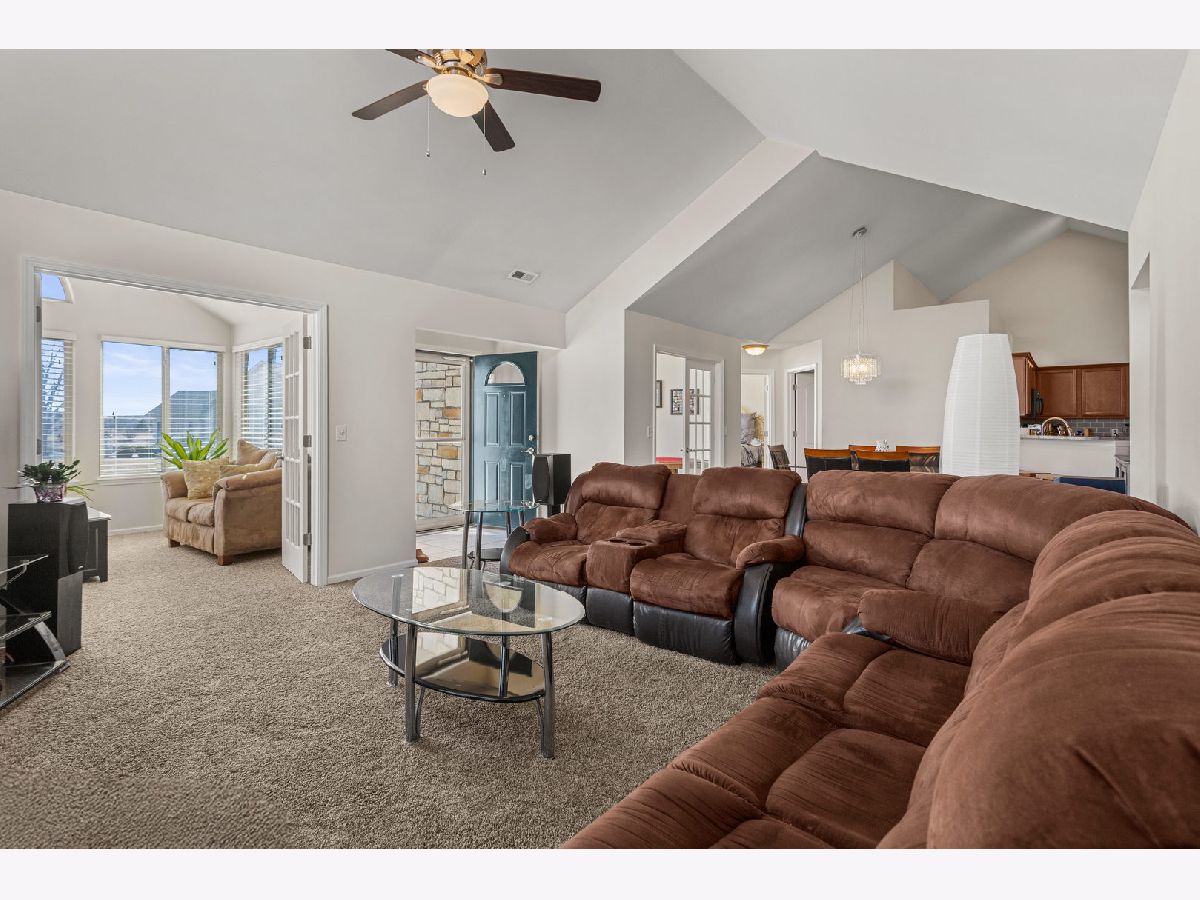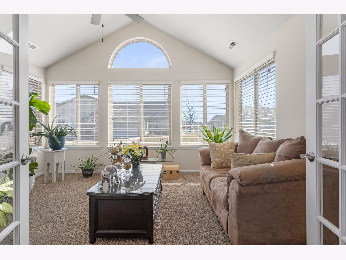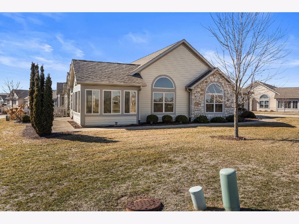 Welcome to easy living in this beautiful two bedroom, two full bathroom condo with a dedicated office and bright sunroom. The open layout seamlessly connects the living room, dining area, and kitchen, creating a comfortable space for both everyday living and entertaining. Large windows throughout bring in abundant natural light, making the home feel warm and inviting. The kitchen features updated countertops and backsplash, offering a fresh, modern touch. You'll also appreciate the generous closet space and thoughtful storage throughout the home. The two car garage includes a clean epoxy floor finish, adding both durability and style. Located in a quiet condo association with access to a clubhouse, pool, and exercise facility, this home offers low maintenance living without sacrificing space, comfort, or amenities.