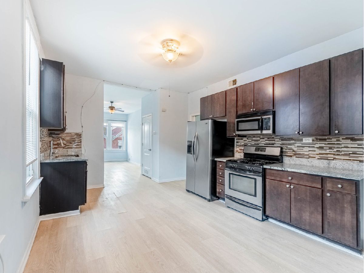 Exceptional 2-Unit Opportunity in the Heart of Little Village! This legal 2-unit + finished attic building offers 5 bedrooms and 3 full baths. The second-floor unit boasts soaring 11-foot ceilings, creating an impressive sense of space, light, and openness. Both units feature new kitchens with 42" cabinets and stainless steel appliances, updated bathrooms with ceramic tile, laminated wood flooring throughout, and freshly painted interiors. Bedrooms offer spacious closets, and the layouts are bright, roomy, and functional. The entire building is fully vacant, allowing for immediate occupancy, rental, or house-hacking flexibility. Conveniently located near public transportation, schools, shopping, and restaurants. Move-in ready and easy to show-don't miss this one.