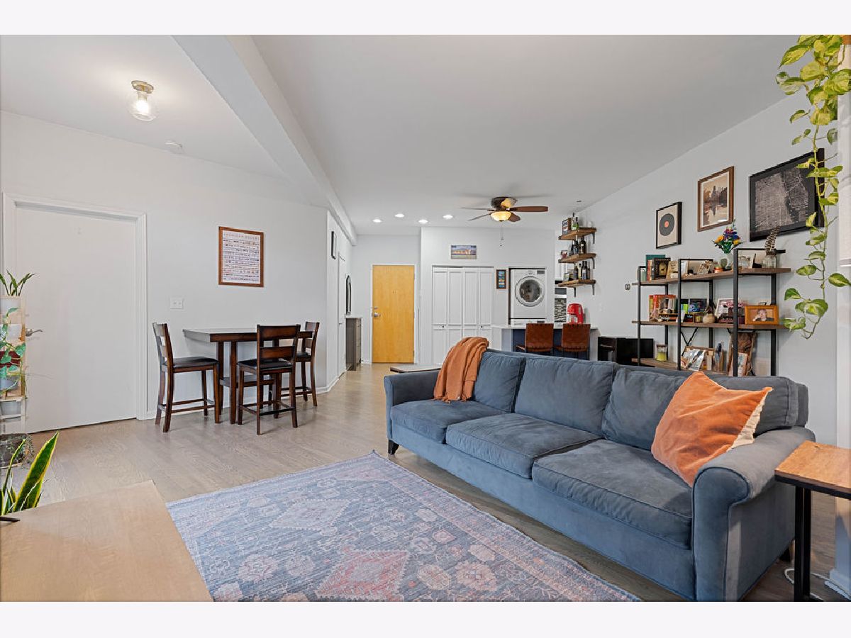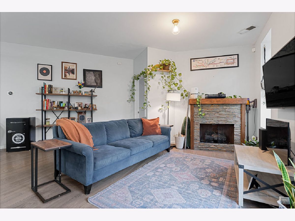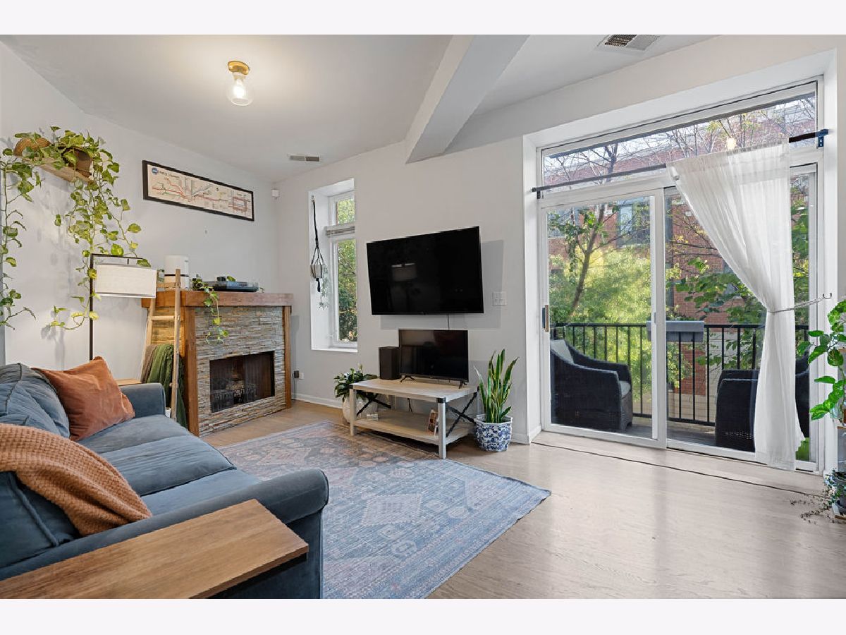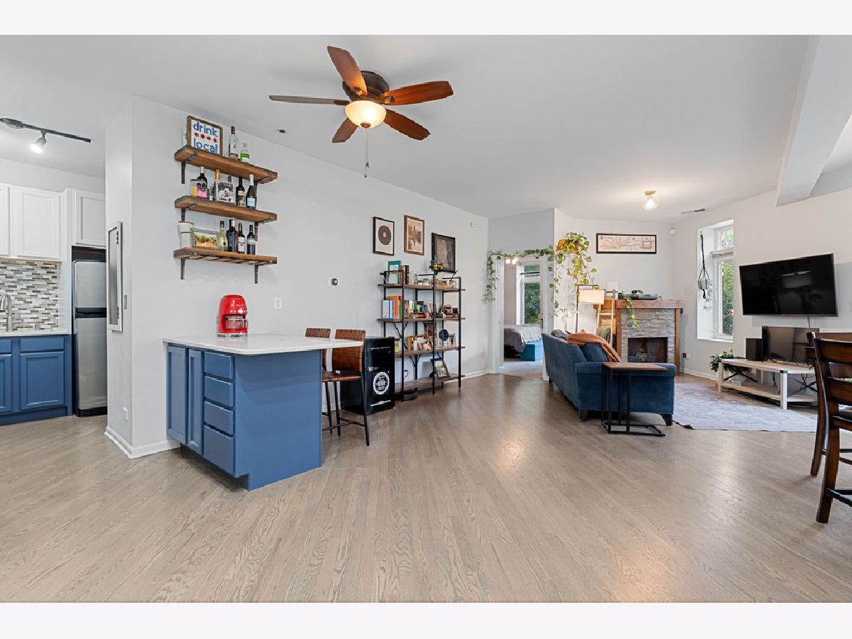 Bright and spacious 2-bedroom, 2-bath condo ideally situated in the heart of Logan Square. The open-concept layout offers an excellent flow for hosting and everyday living. The recently refreshed kitchen showcases quartz countertops, large island with breakfast bar seating, glass tile backsplash, 42-inch cherry cabinetry, and stainless steel appliances. Additional highlights include hardwood flooring in the living area, in-unit laundry, central heating and cooling, custom closet systems, and a stylish fireplace enhanced by a stone surround and wood mantel. The desirable split-bedroom design is wrapped in windows, flooding the home with abundant natural light, and sits on a peaceful, tree-lined street. Unbeatable walkable location near the Blue Line, the 606 Trail, Armitage Street, and a fantastic mix of shops, cafes, and restaurants. One garage parking space plus a storage cage are included.