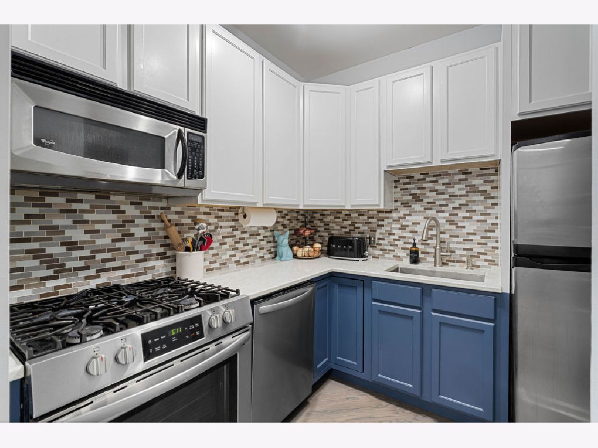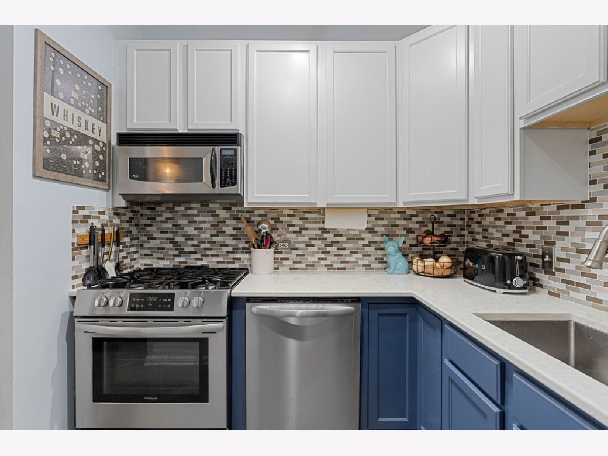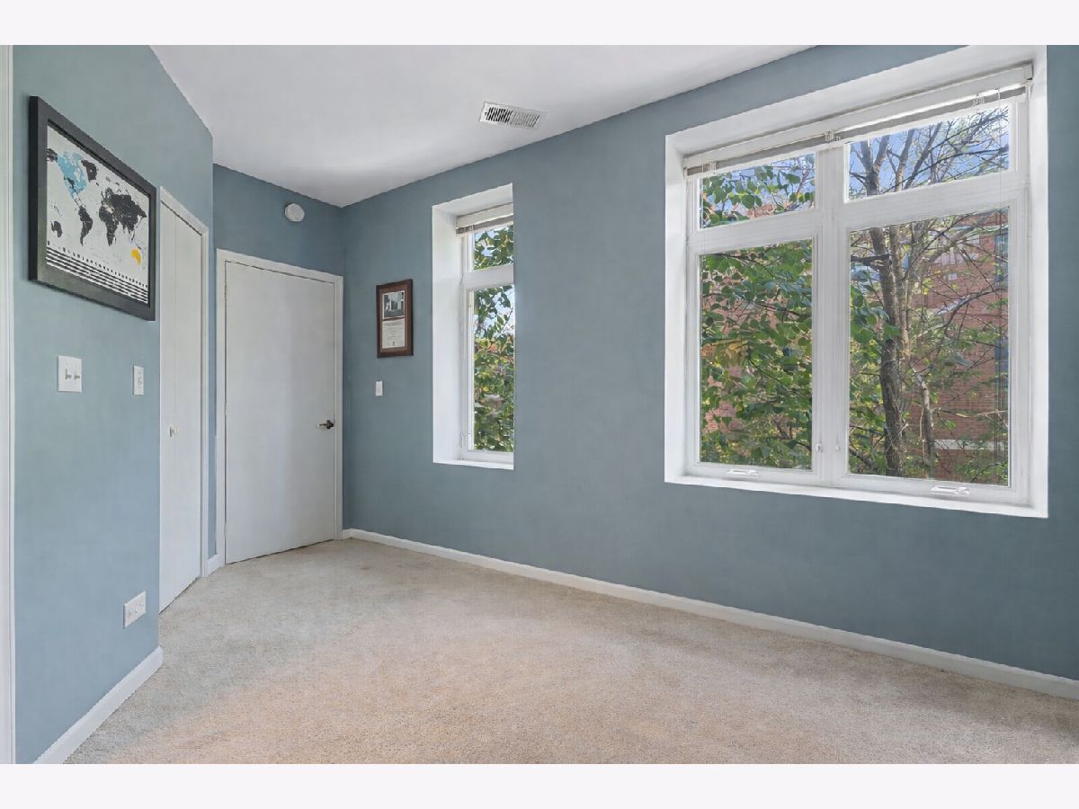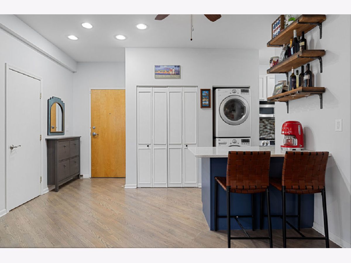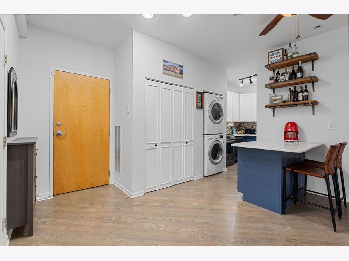 Bright and spacious 2-bedroom, 2-bath condo ideally situated in the heart of Logan Square. The open-concept layout offers an excellent flow for hosting and everyday living. The recently refreshed kitchen showcases quartz countertops, large island with breakfast bar seating, glass tile backsplash, 42-inch cherry cabinetry, and stainless steel appliances. Additional highlights include hardwood flooring in the living area, in-unit laundry, central heating and cooling, custom closet systems, and a stylish fireplace enhanced by a stone surround and wood mantel. The desirable split-bedroom design is wrapped in windows, flooding the home with abundant natural light, and sits on a peaceful, tree-lined street. Unbeatable walkable location near the Blue Line, the 606 Trail, Armitage Street, and a fantastic mix of shops, cafes, and restaurants. One garage parking space plus a storage cage are included.