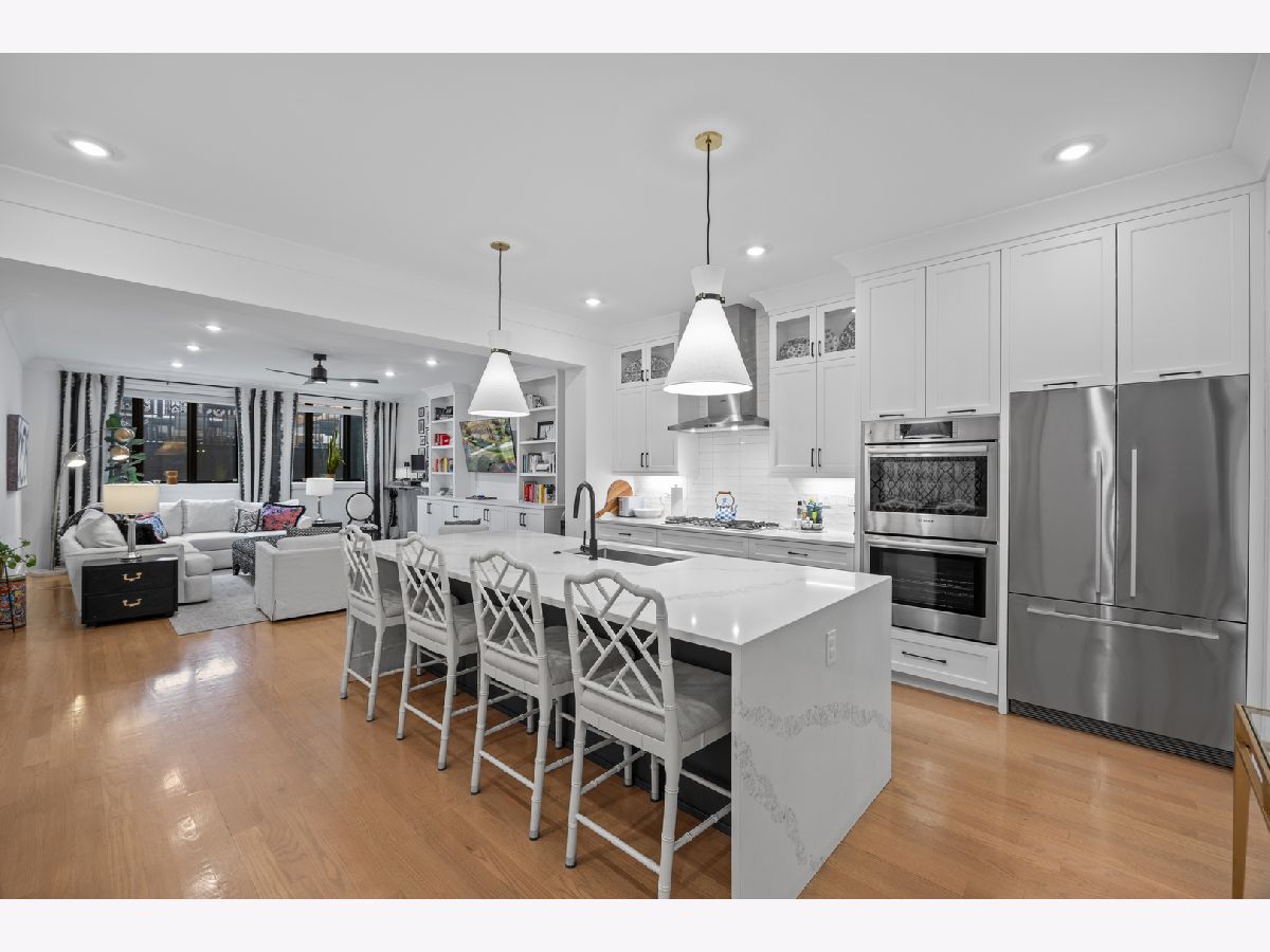 First resale of extra wide, duplex condo in Lincoln Square/Waters Elementary School. Built in 2021, this home features two spacious levels with oversized living/dining room, open concept kitchen/family room & 4 large bedrooms/3.1 baths. Room to live and work from home! Special details include custom built-ins, expansive kitchen with butler's pantry w/wet bar & beverage fridge, quartz island w/waterfall edge, separate breakfast area, Fisher & Paykel, Bosch appliances. Beautiful spa-quality bathrooms with Toto fixtures, primary bath features double vanity, steam shower, rain shower head. Radiant heat in lower level for comfort year-round. Wonderful storage with walk-in closets, a mudroom & one garage parking spot P-5 within gated courtyard. Outdoor space includes a custom designed garage roof top deck with 10' black granite countertop with built in storage & refrigerator with upgraded electric service. Great location near the Square, EL train at Rockwell, Waters Elementary, HarvesTime Foods, River Park, North Shore Channel Trail, the Galter Life Center & more. Experienced builder Platinum Homes. Relocation sale, additional documentation required.