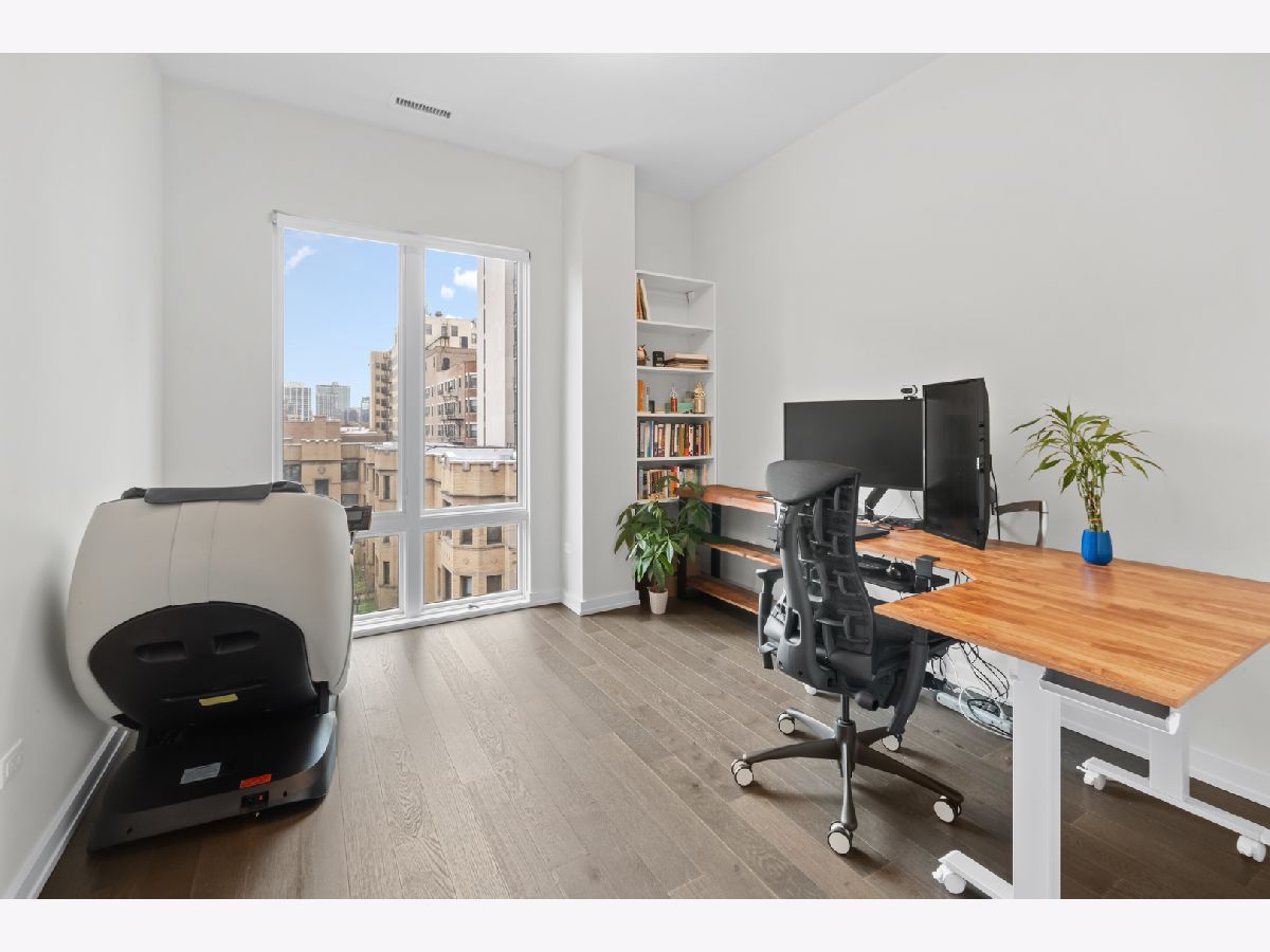 Better than new! Sun-drenched corner 4BR + office in a boutique elevator building-single-level living Nearly 2,300 sq ft with 10' ceilings, floor-to-ceiling windows and premium wide-plank engineered wood floors. $150K+ in curated upgrades: radiant-heated floors in all baths, California Closets in every bedroom, motorized blackout shades, Sonos speakers, Lightology lighting and more. The chef's kitchen shines with a Sub-Zero 36" built-in French-door fridge, Wolf 36" gas range plus wall oven & microwave, Miele dishwasher, quartz waterfall island, and custom Rovere Spazzolato cabinetry. A serene primary suite features a spa bath with soaking tub, floating double vanity and Waterworks fixtures, plus a fitted walk-in closet. Flexible plan easily creates a WFH office or guest suite. Private outdoor space and a full-size laundry room. Heated garage parking available, with optional lift for two cars. Coveted Alcott School District-steps to the lake, park, zoo and shops. Turn-key Lincoln Park luxury.