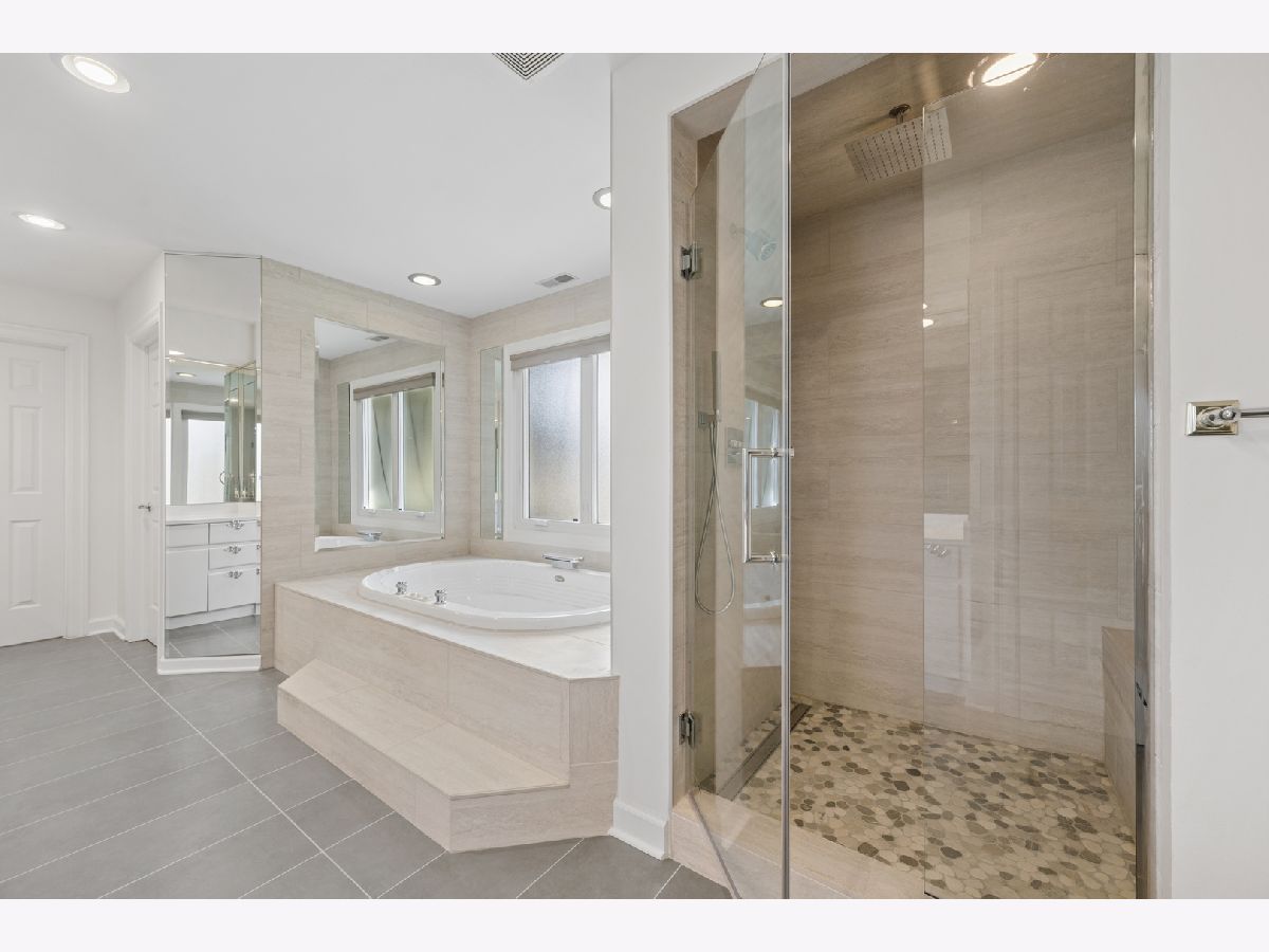 Extensively updated and meticulously maintained, over 4000sqf above ground contemporary corner home in Northbrook in the district 28 and 225! Step through the brand-new front door (2021) into a soaring two-story foyer, the sunshine welcomes you. The open floorplan flows effortlessly from the formal living and dining spaces into a completely remodeled chef's kitchen (2015) featuring custom cabinetry, granite countertops, and top-of-the-line stainless appliances, including a new refrigerator, dishwasher, and washer/dryer (all 2023). The dramatic two-story family room with vaulted ceilings and gas fireplace anchors the main level, while a first-floor ensuite bedroom offers ideal flexibility for guests or a home office. The primary suite is a true sanctuary, featuring a bath fully renovated in 2026 with all-new tile, countertops, shower enclosure, and fresh paint - backed by a contractor warranty. Secondary bathrooms were updated in 2018, and every bedroom enjoys the privacy of its own ensuite bath. The fully finished basement rounds out the home's exceptional livability adding extra 2000sqf approximately, making the total indoor space over 6000sqf, with new carpet (2020), a dedicated home theater (2015), recreation and play spaces, and sump pump preventative maintenance covered through 2027. Major mechanicals have been systematically replaced for total peace of mind: the roof is brand new (March 2022), virtually all windows were replaced in 2021 (including patio doors), both zoned HVAC units were replaced in 2018(furnaces) and 2024(ACs), and the water heater was updated in 2020. Two EV chargers were added to the 3-car garage in 2023, along with a new MyQ smart garage door opener. Just move right in and enjoy everything this home has to offer!