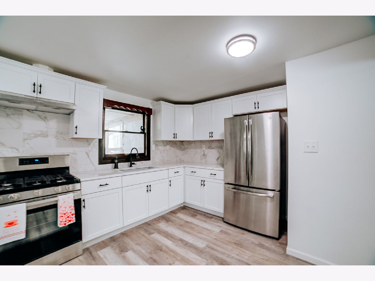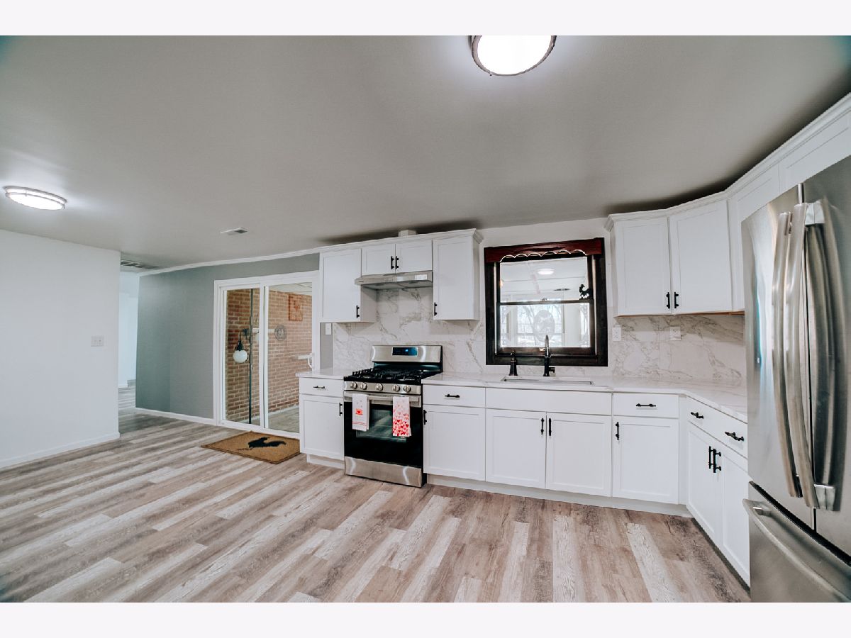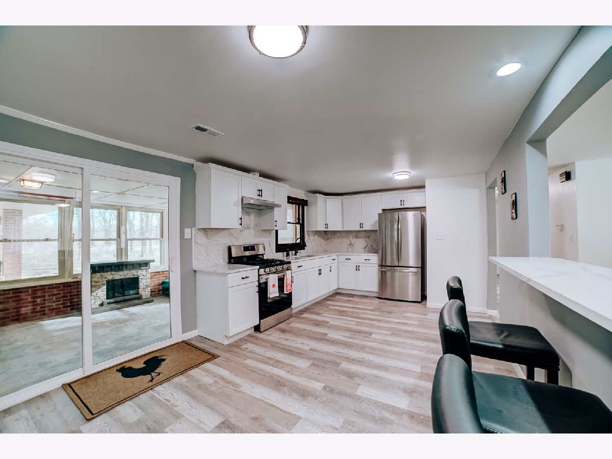 Welcome to this stunning all-brick ranch nestled on a quiet cul-de-sac with serene waterviews in Kankakee. This 3 bed, 2 bath home has been completely rehabbed with top-to-bottom upgrades in 2020 including a new roof, furnace, A/C, electric, plumbing, drywall, flooring, kitchen, and bathrooms. The stylish kitchen features white cabinetry, granite countertops, stainless steel appliances, and a modern backsplash. Enjoy multiple living spaces including a spacious living room with a statement brick fireplace wall. Step outside to a covered back porch and fully fenced yard - perfect for outdoor relaxation. Situated on 0.36 acres, this 2,030 sq ft home offers turnkey living with tasteful updates throughout.