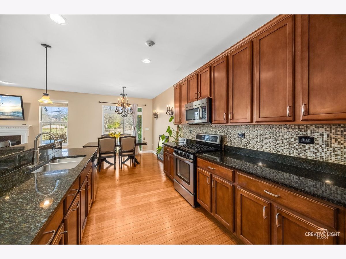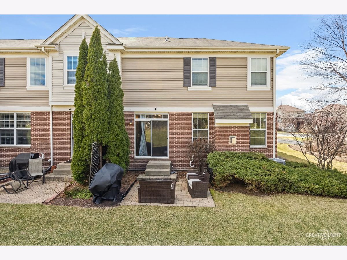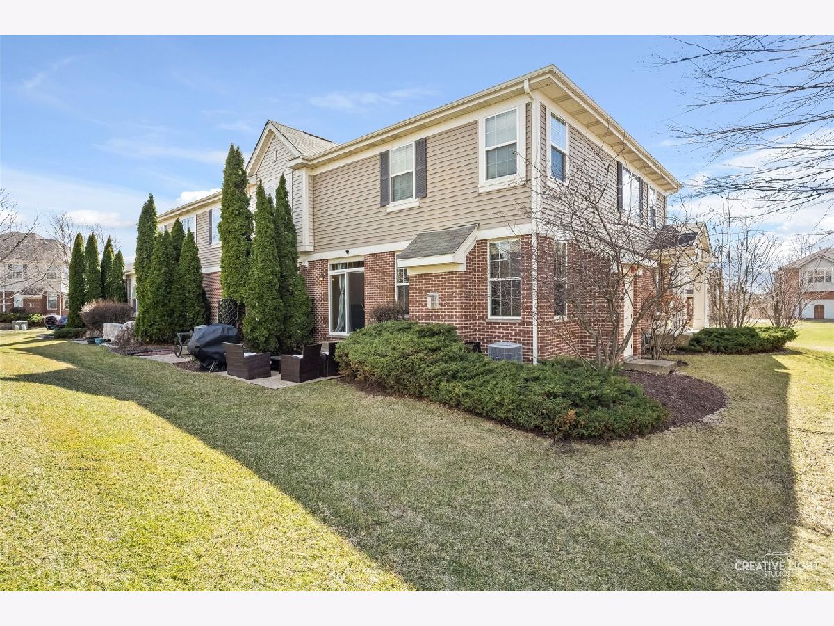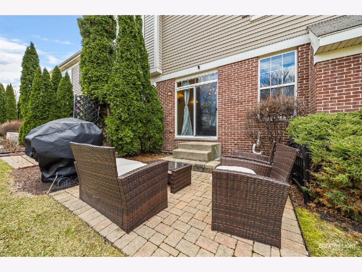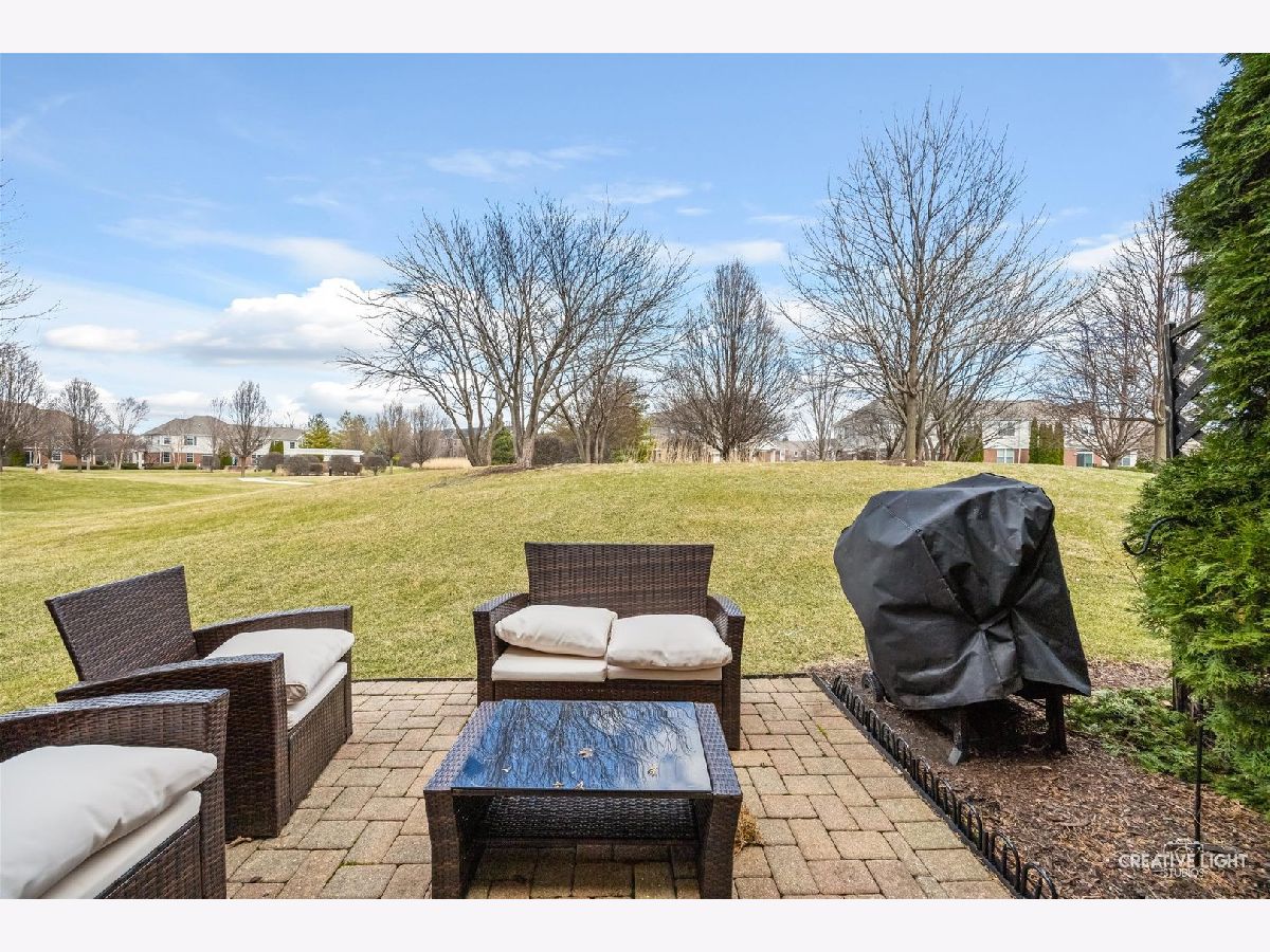 Builder's personal luxury end-unit townhome with 3,110 sq ft of finished living space, including a beautifully finished basement. Backing to a scenic park with gazebo, this sun-filled home offers the privacy and feel of a standalone residence with a private entrance and brick paver patio. The freshly painted main level features an open floor plan with bamboo hardwood flooring, neutral decor, and a cozy fireplace in the living room flowing into the dining area and kitchen. The kitchen includes granite countertops, breakfast bar/island, stainless steel appliances, pantry, custom backsplash, designer lighting, and recessed lighting. The spacious primary suite offers a tray ceiling, walk-in closet, double vanity, soaking tub, and separate shower. Two additional bedrooms share a full bath, with one offering direct access. Convenient second-floor laundry includes high-end washer/dryer, cabinetry, and a utility sink. Finished basement with egress window provides flexible space for a family room, office, gym, or hobby area. Low HOA covers water, sewer, garbage, lawn care, snow removal, and exterior maintenance. Prime location near parks, schools, shopping, Whole Foods, Route 59, Ogden Ave, I-88, and I-355.