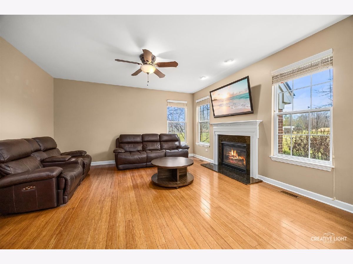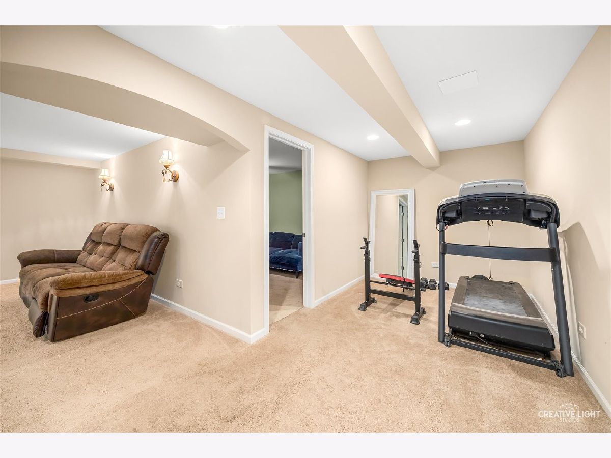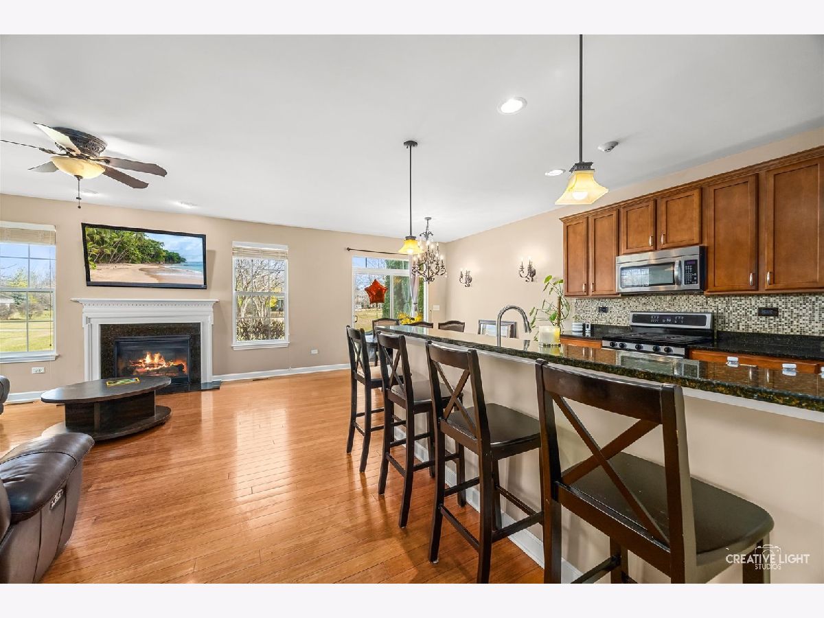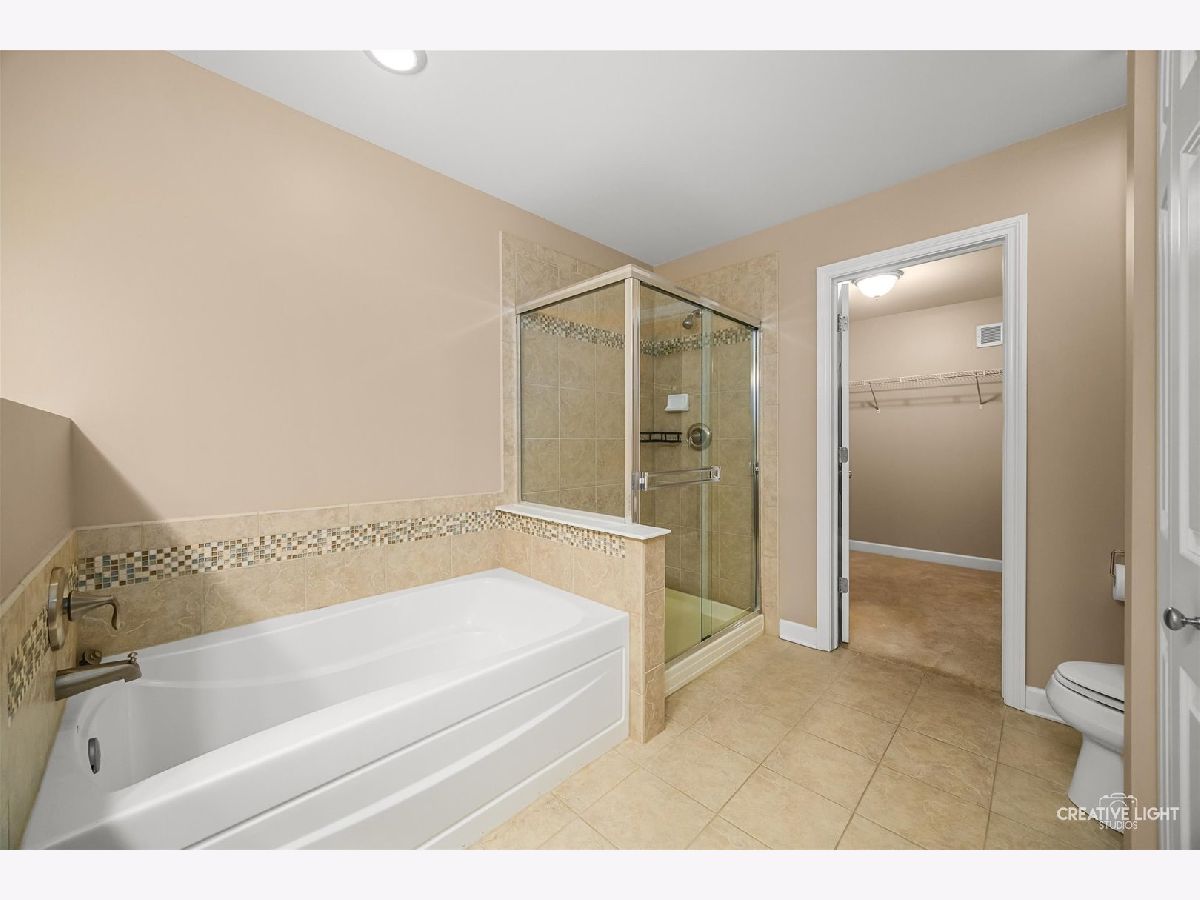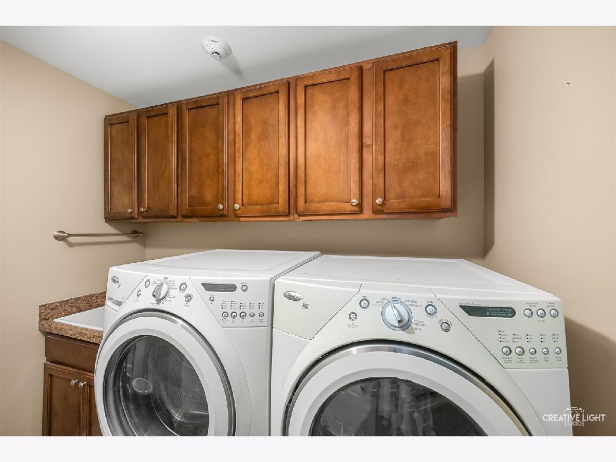 Builder's personal luxury end-unit townhome with 3,110 sq ft of finished living space, including a beautifully finished basement. Backing to a scenic park with gazebo, this sun-filled home offers the privacy and feel of a standalone residence with a private entrance and brick paver patio. The freshly painted main level features an open floor plan with bamboo hardwood flooring, neutral decor, and a cozy fireplace in the living room flowing into the dining area and kitchen. The kitchen includes granite countertops, breakfast bar/island, stainless steel appliances, pantry, custom backsplash, designer lighting, and recessed lighting. The spacious primary suite offers a tray ceiling, walk-in closet, double vanity, soaking tub, and separate shower. Two additional bedrooms share a full bath, with one offering direct access. Convenient second-floor laundry includes high-end washer/dryer, cabinetry, and a utility sink. Finished basement with egress window provides flexible space for a family room, office, gym, or hobby area. Low HOA covers water, sewer, garbage, lawn care, snow removal, and exterior maintenance. Prime location near parks, schools, shopping, Whole Foods, Route 59, Ogden Ave, I-88, and I-355.